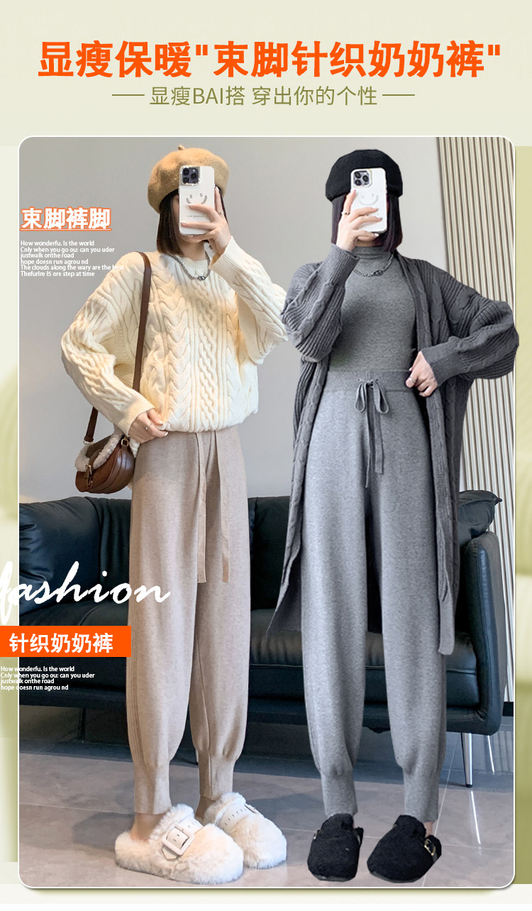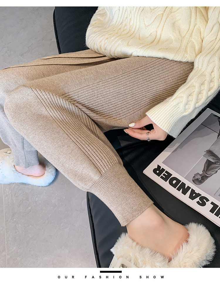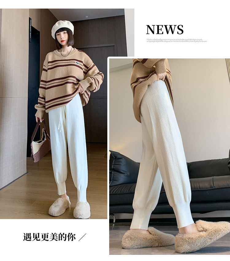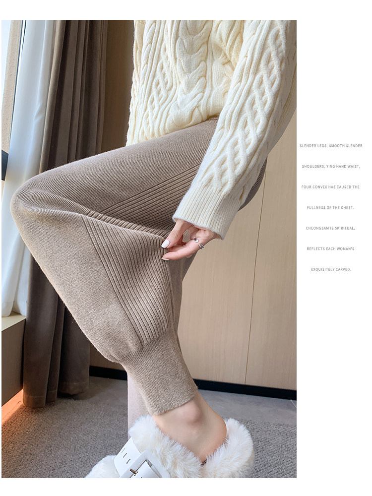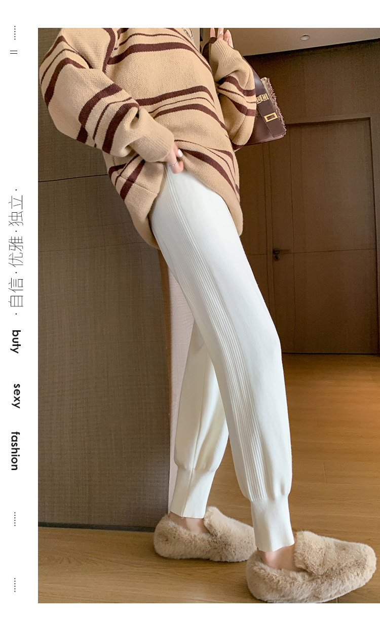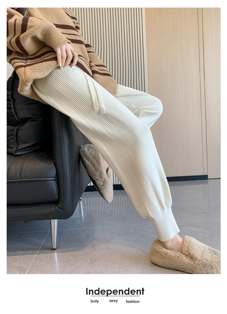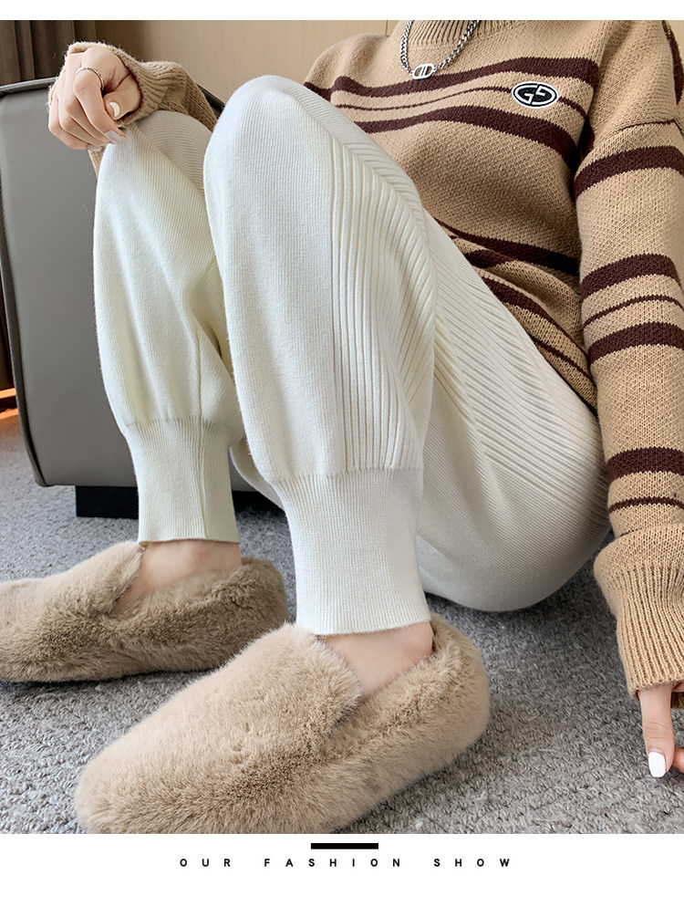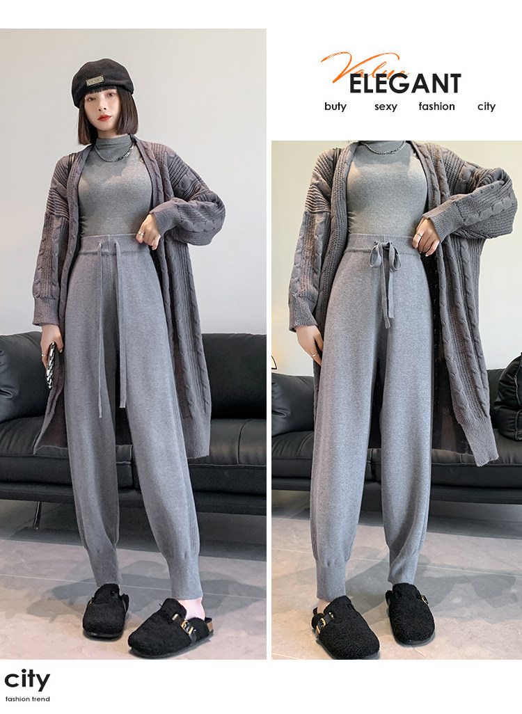 軟糯針織加厚哈倫褲女秋冬小個子高腰顯瘦寬鬆束腳九分奶奶蘿蔔褲
