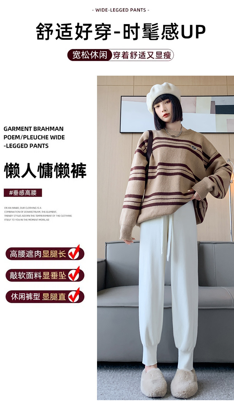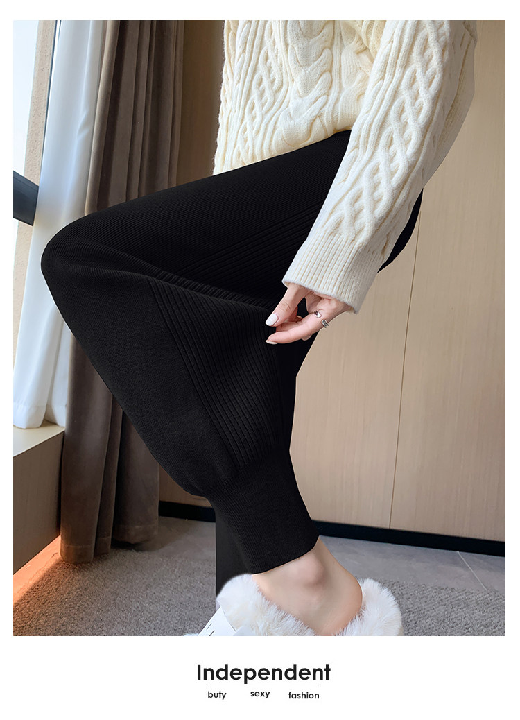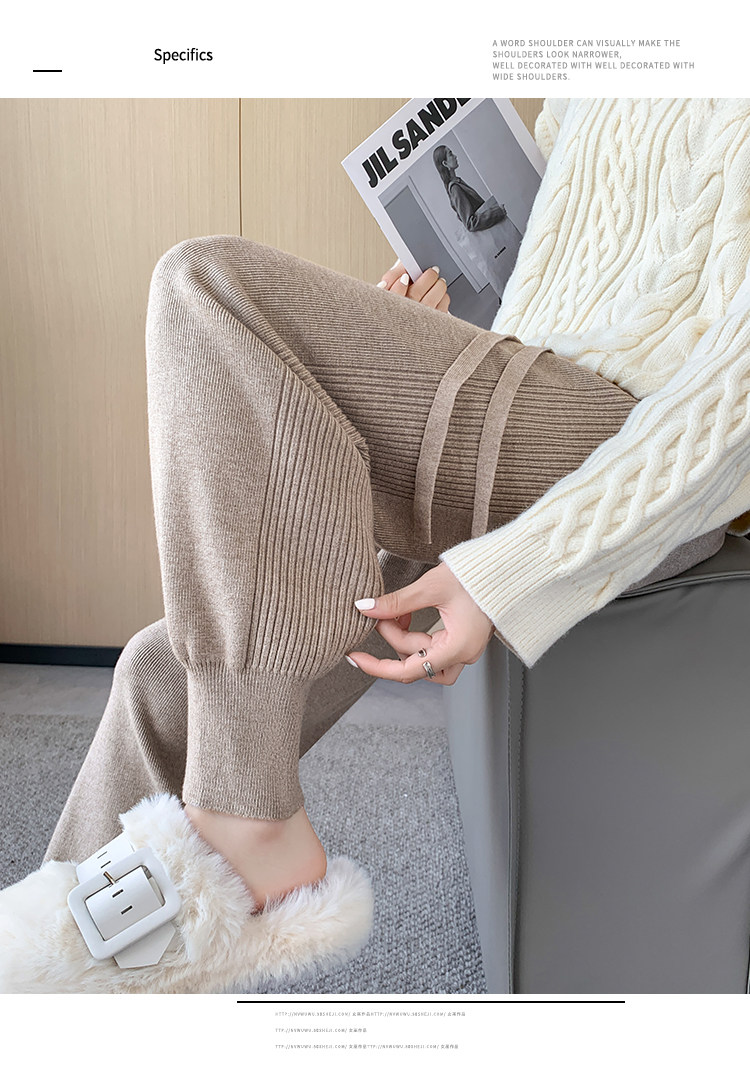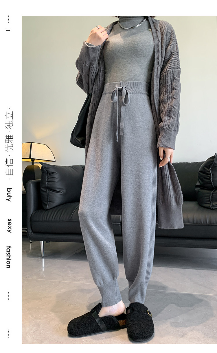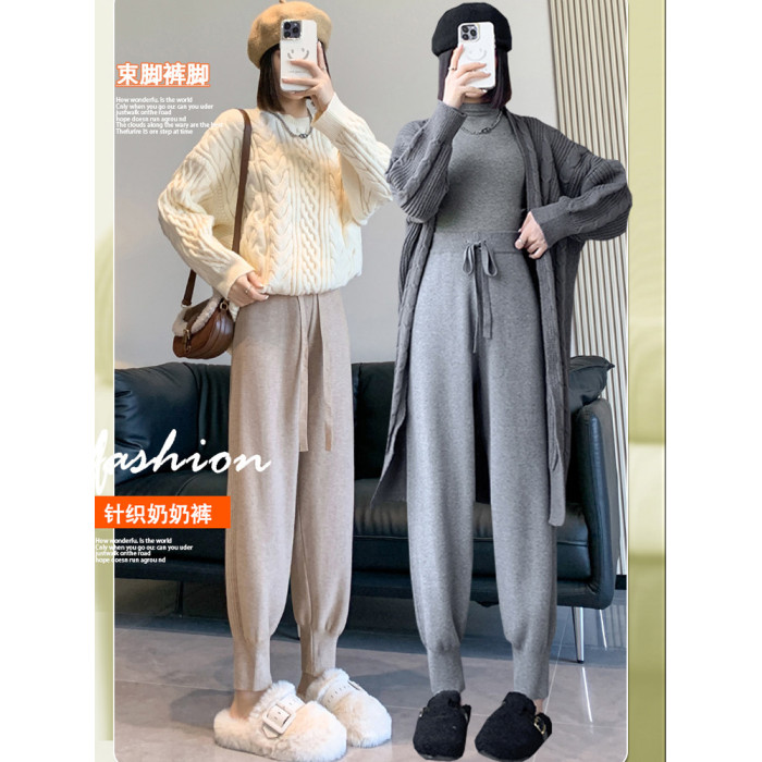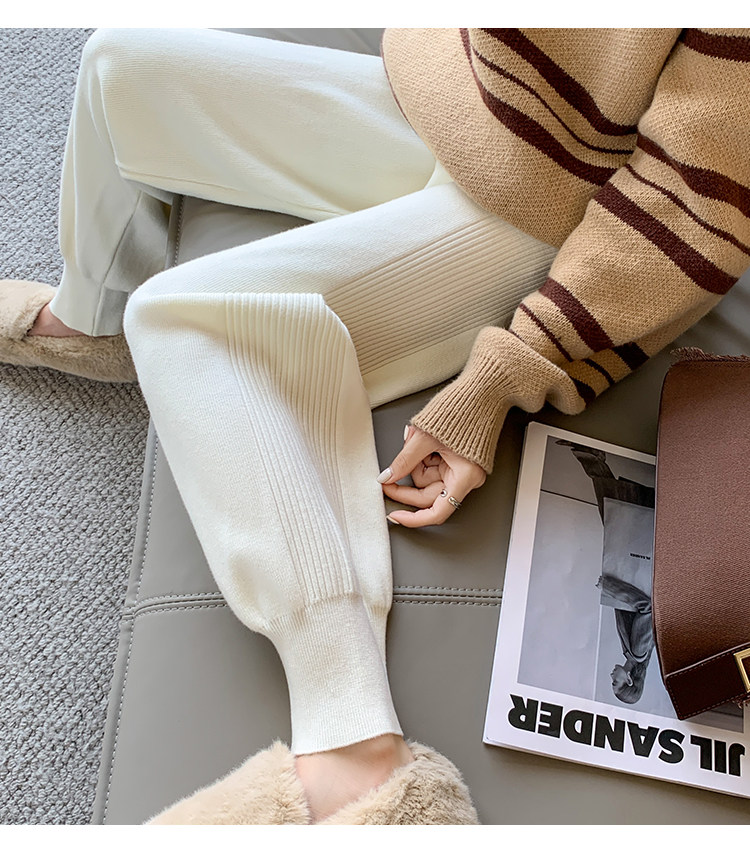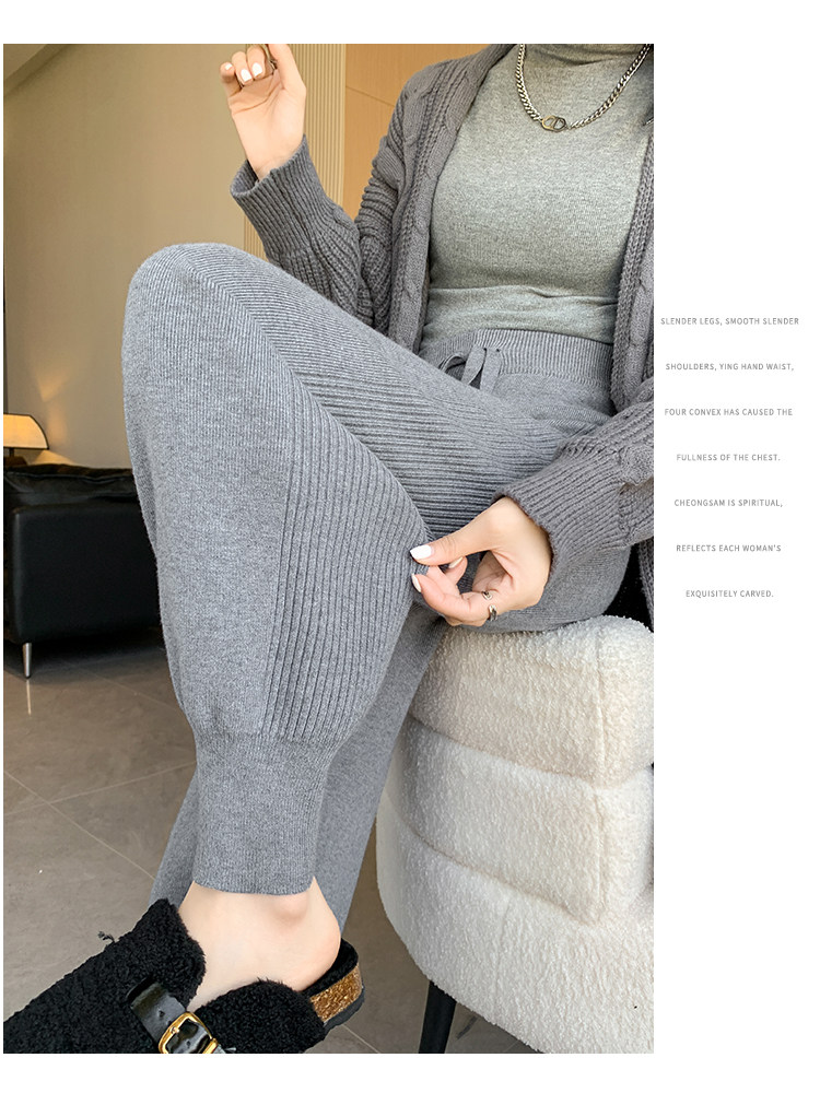 軟糯針織加厚哈倫褲女秋冬小個子高腰顯瘦寬鬆束腳九分奶奶蘿蔔褲