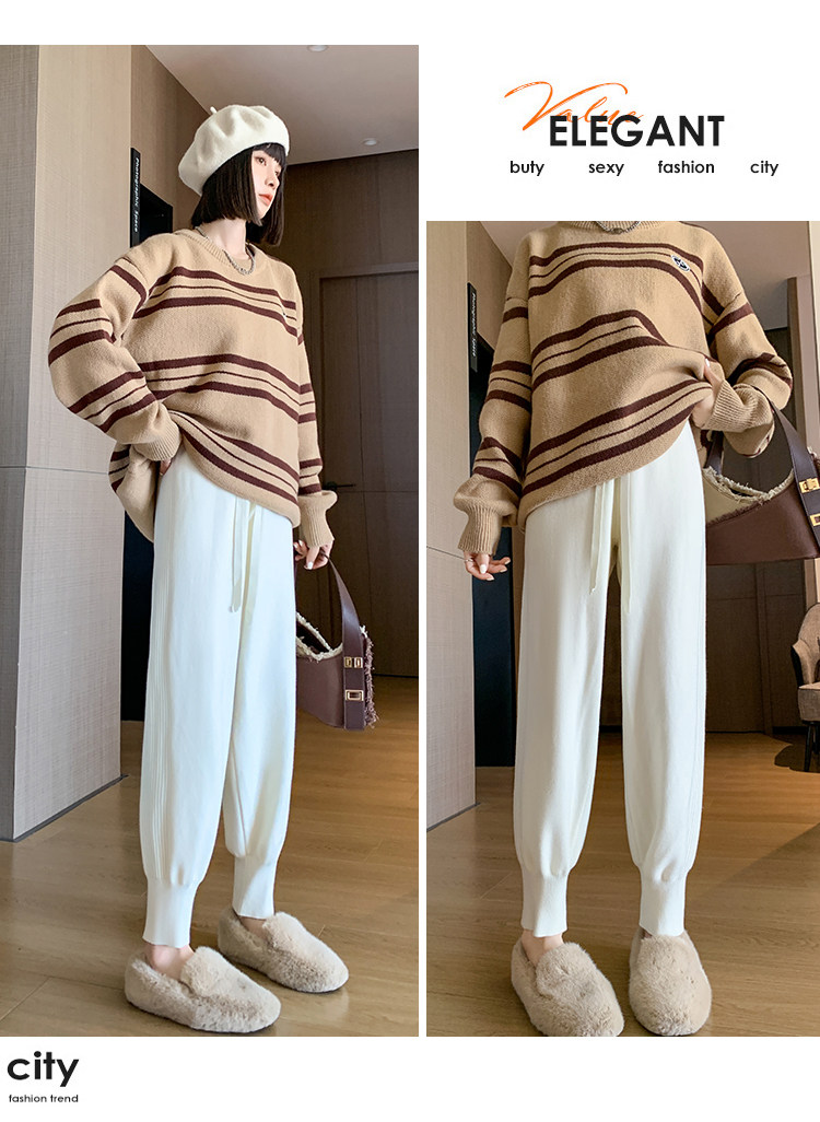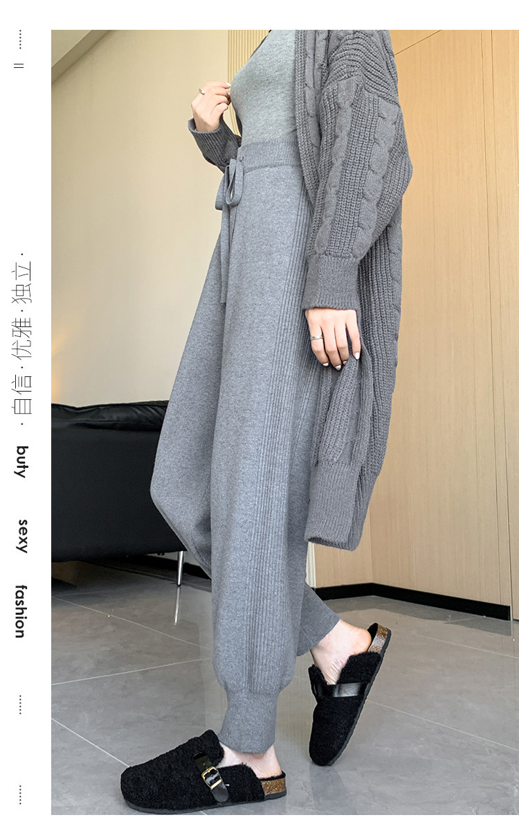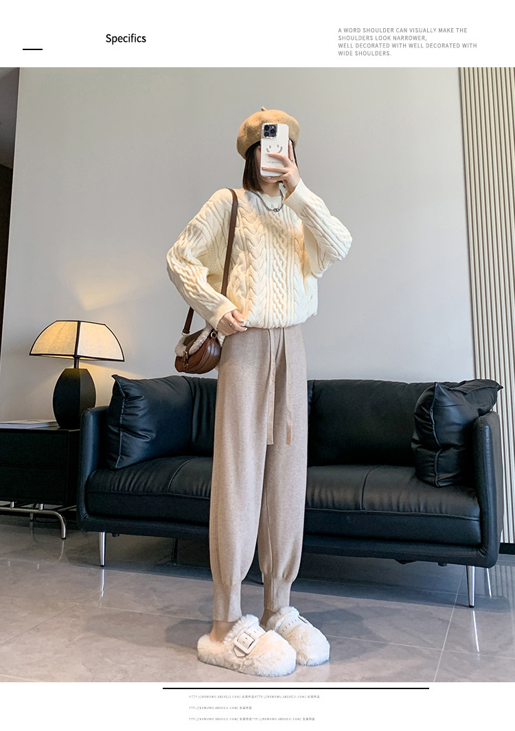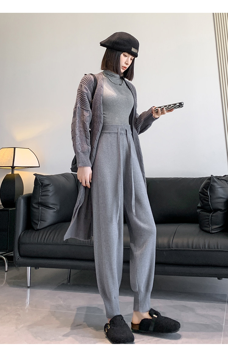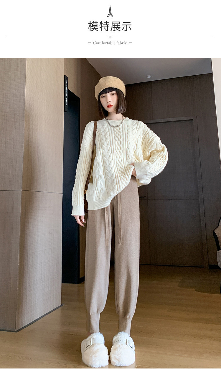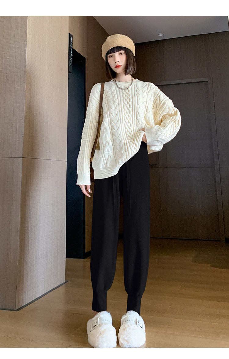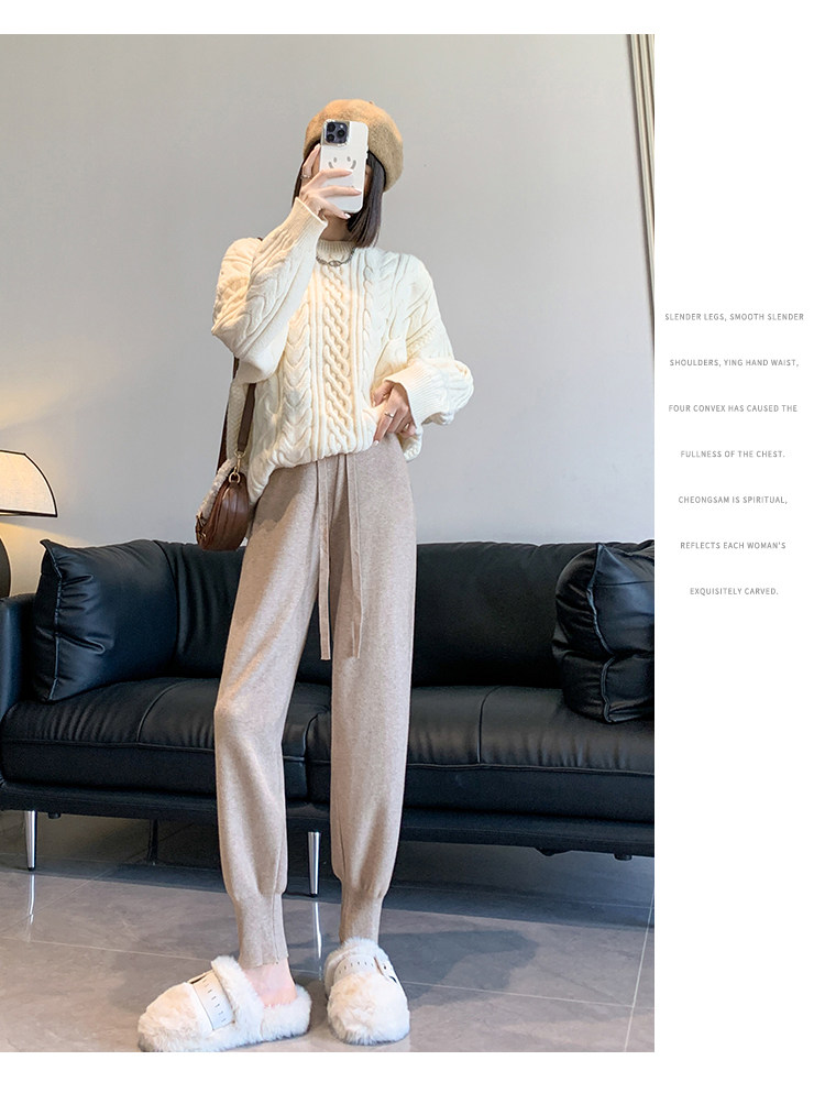 軟糯針織加厚哈倫褲女秋冬小個子高腰顯瘦寬鬆束腳九分奶奶蘿蔔褲