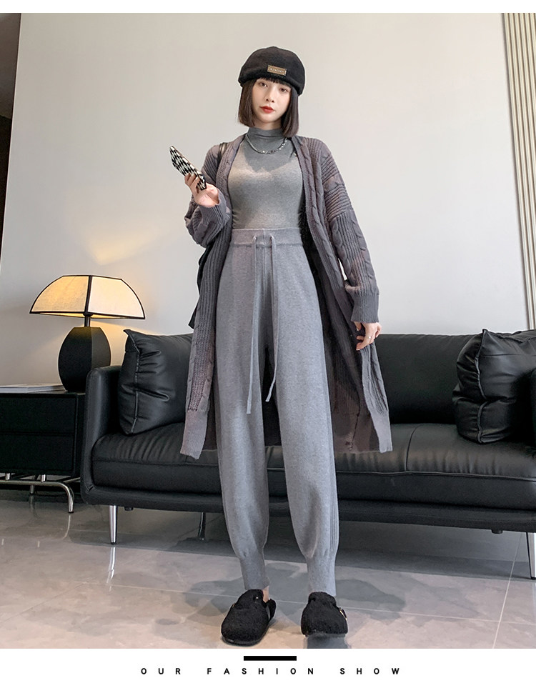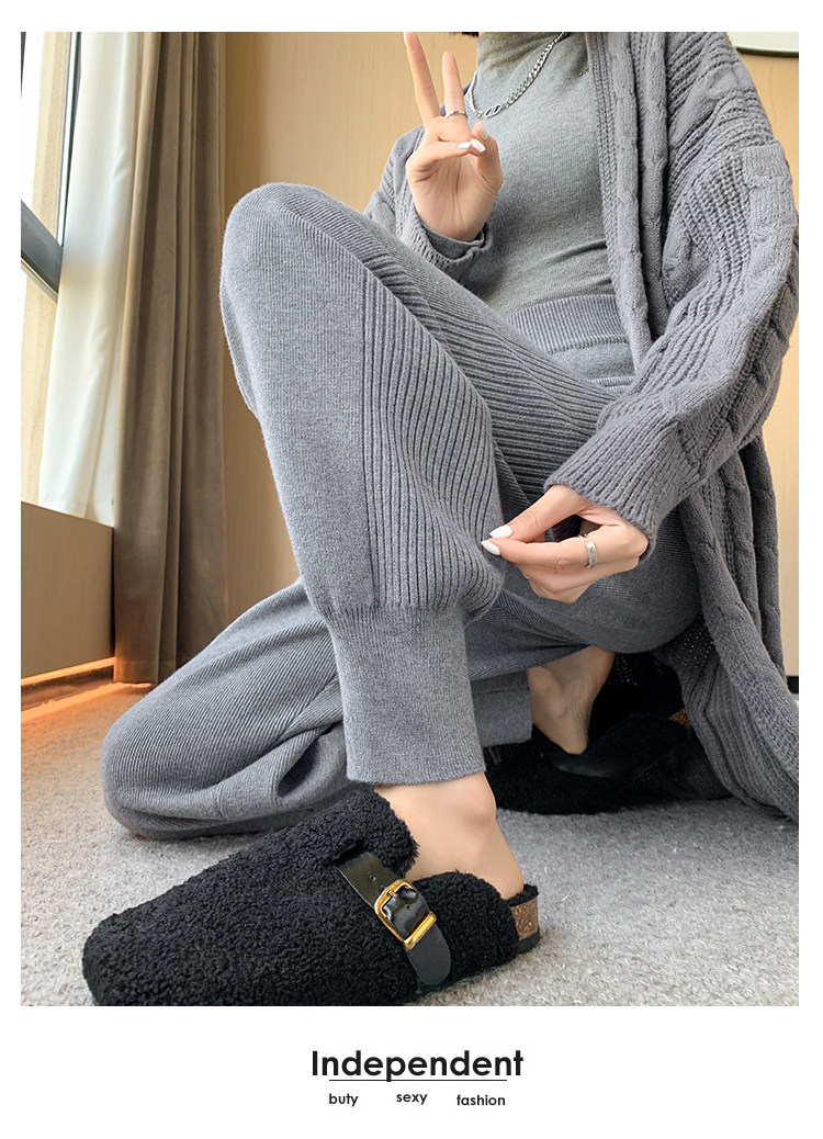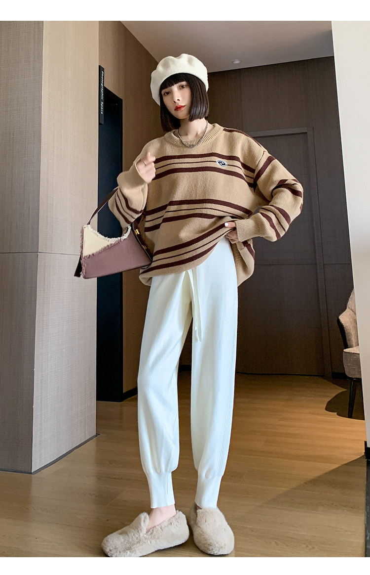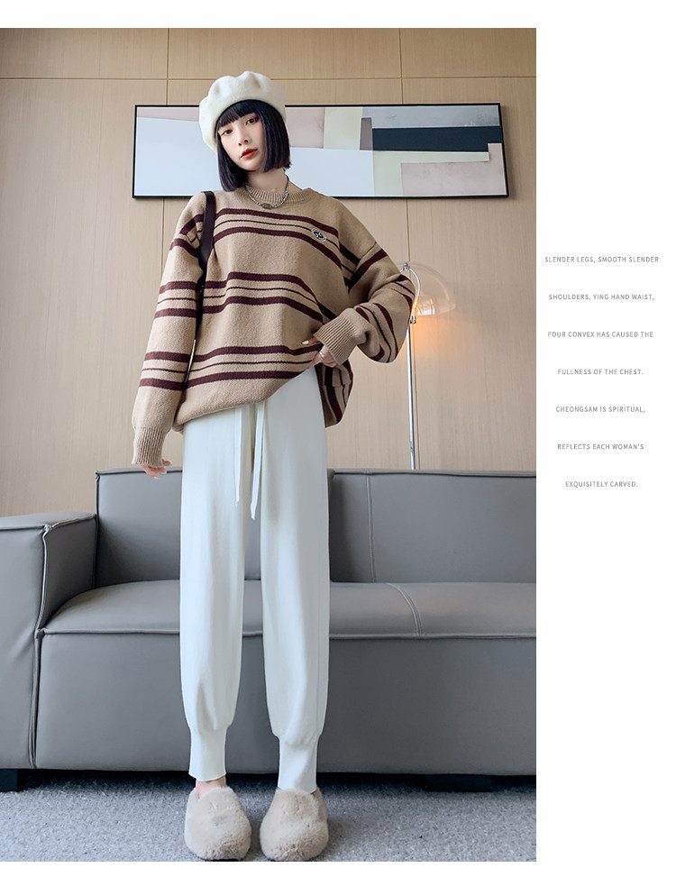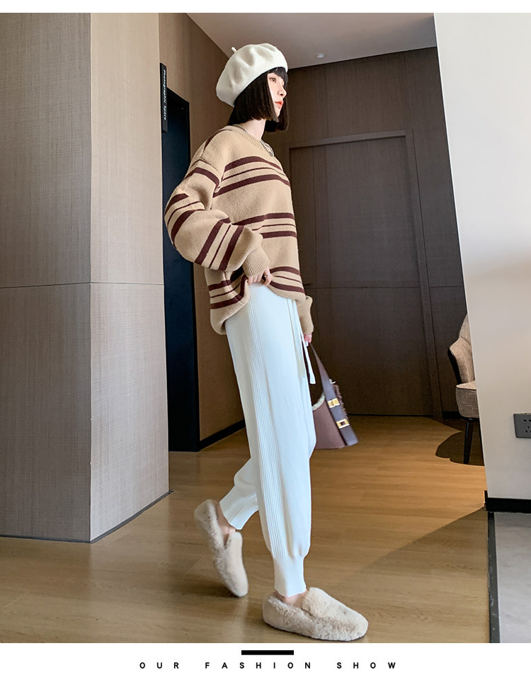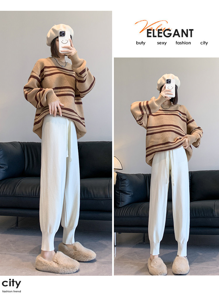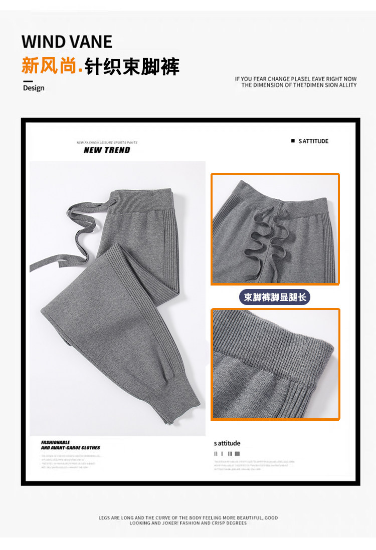 軟糯針織加厚哈倫褲女秋冬小個子高腰顯瘦寬鬆束腳九分奶奶蘿蔔褲