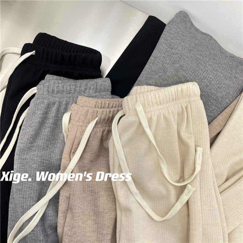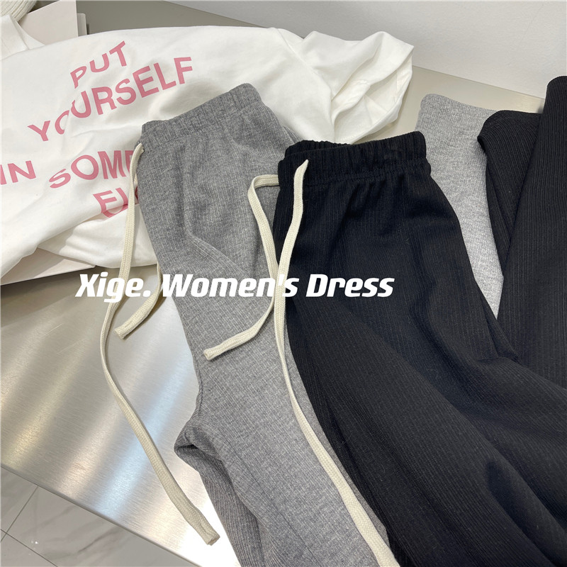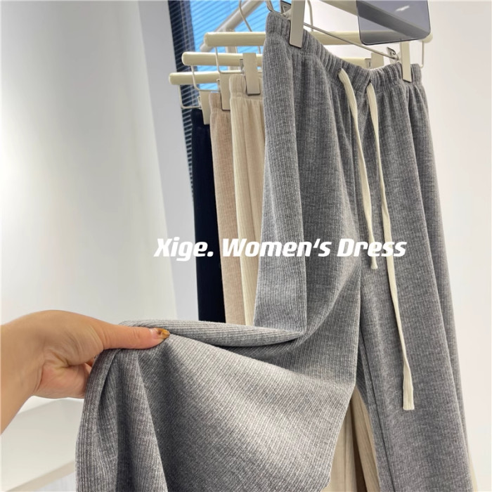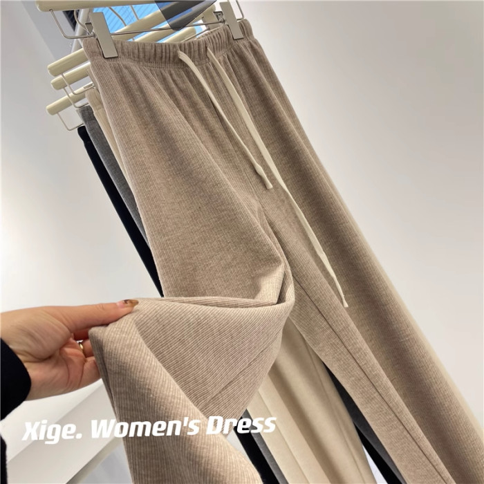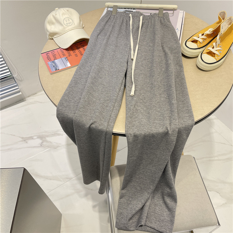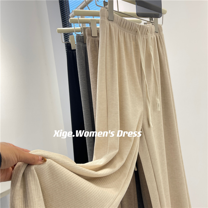 特大碼300斤胖妹妹針織濶腿褲女春秋裝寬鬆顯瘦直筒休閒拖地褲ins