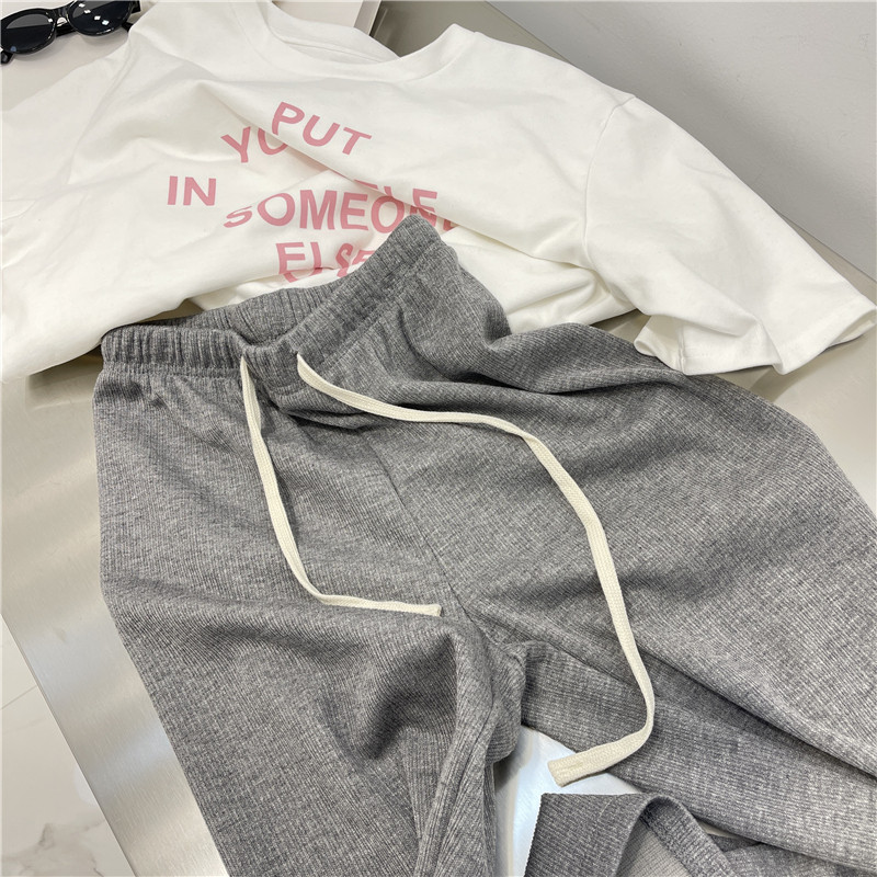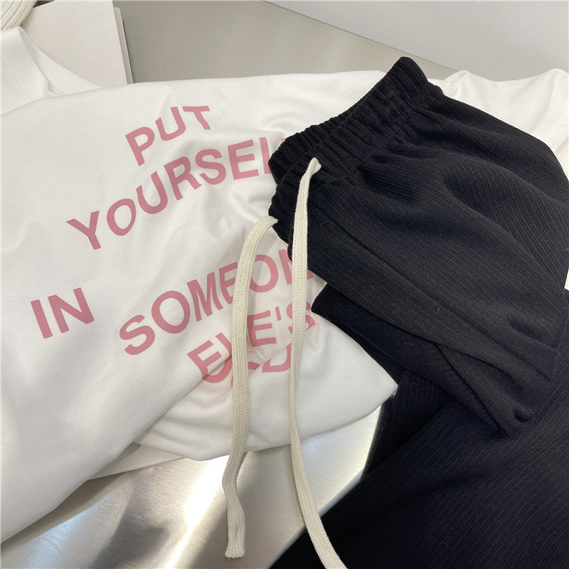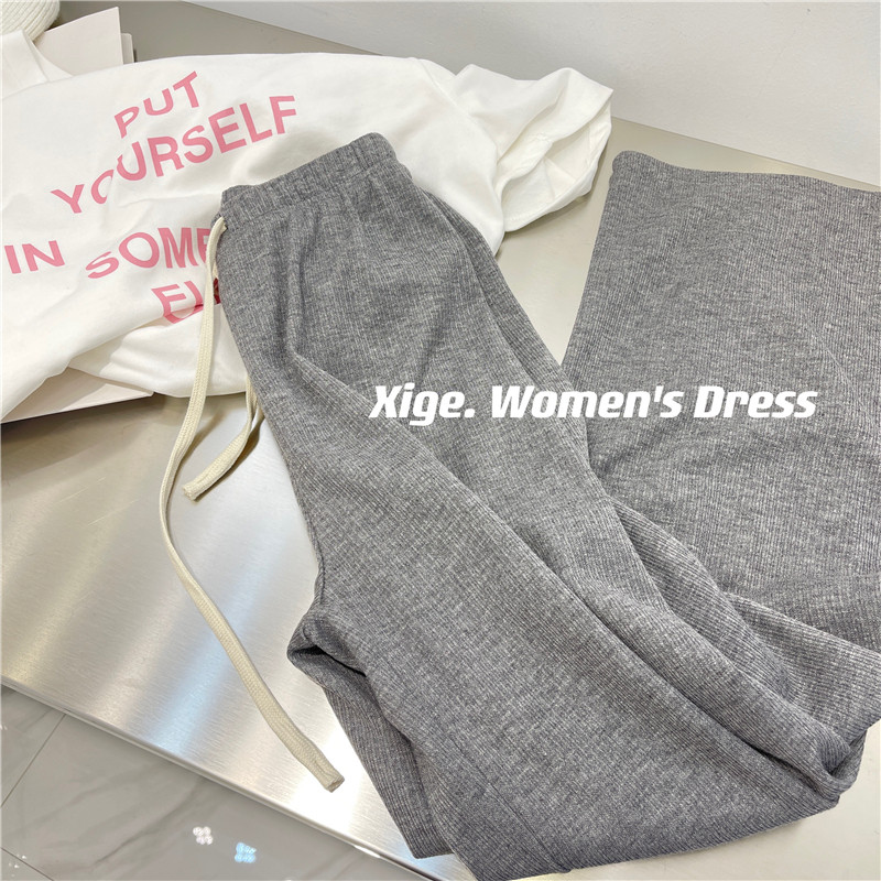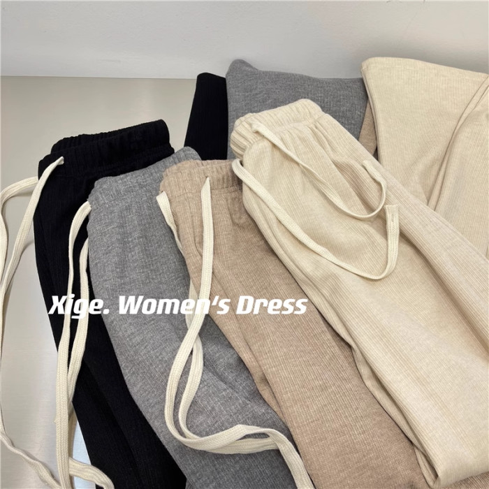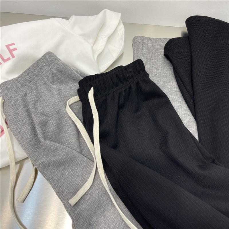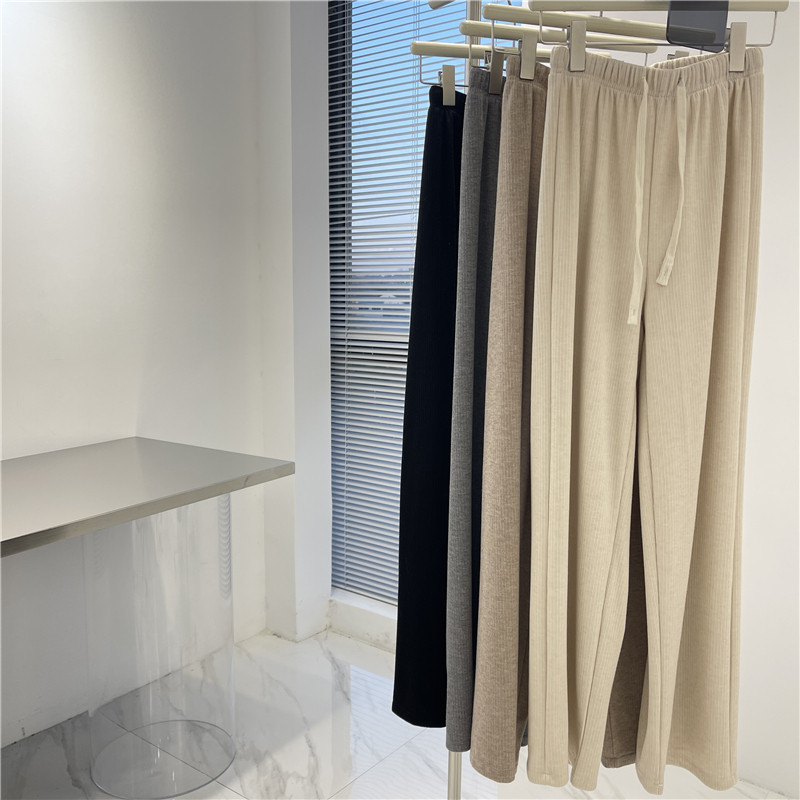 特大碼300斤胖妹妹針織濶腿褲女春秋裝寬鬆顯瘦直筒休閒拖地褲ins