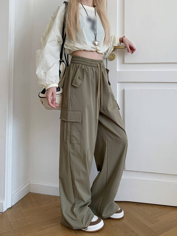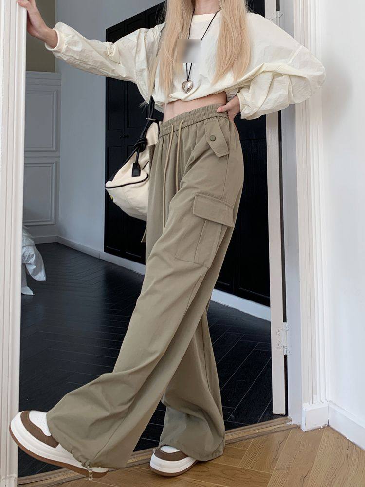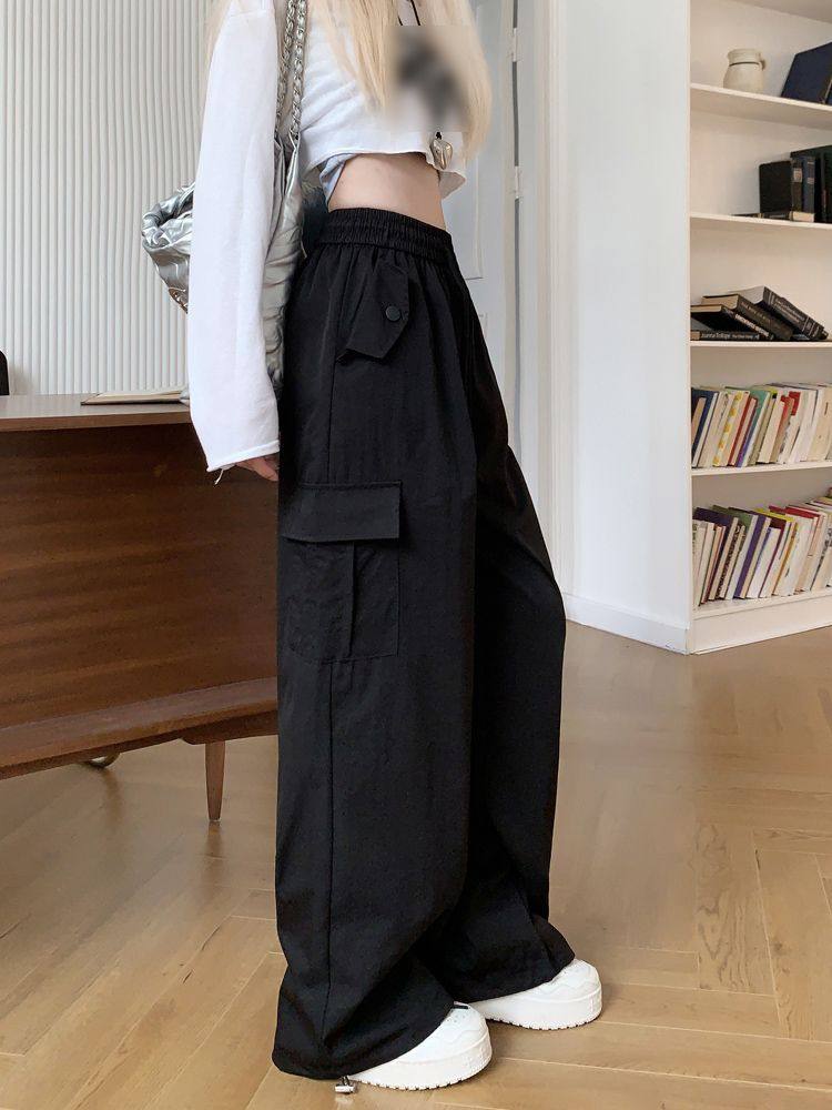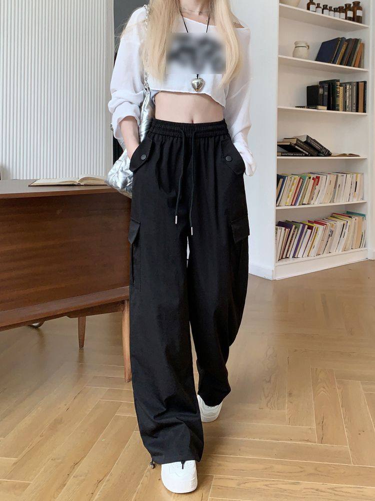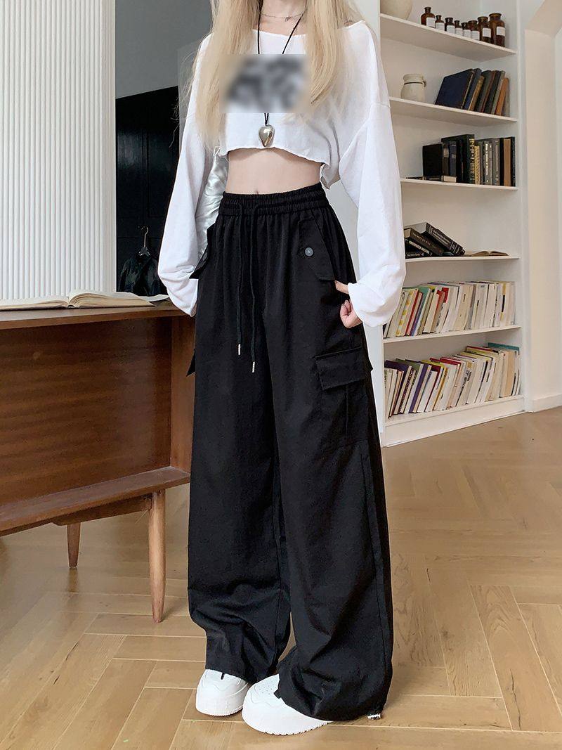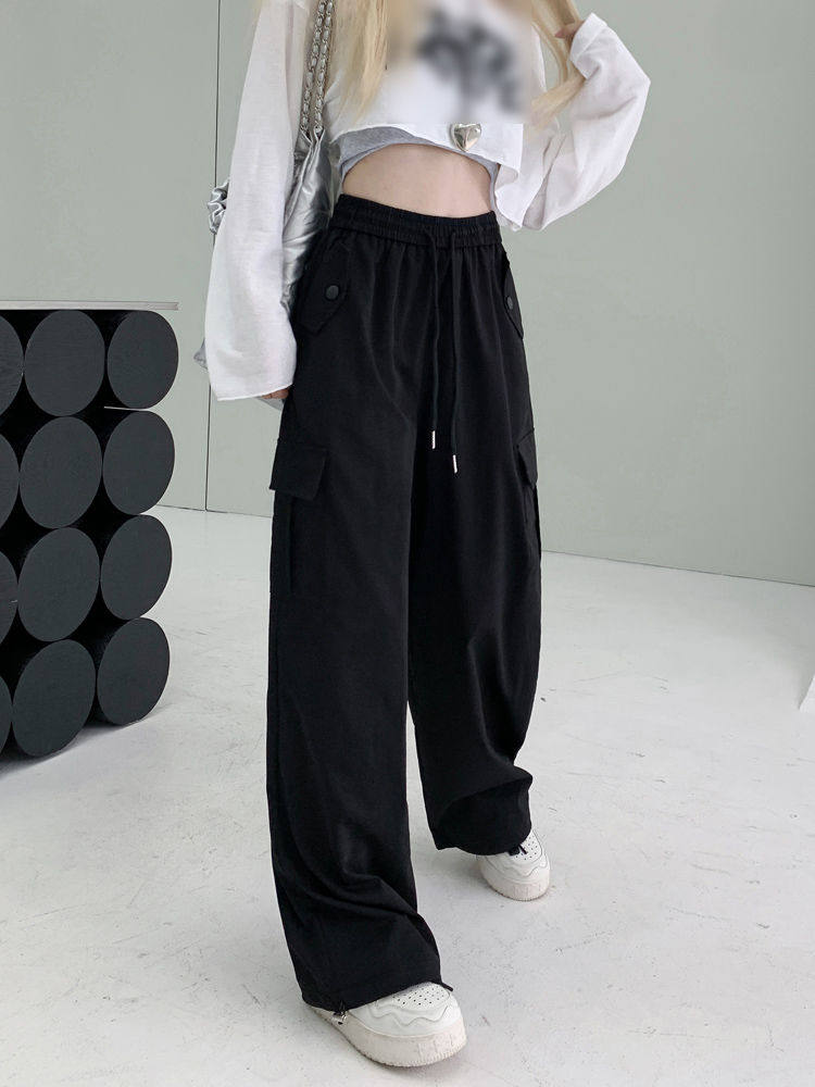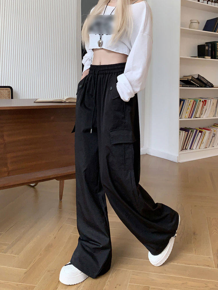 胖mm300斤大碼美式直筒垂感工裝褲女秋季寬鬆高腰休閒拖地濶腿褲