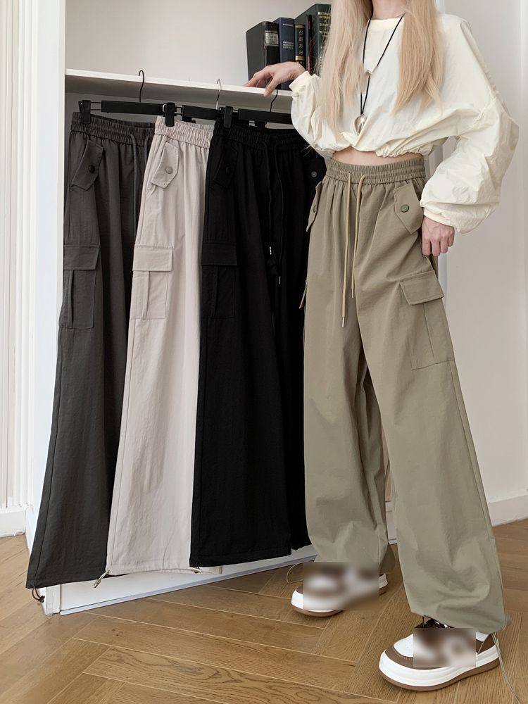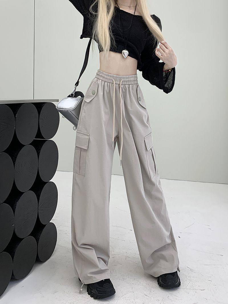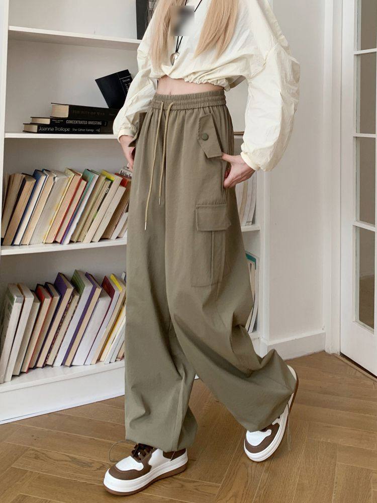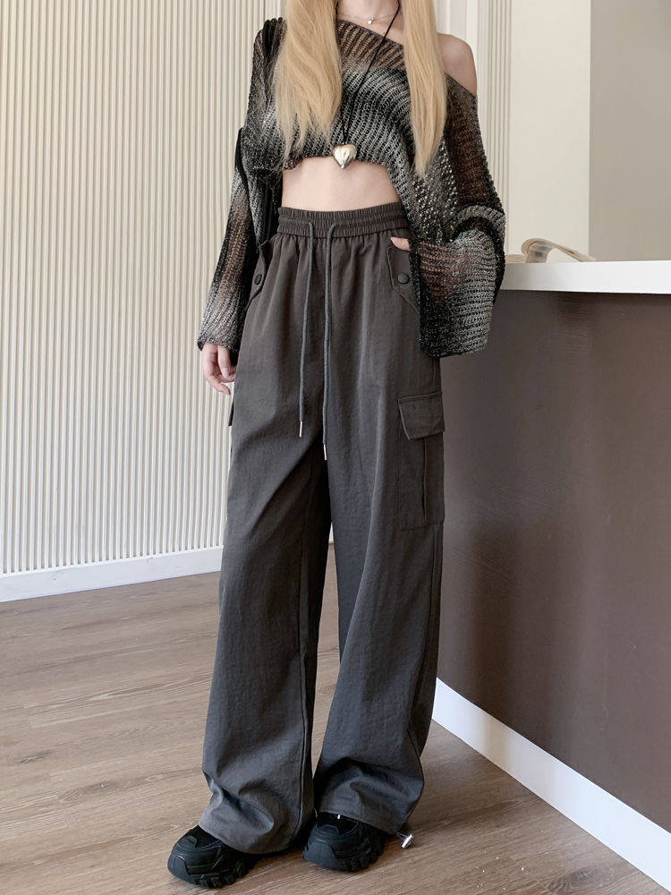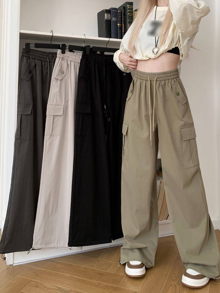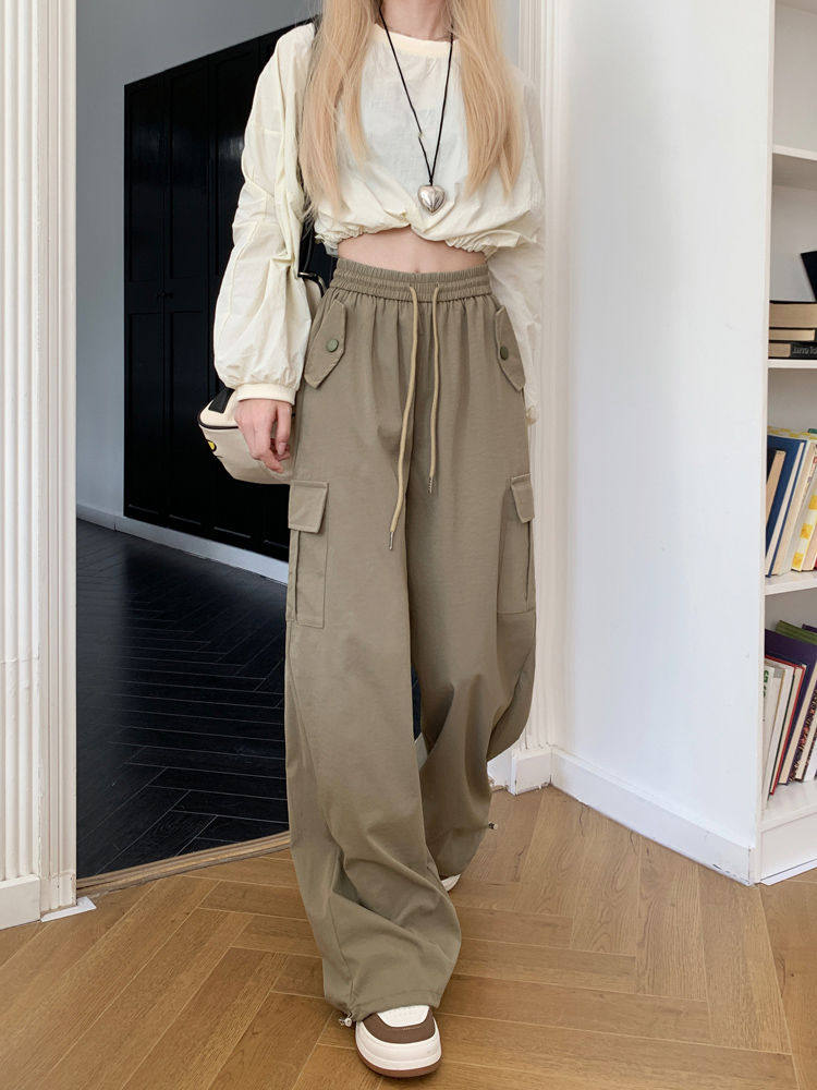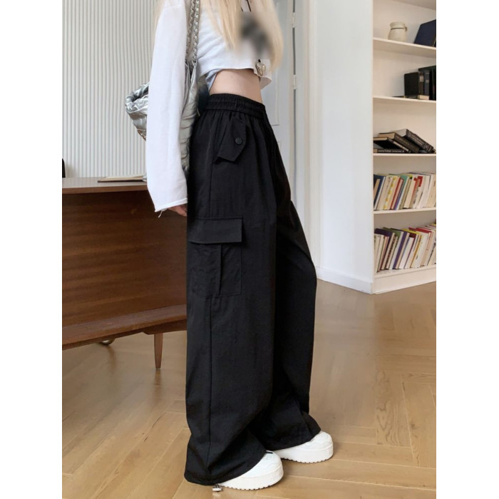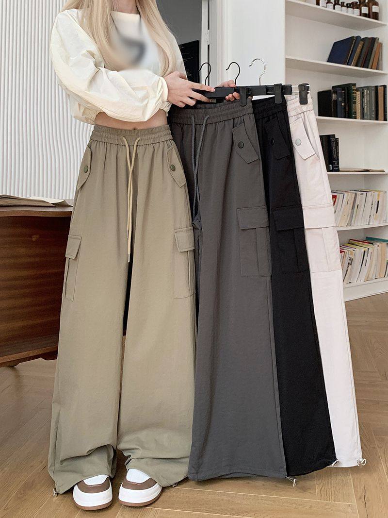 胖mm300斤大碼美式直筒垂感工裝褲女秋季寬鬆高腰休閒拖地濶腿褲