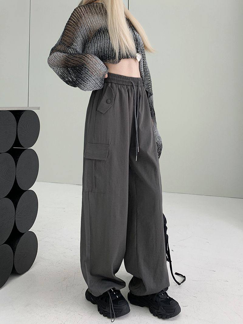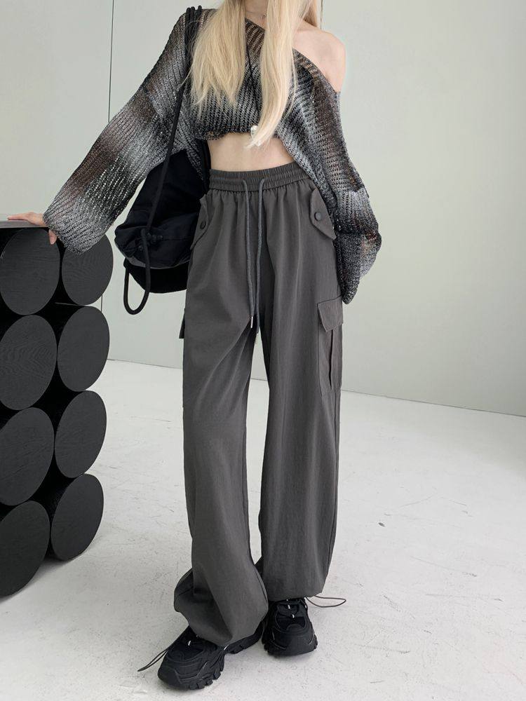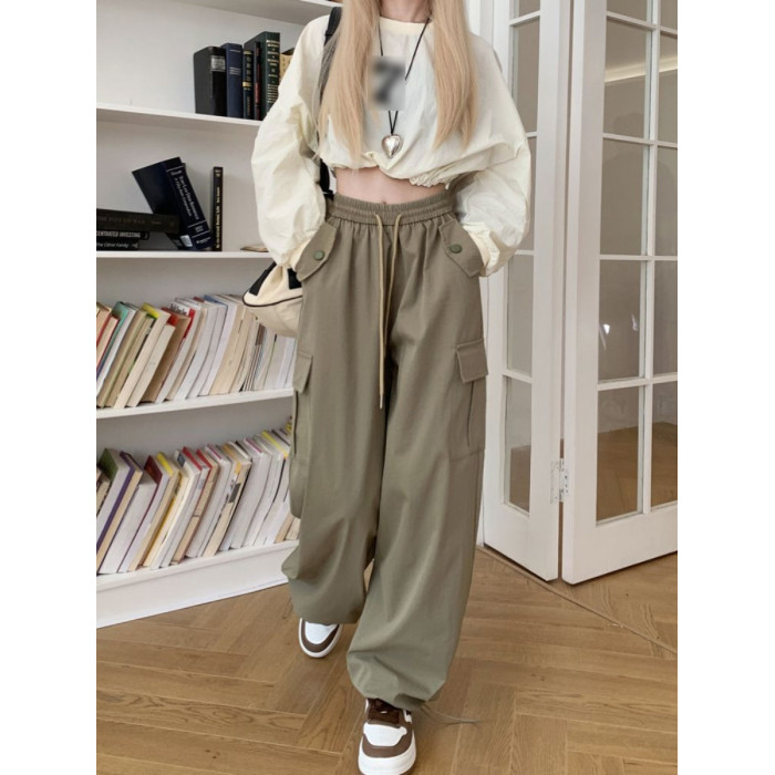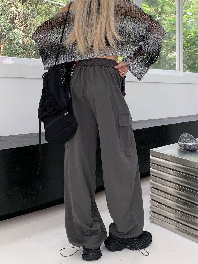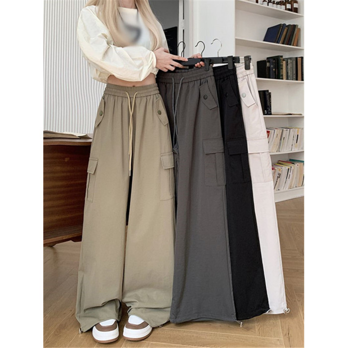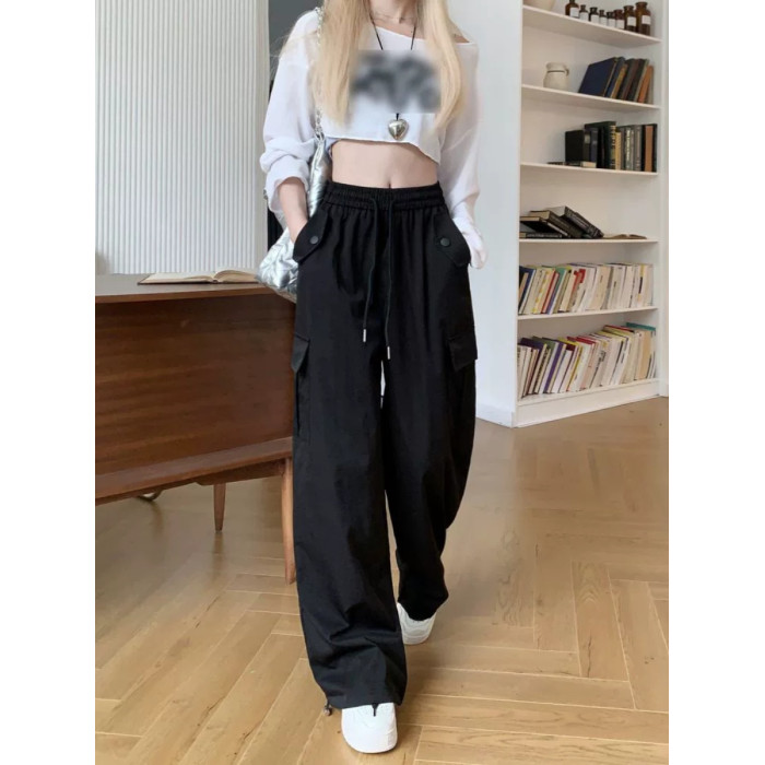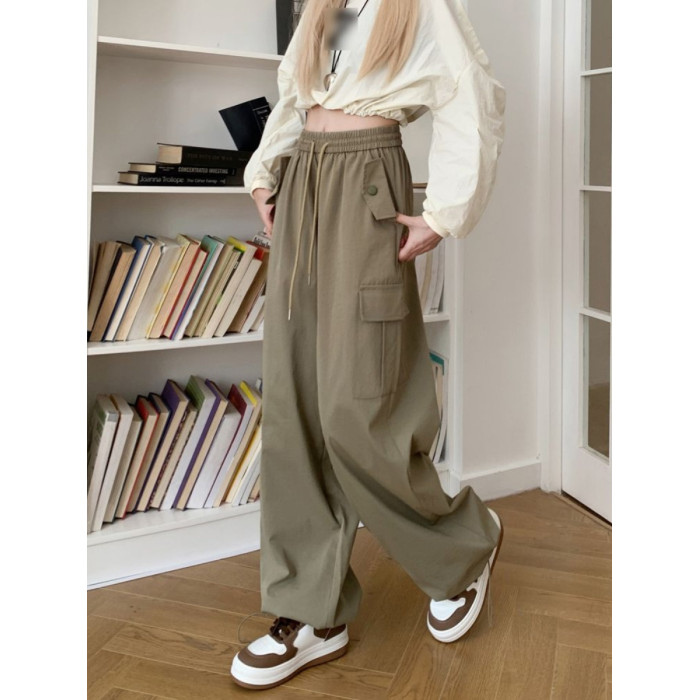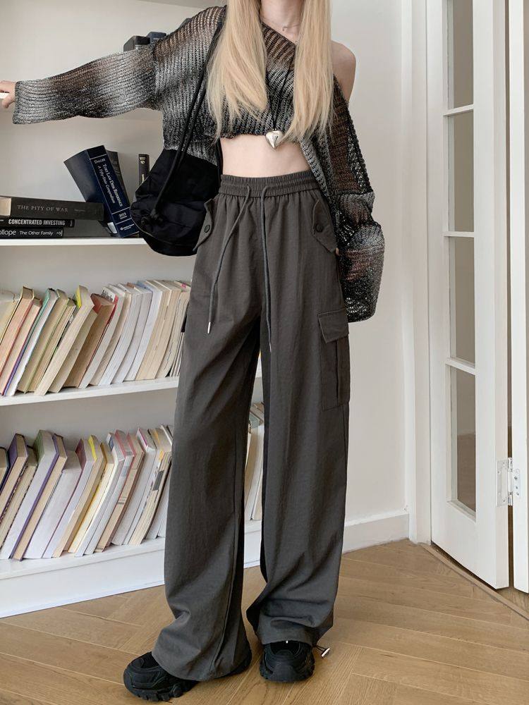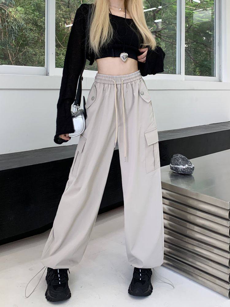 胖mm300斤大碼美式直筒垂感工裝褲女秋季寬鬆高腰休閒拖地濶腿褲