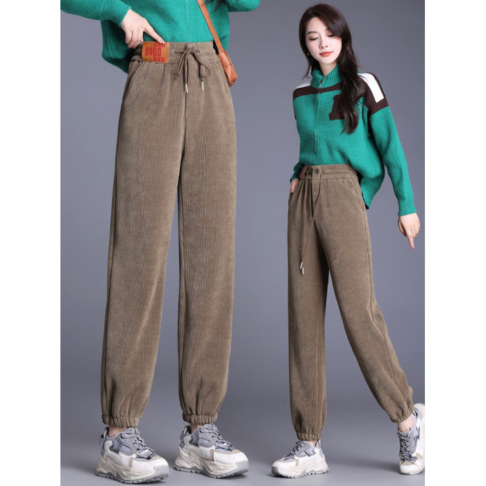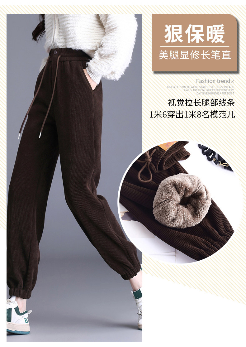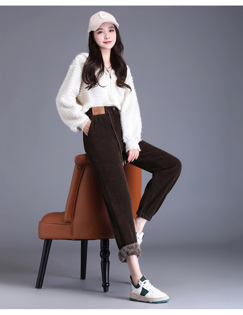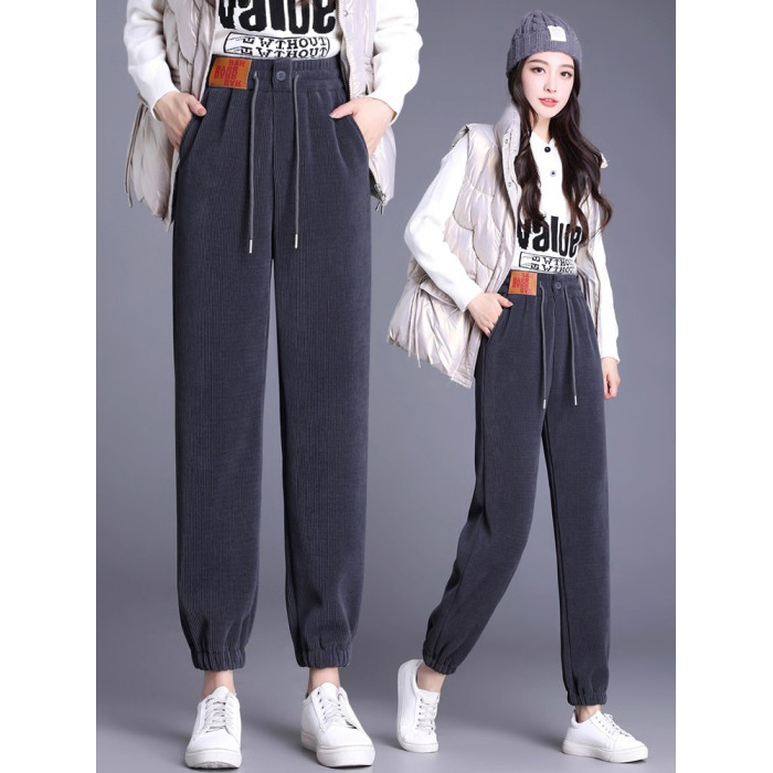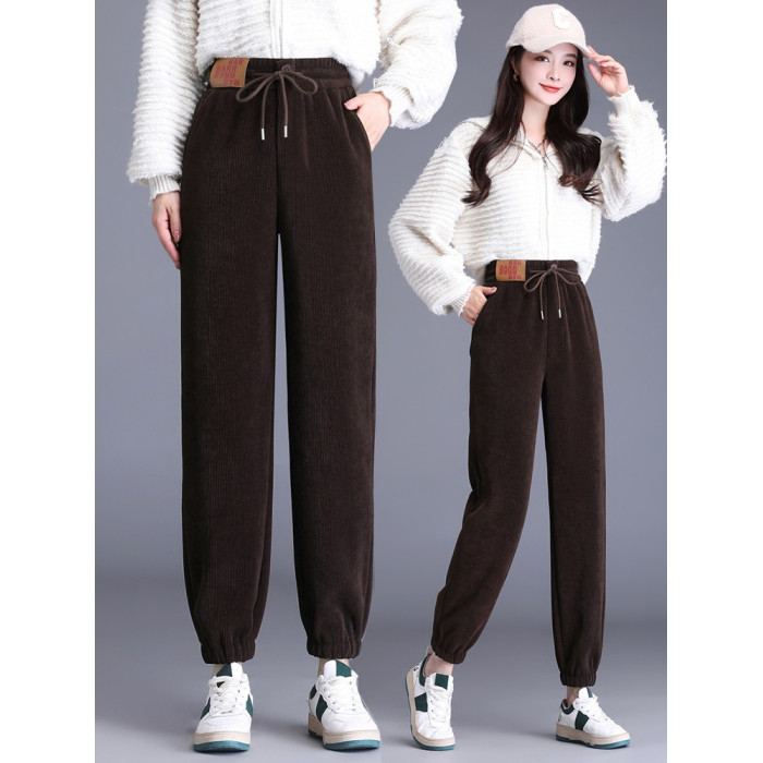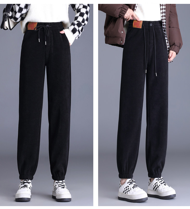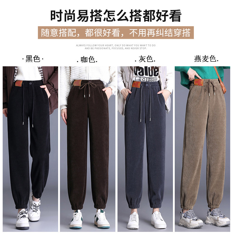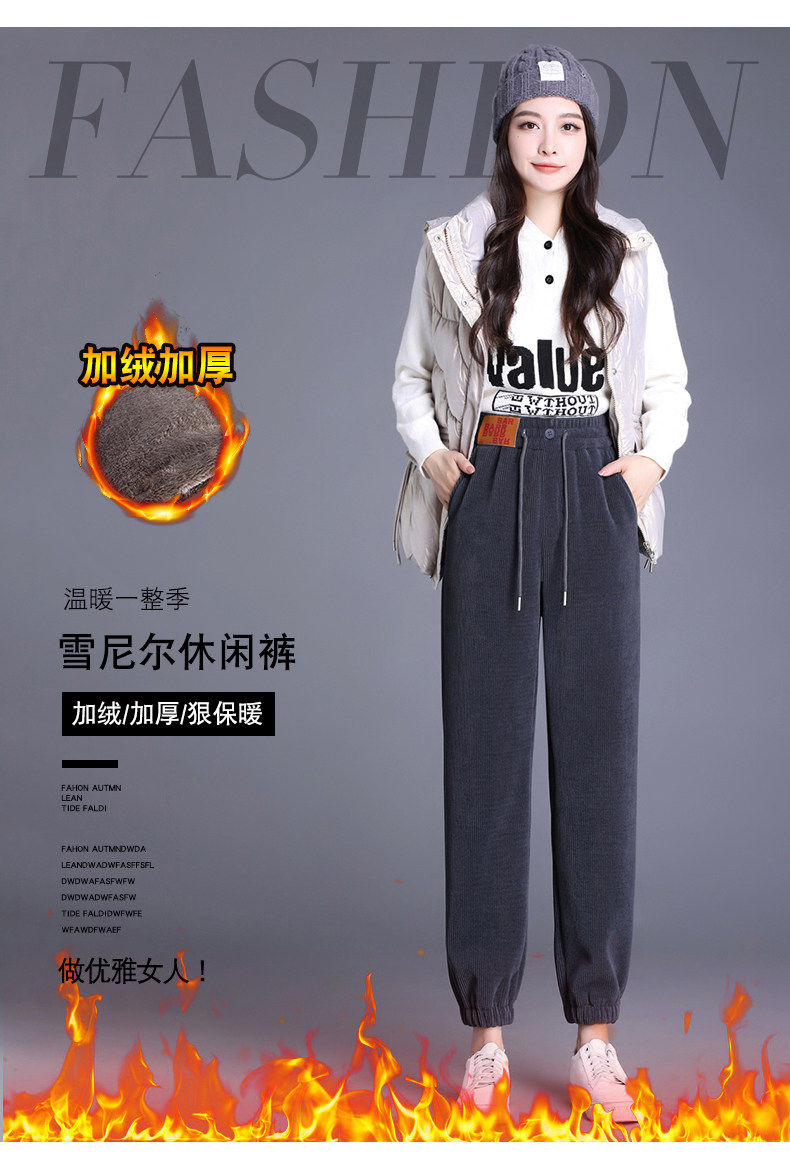 加絨加厚雪尼爾褲子女2025秋冬新款網紅爆款束腳高腰休閒哈倫褲潮