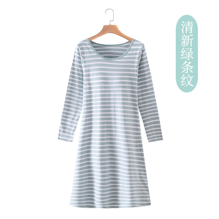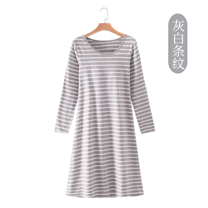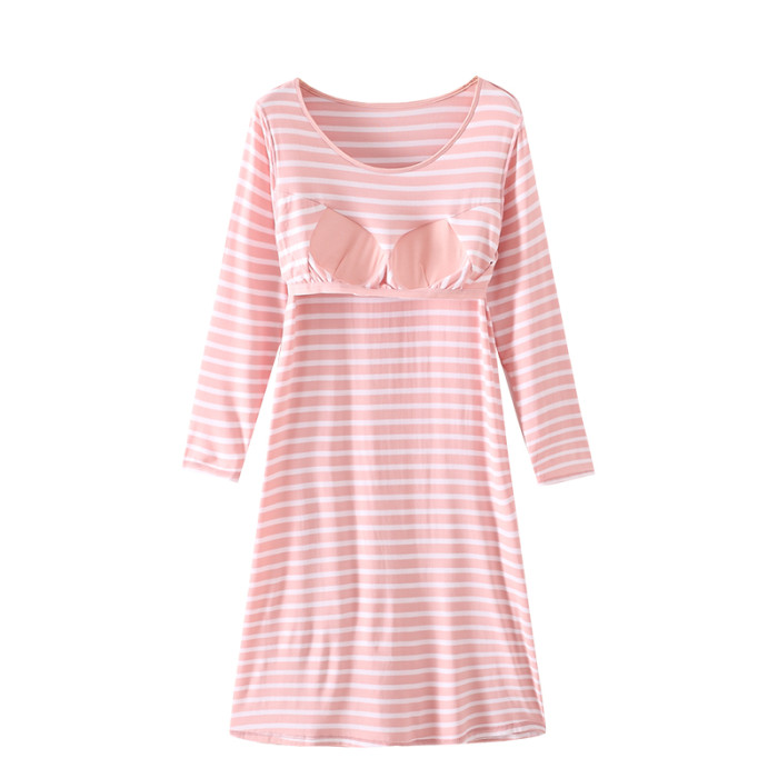 莫代爾純棉女帶胸墊長袖睡裙寬鬆加大碼罩杯一體免文胸睡衣家居服