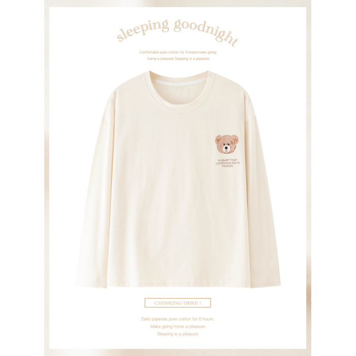 純棉睡衣上衣女士 T恤春秋圓領長袖寬鬆大碼秋冬家居服單件睡衣
