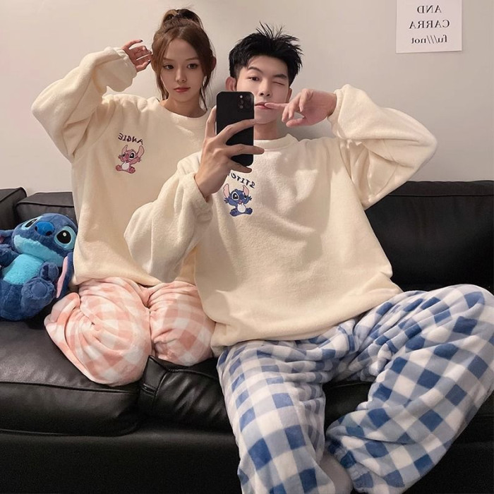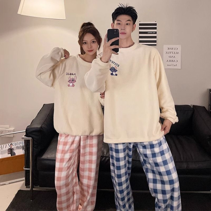 2025新款情侶睡衣女秋冬季珊瑚絨加絨加厚可愛卡通男士家居服套裝