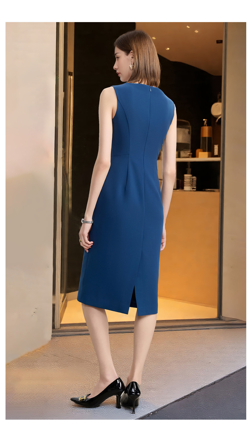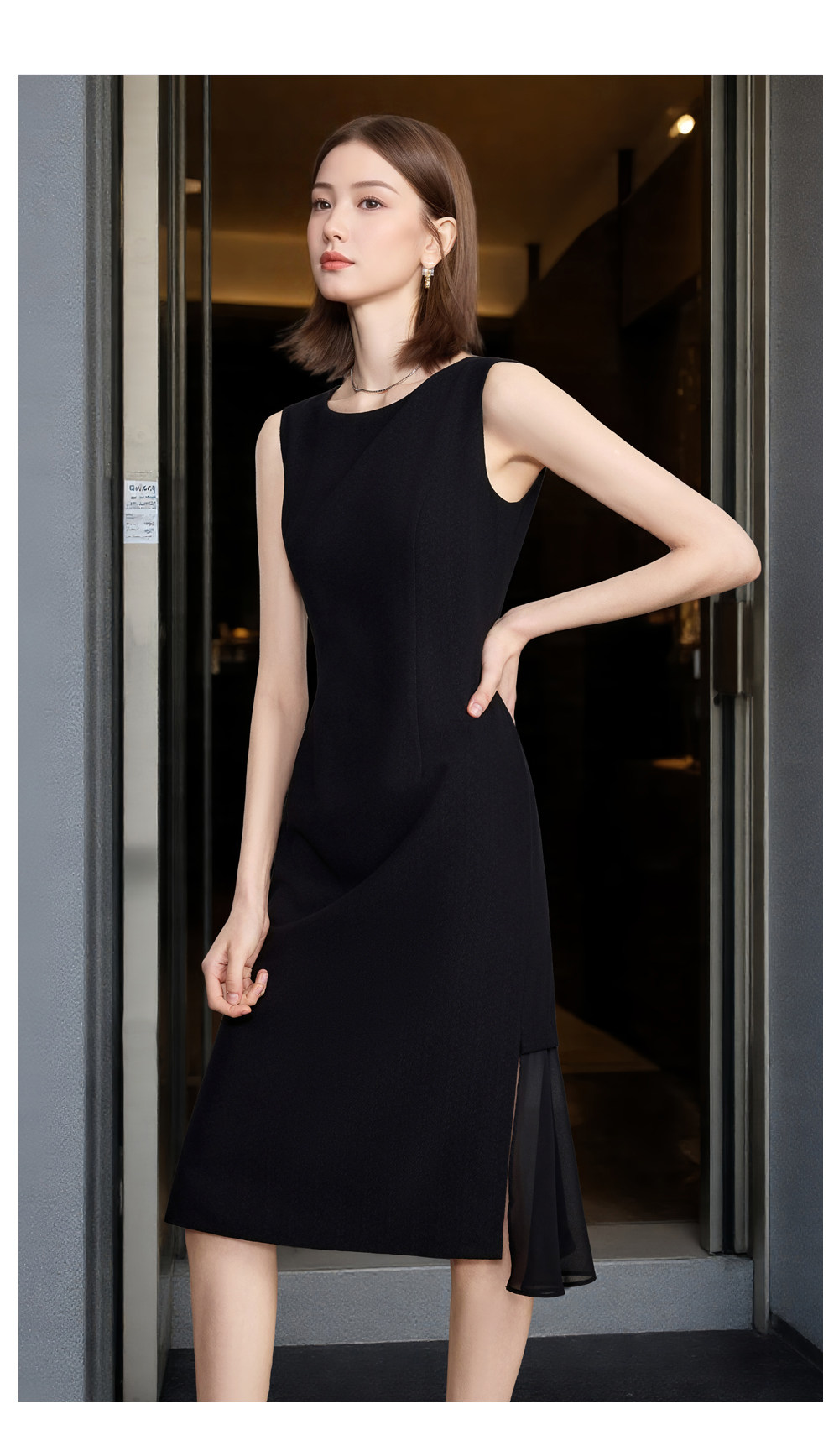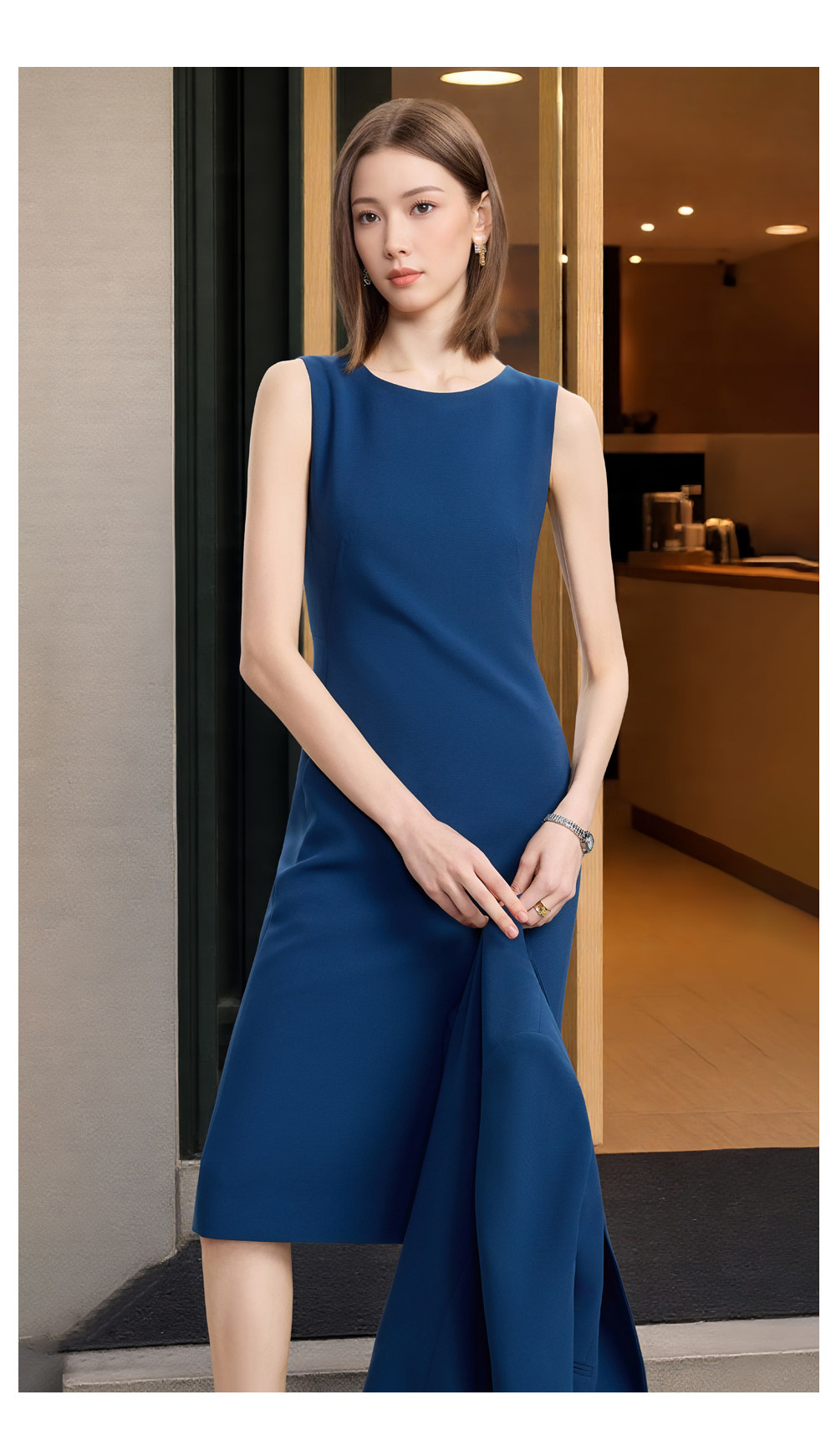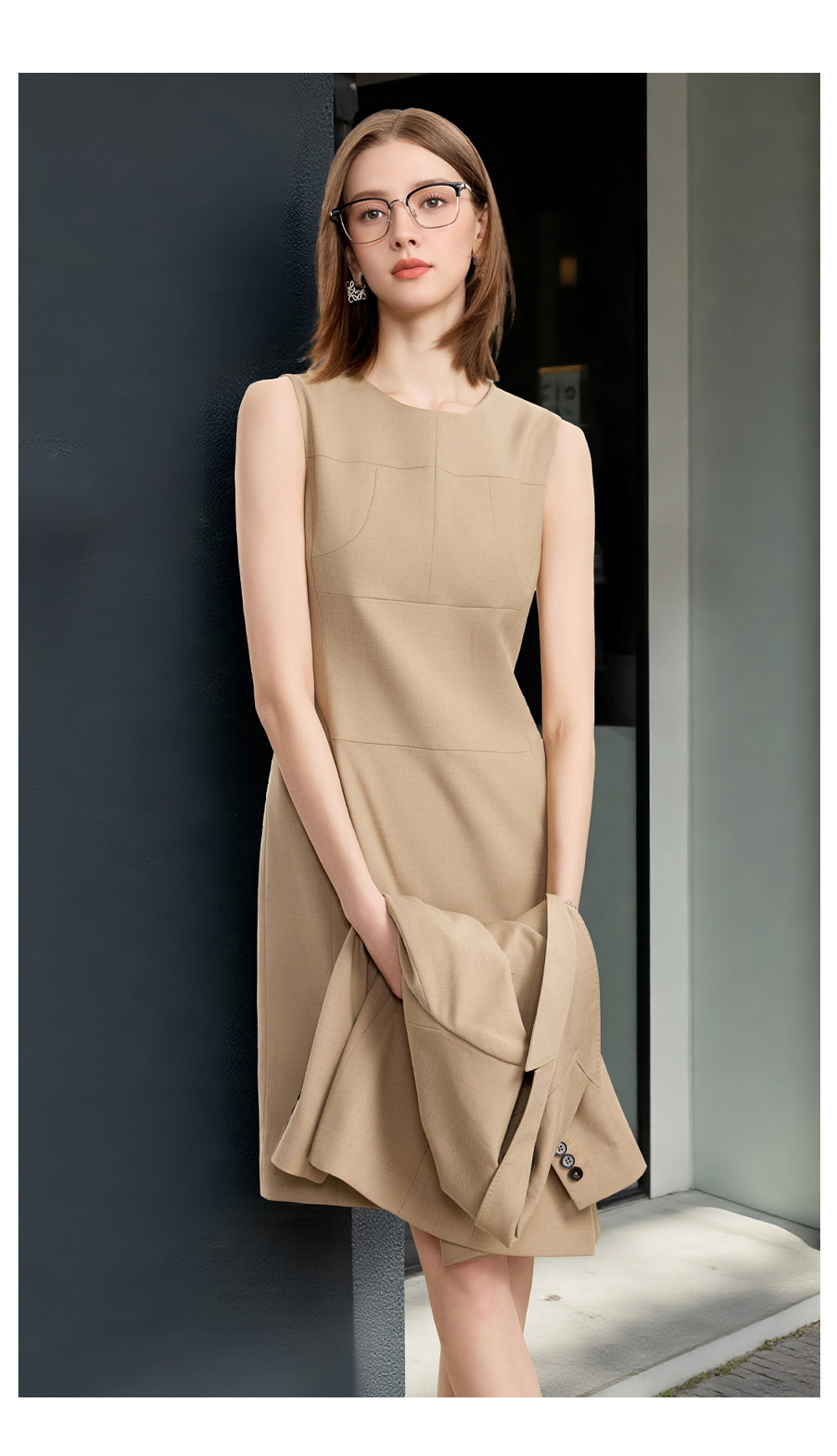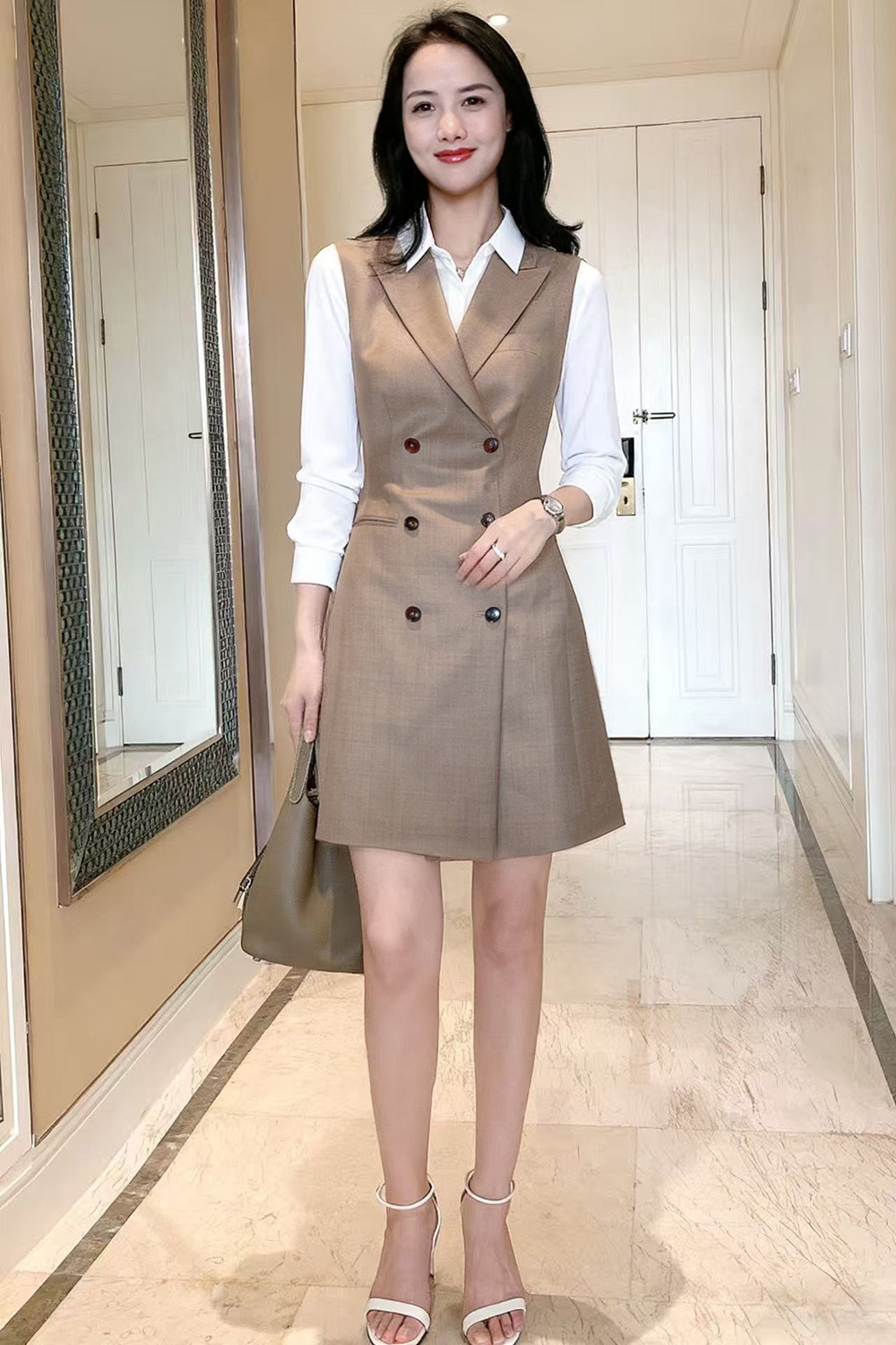 夏季薄款無袖雙排釦西裝裙女背心裙氣質時尚女神範高級職業連衣裙