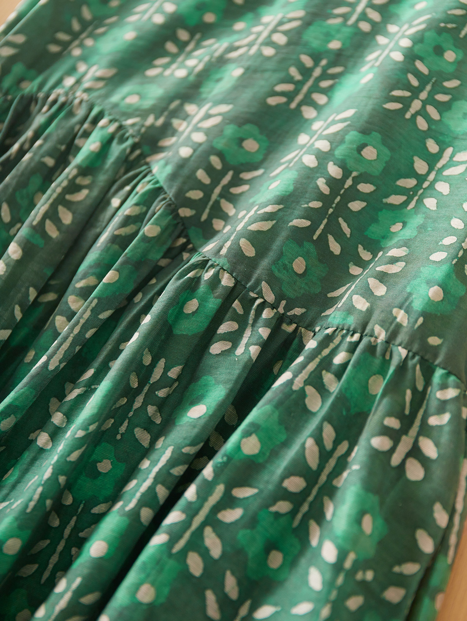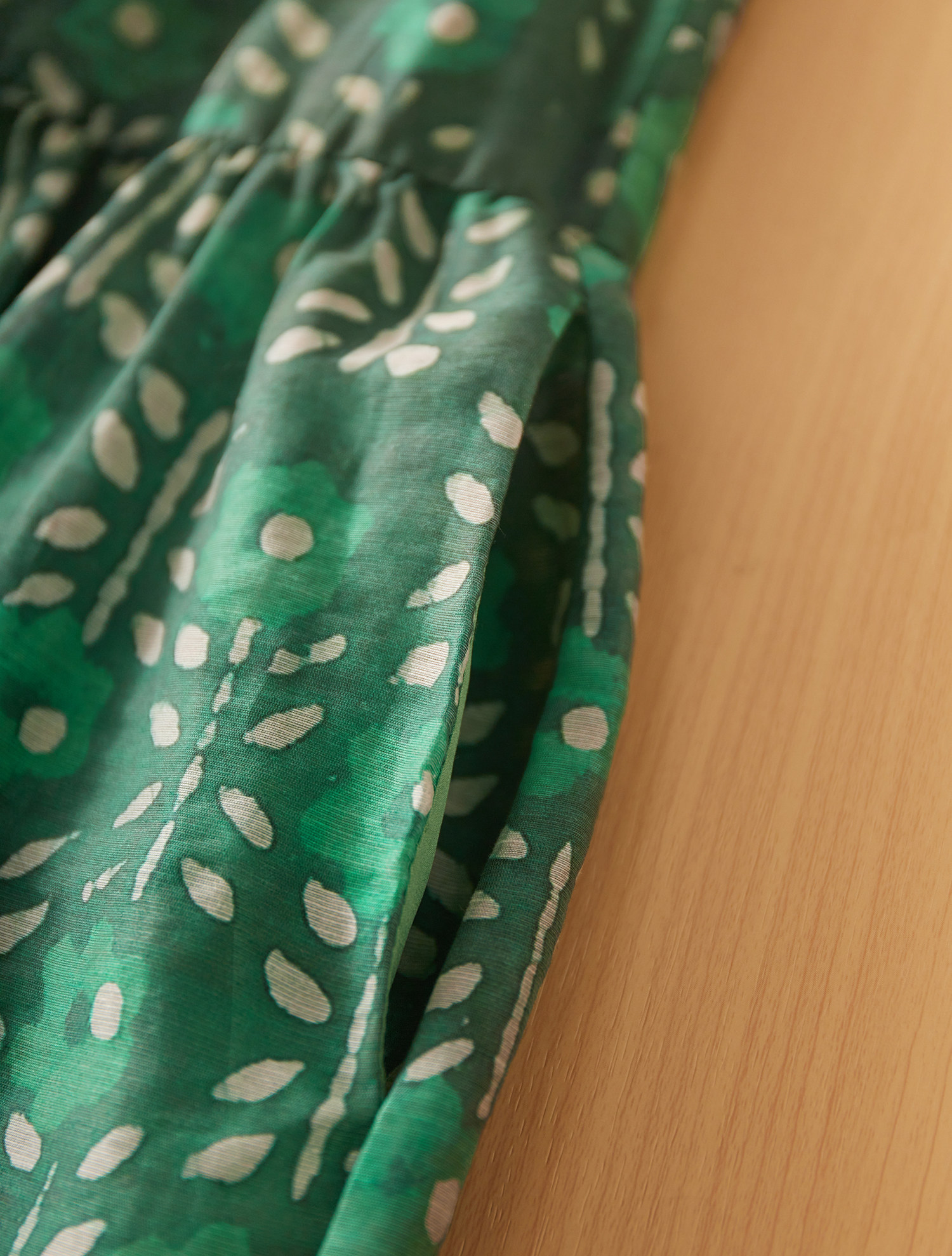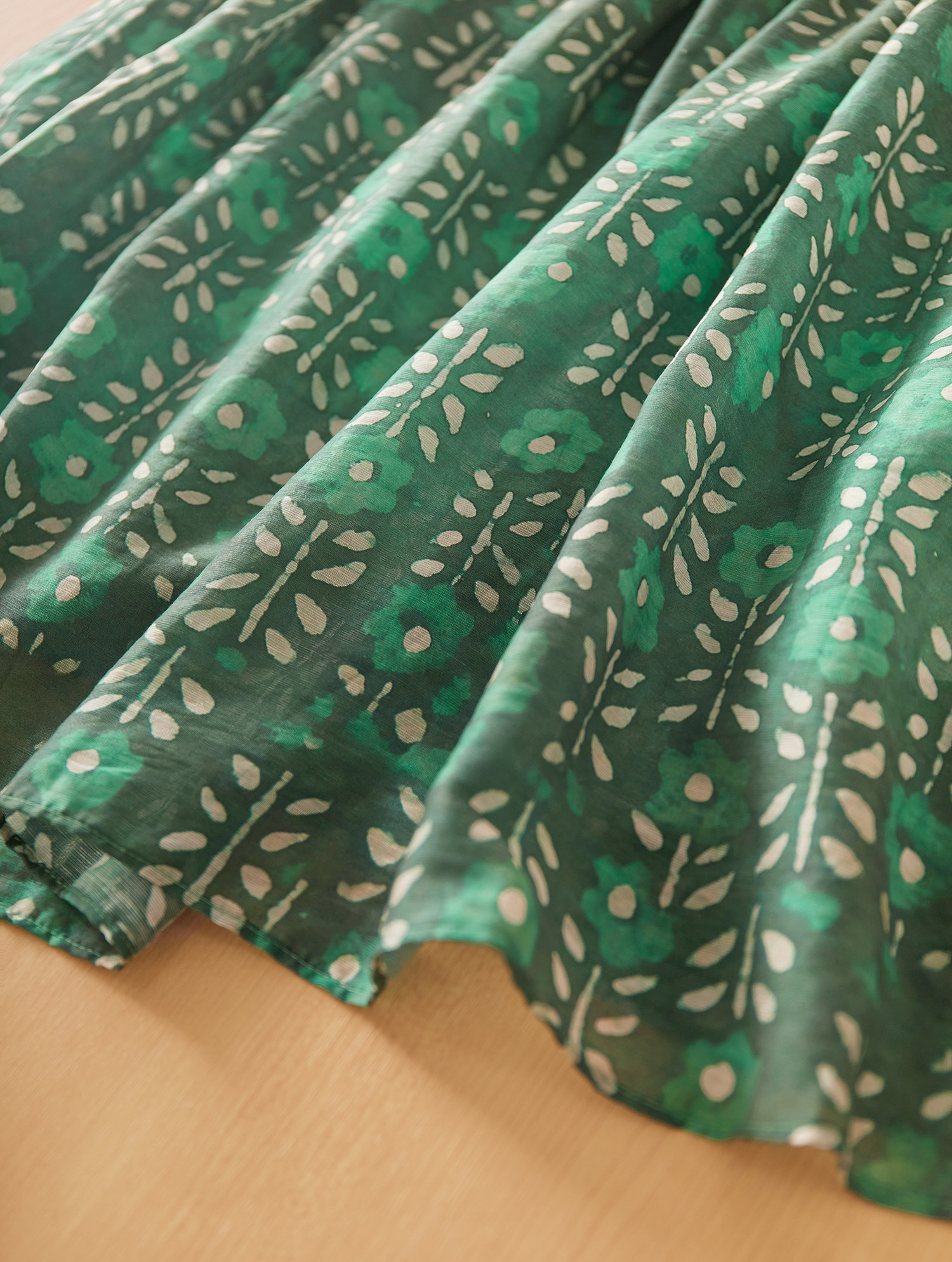 綠色規則花型印花面料,精緻美觀