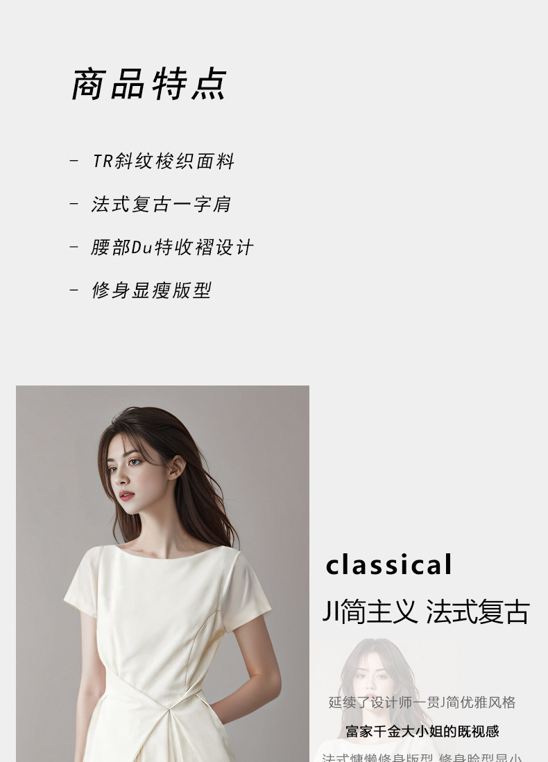 白色連衣裙女夏法式短袖領證初戀小白裙宴會禮服大方得體收腰長裙