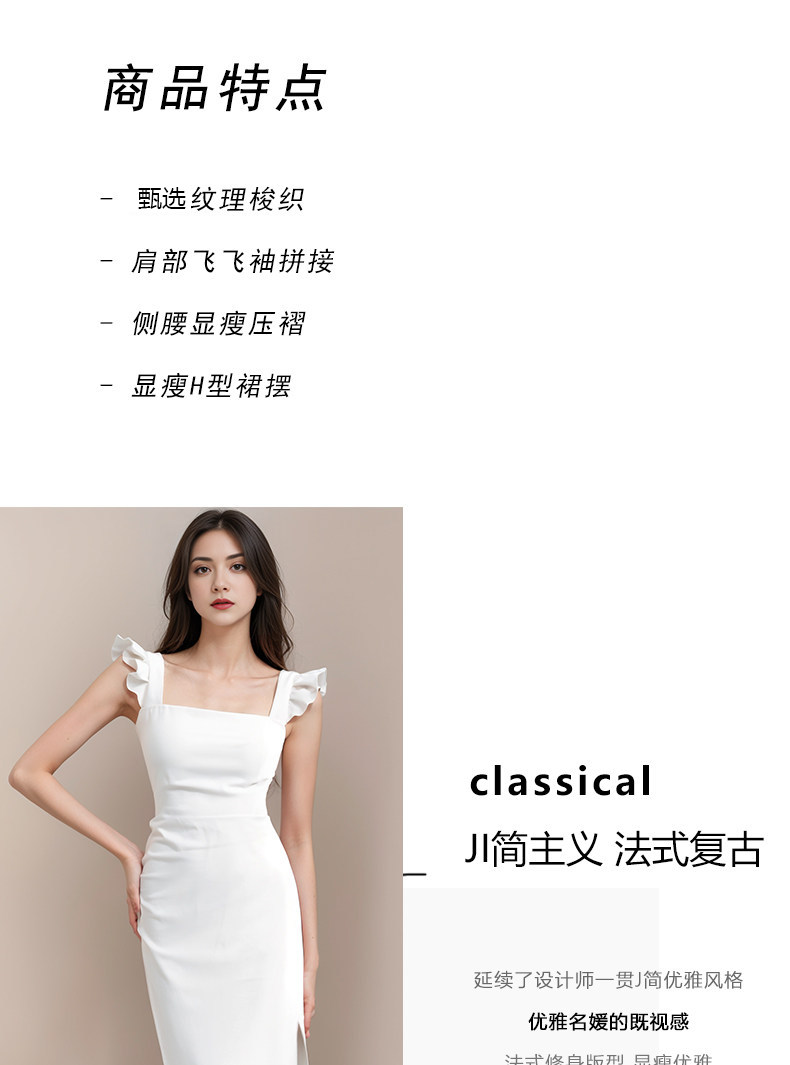 白色小飛袖吊帶連衣裙女夏法式初戀領證小白裙生日禮服長裙高級感