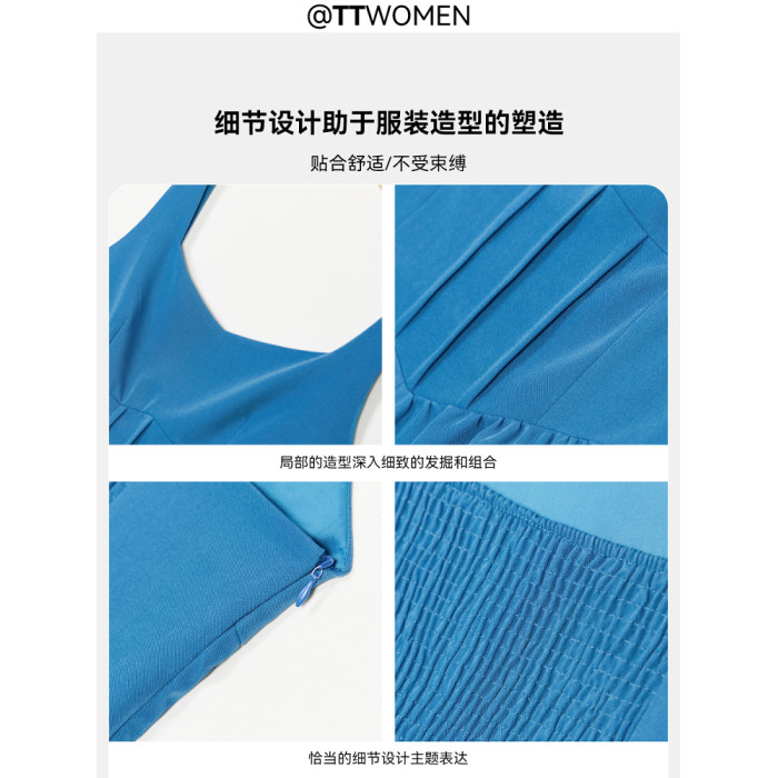 吊帶連衣裙女夏2025新款大碼胖mm藍色收腰巨顯瘦a字小個子吊帶裙