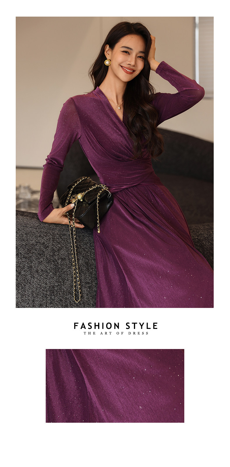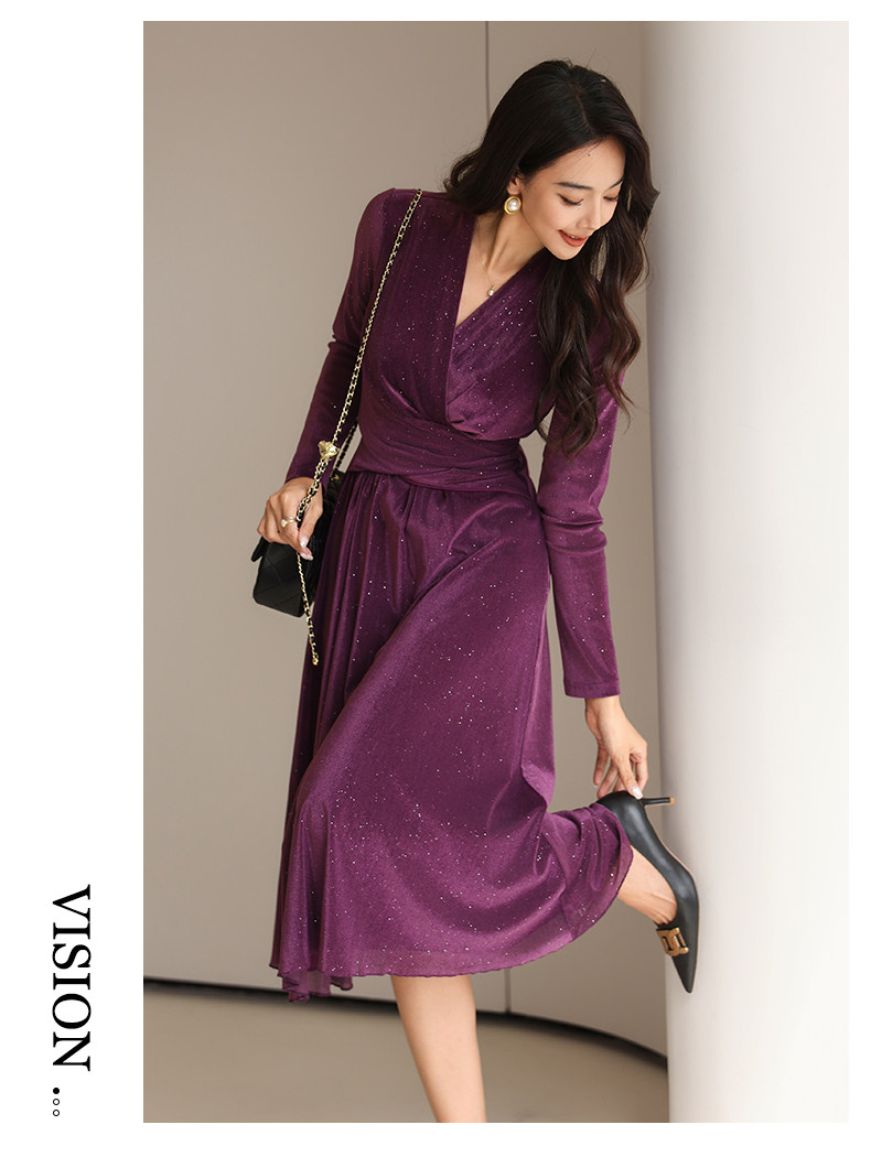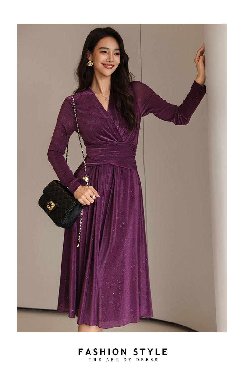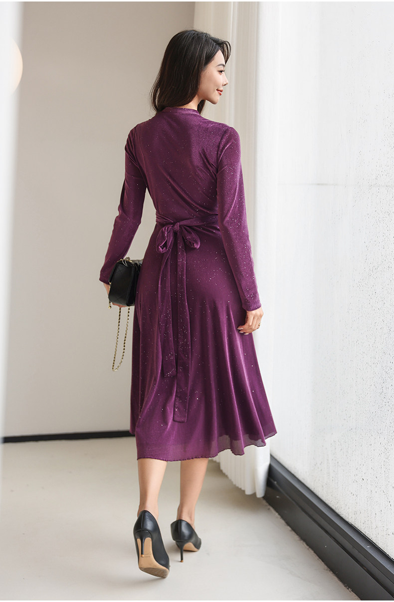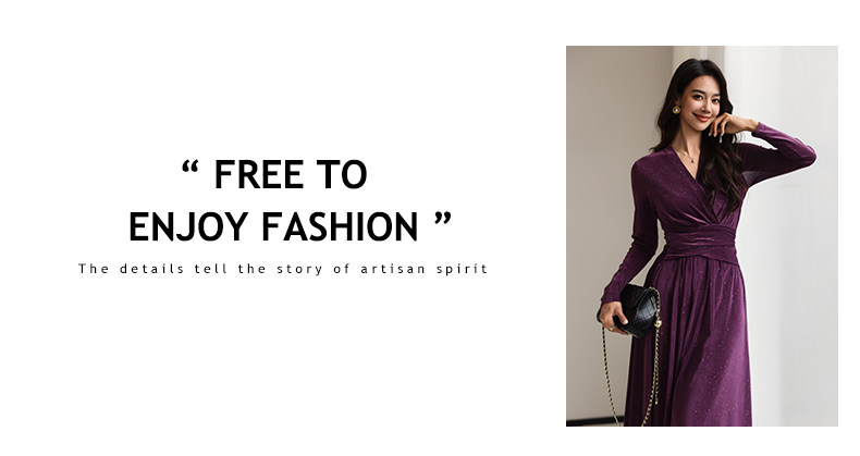 茵芝本 絲絨紫色裹身裙法式收腰顯瘦套頭綁帶連衣裙2025年新款女