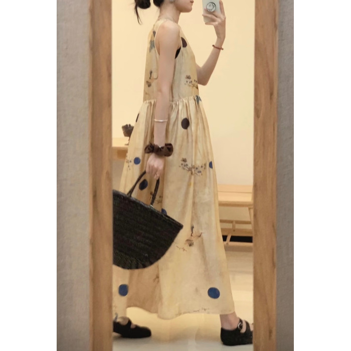 仙鶴與孔雀 UWA風100%桑蠶絲真絲寬鬆休閒無袖復古背心連衣裙夏女