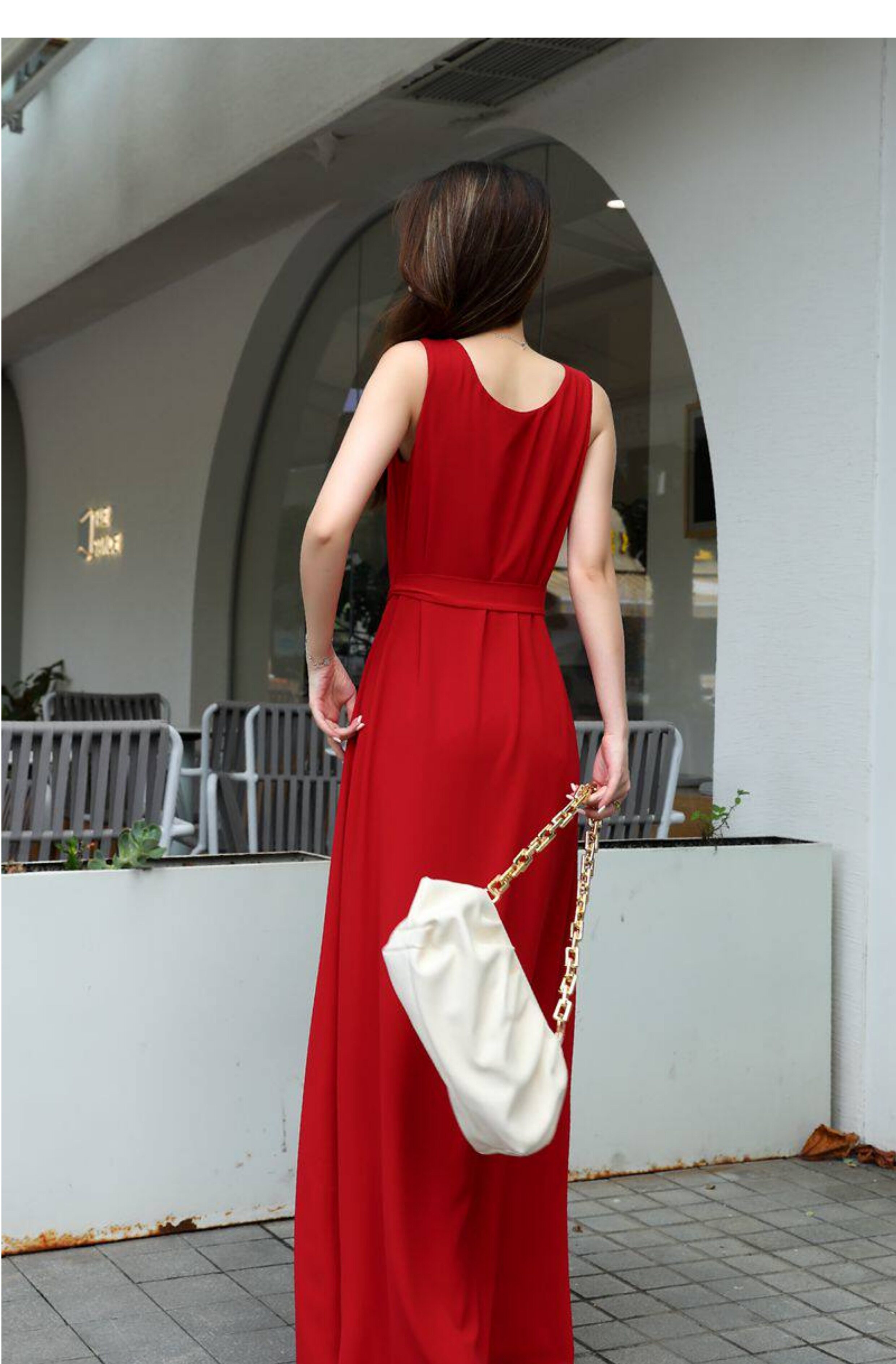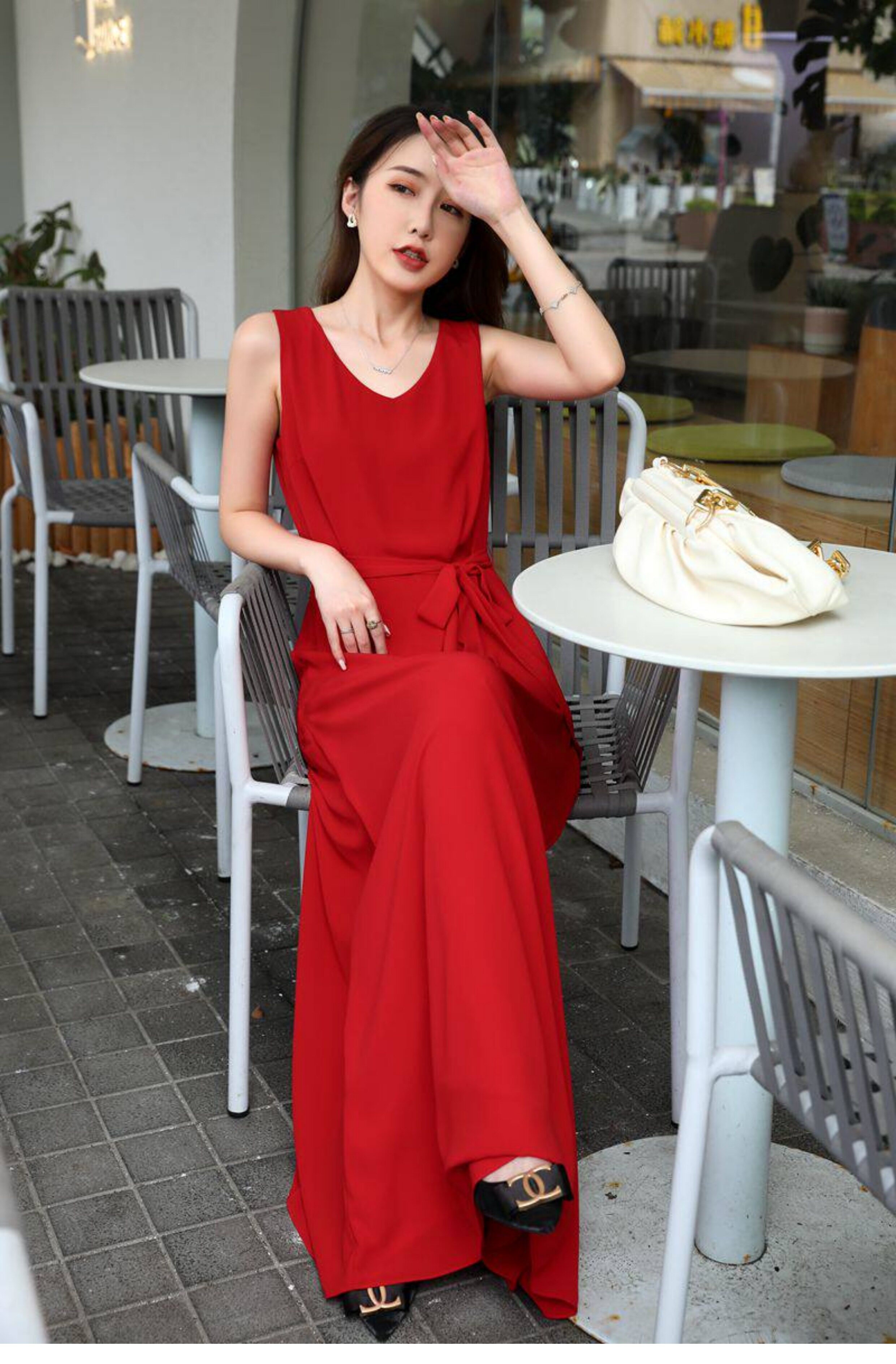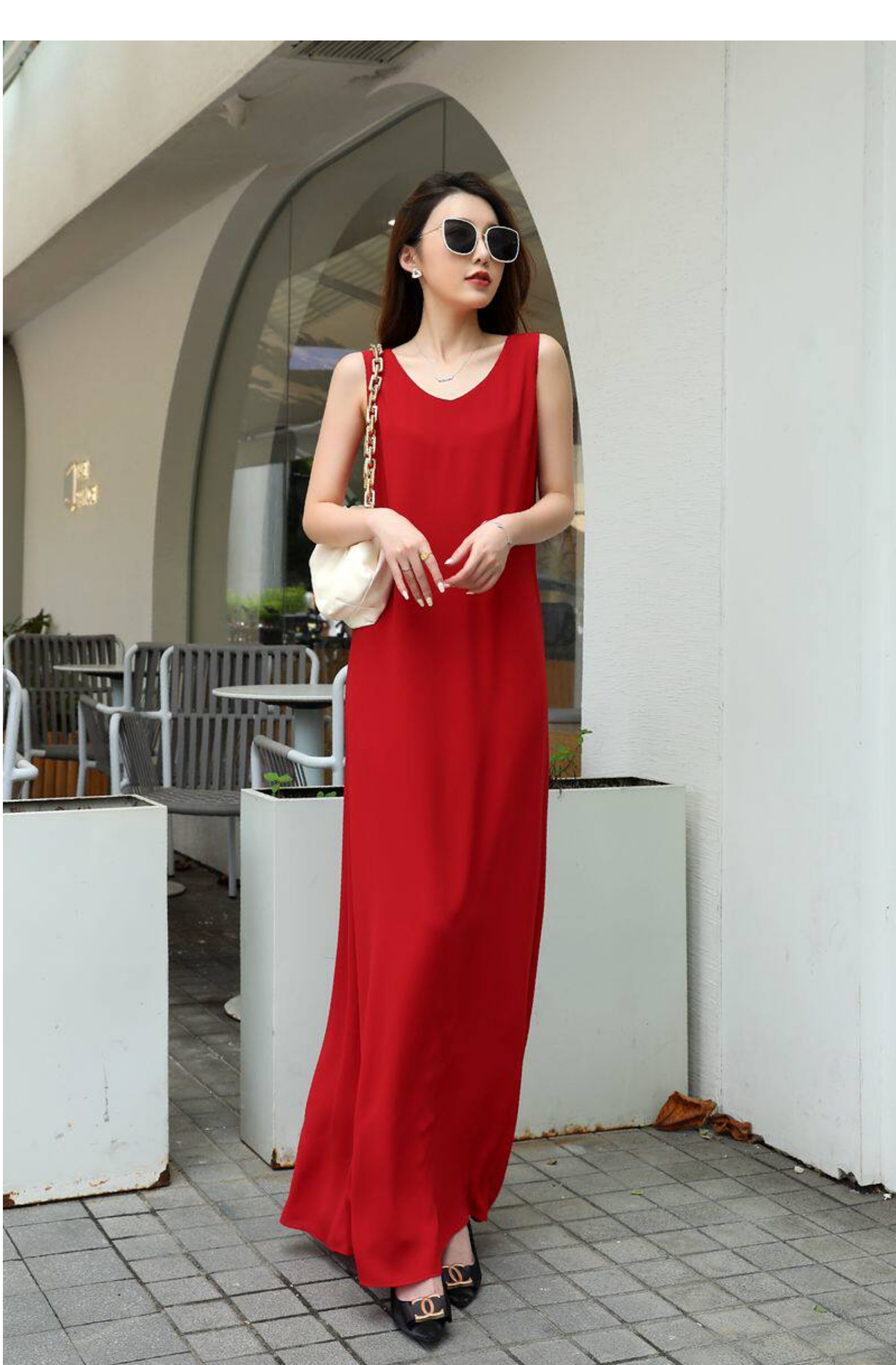紅色連衣裙夏女大碼高個子A字裙腳裸超長裙寬鬆V領長款吊帶背心裙