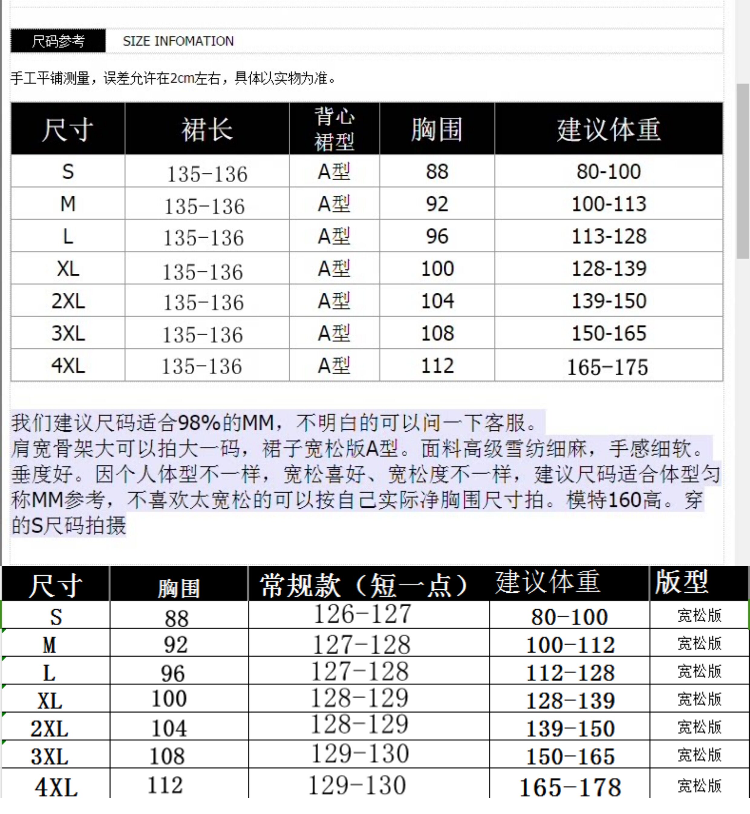 | 裙長 | 長裙 |