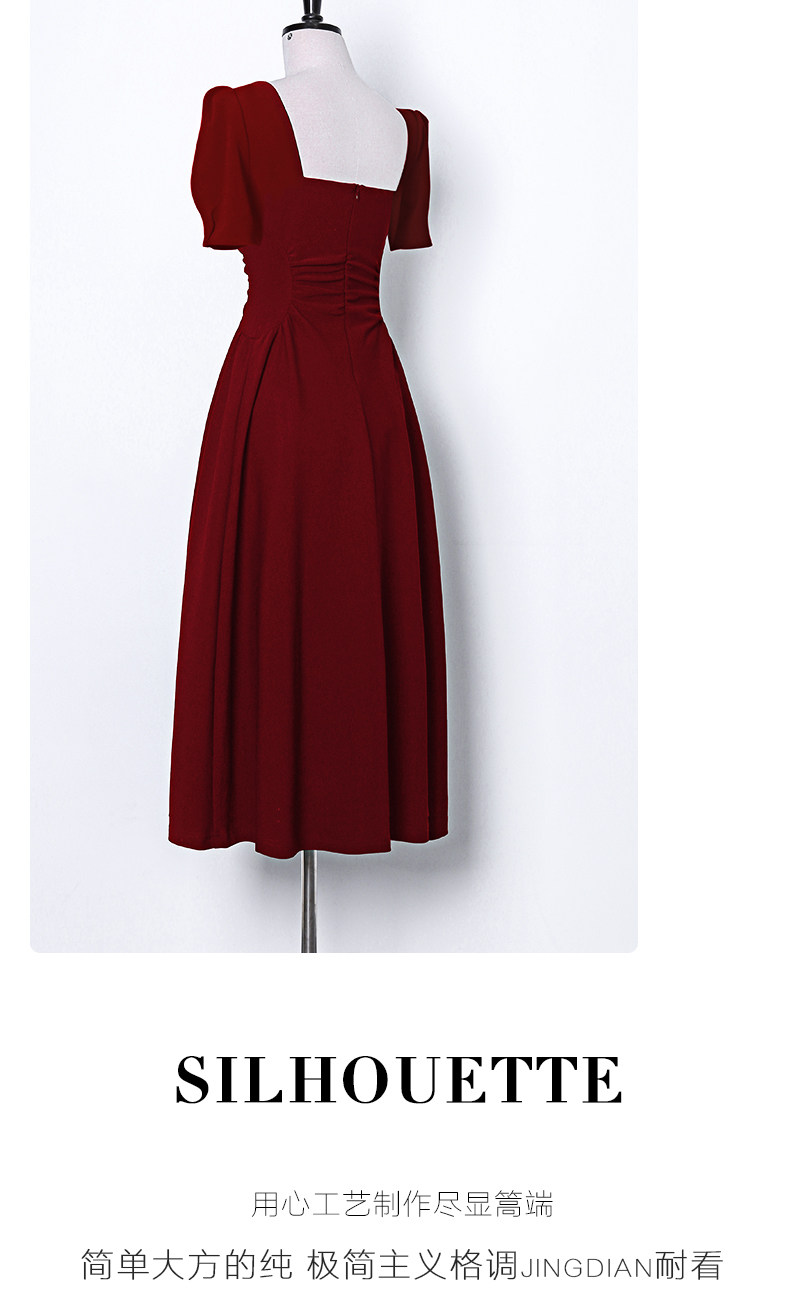 紅色連衣裙女法式赫本風高級訂婚禮服日常可穿小紅裙敬酒服春秋夏