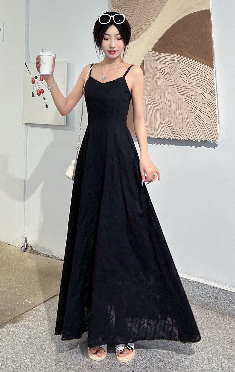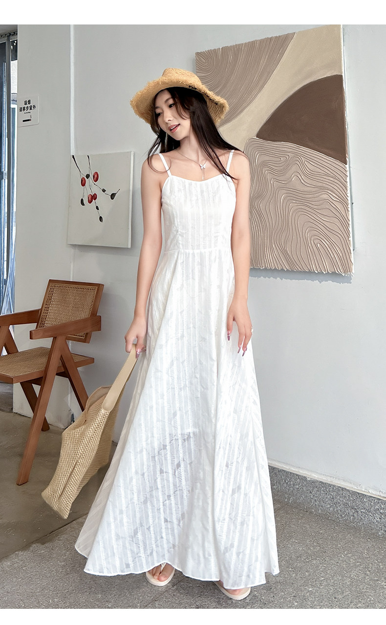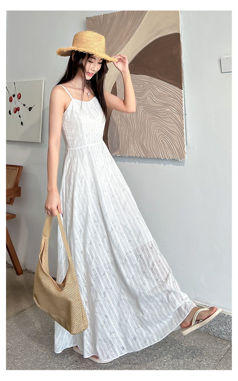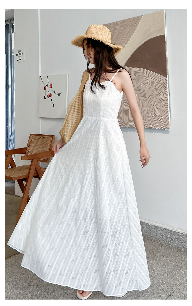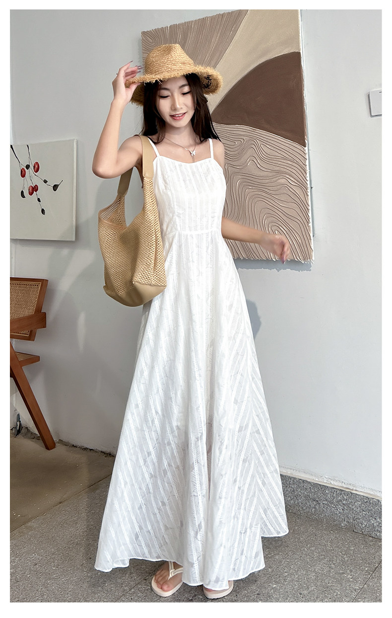 高個子加長版白色吊帶裙小衆不撞款連衣裙女夏季長裙到腳踝超長款