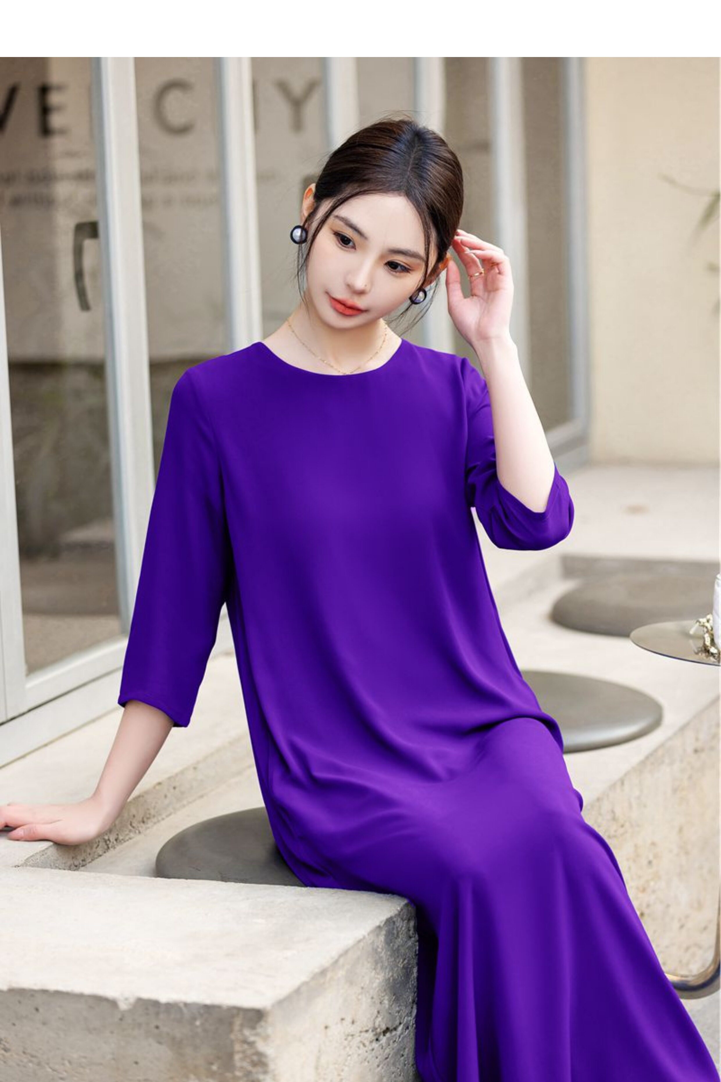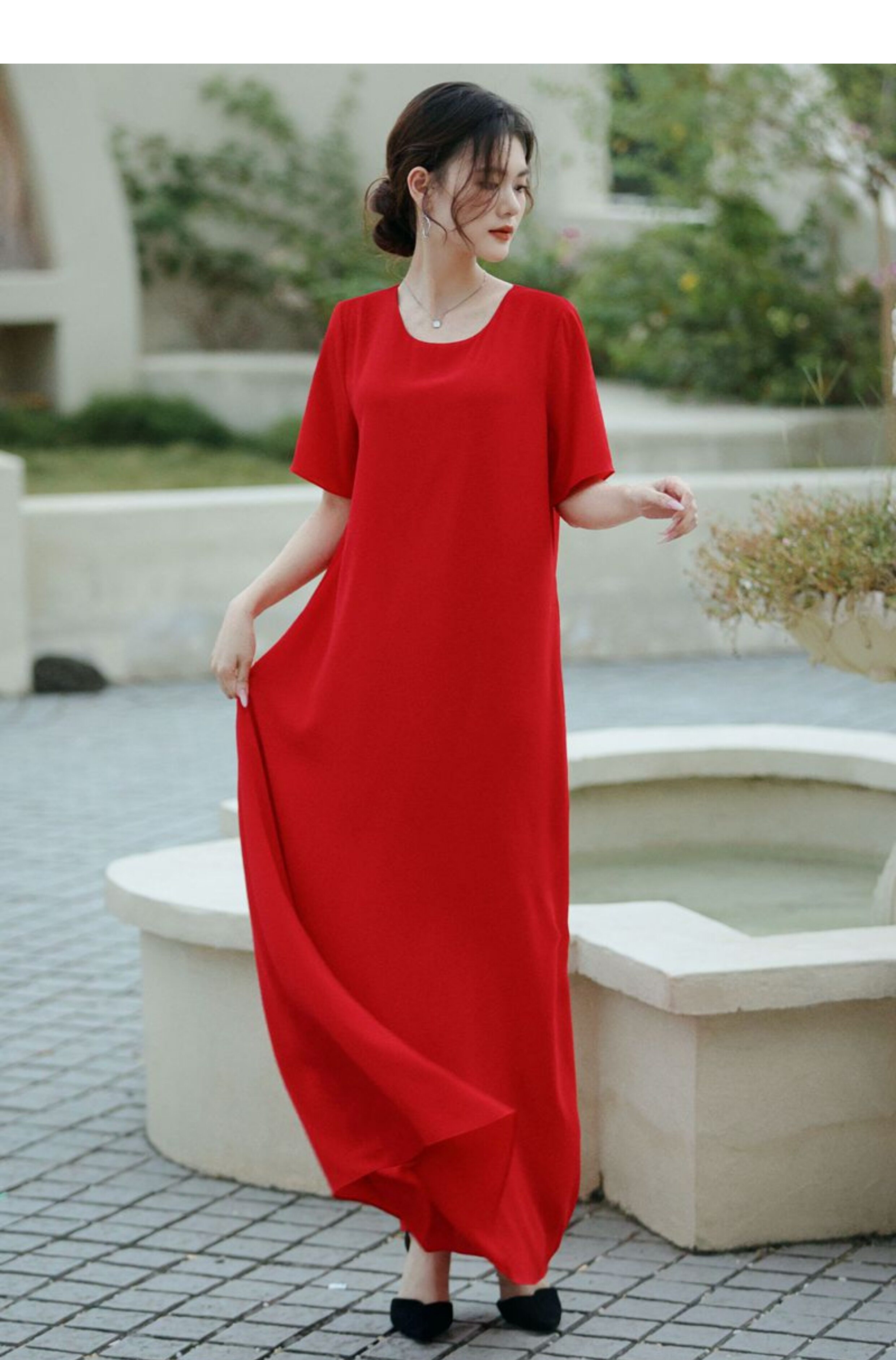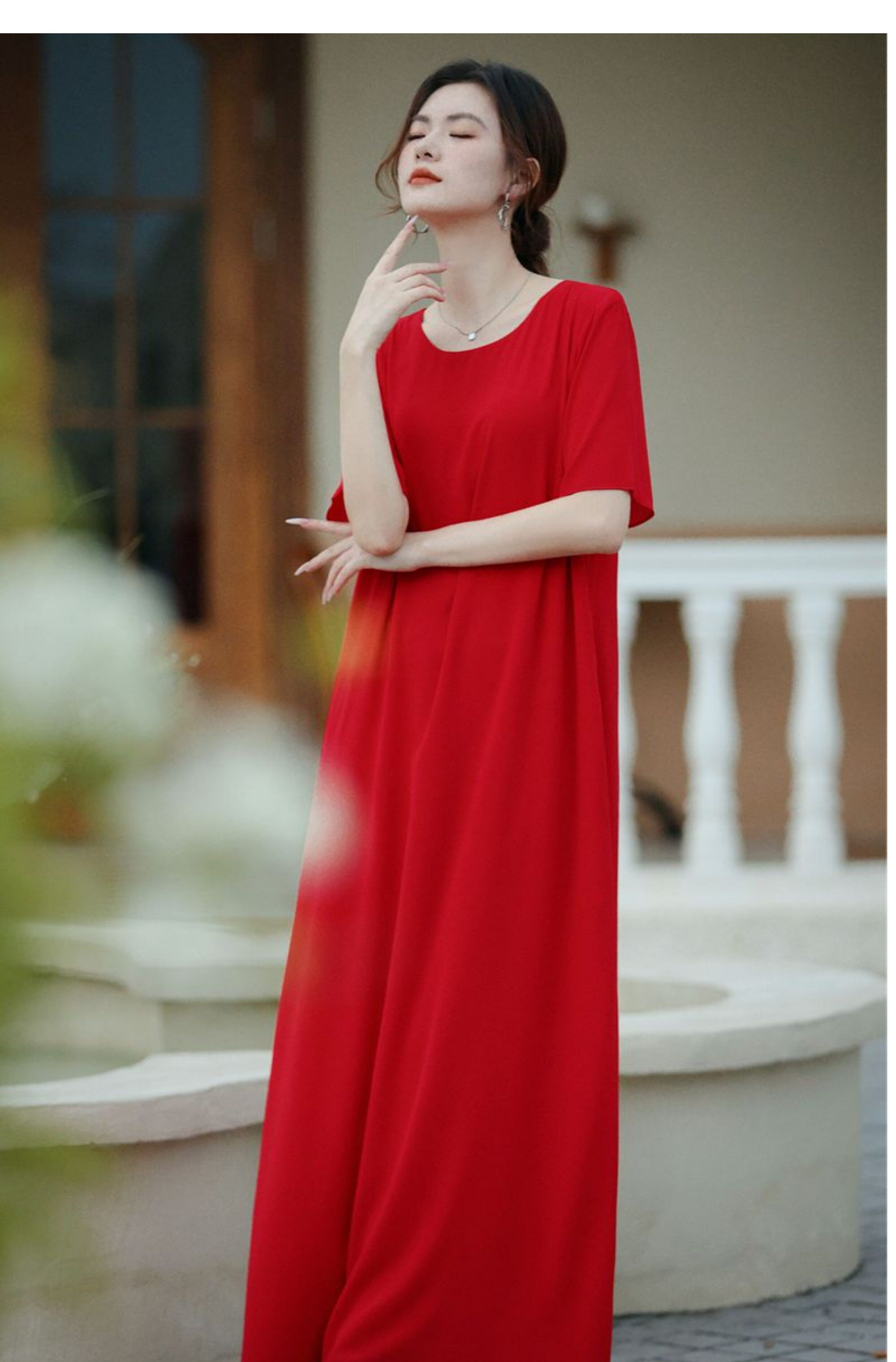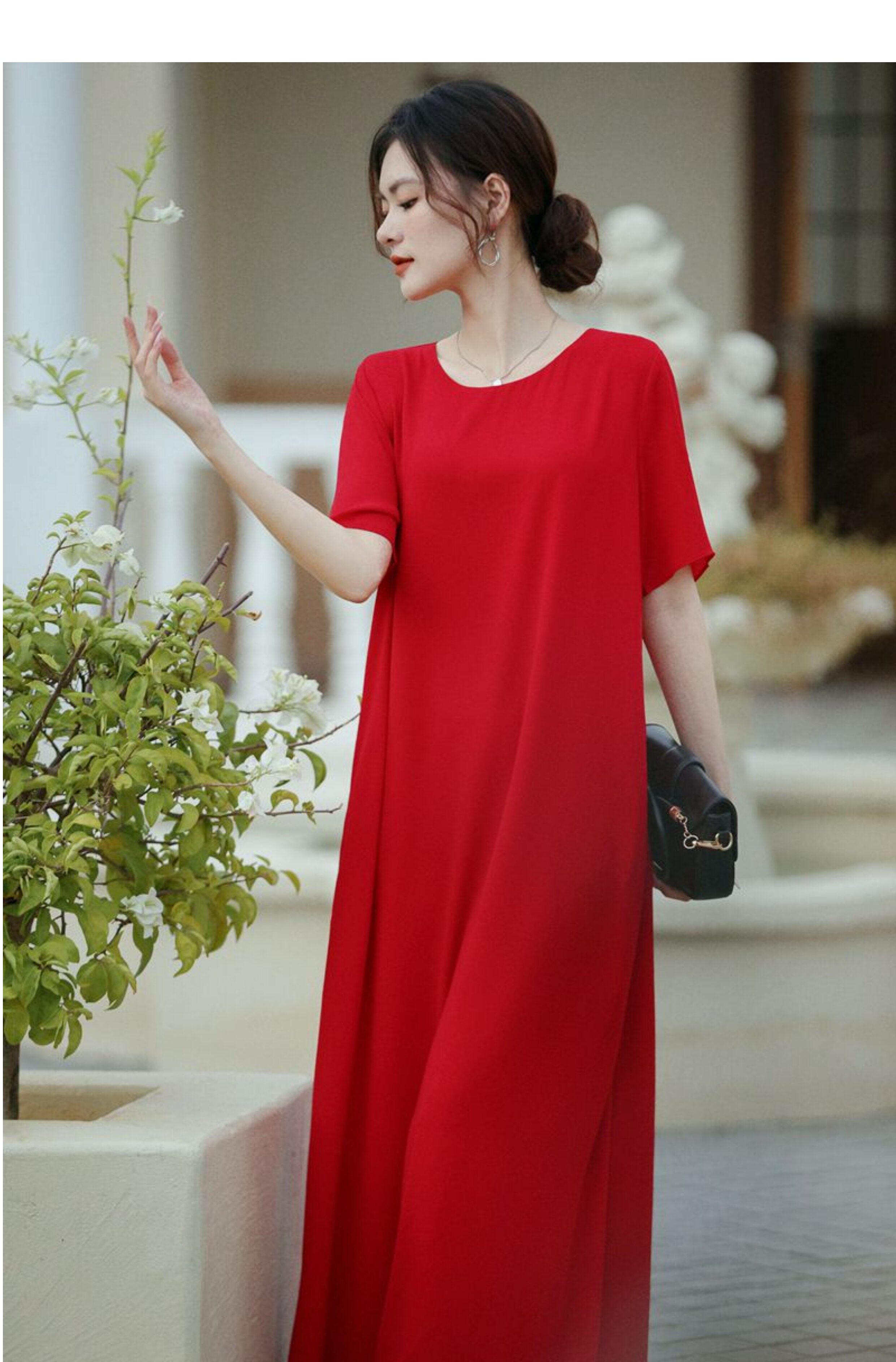 連衣裙女夏長款寬鬆極簡慵懶長裙短袖腳裸大碼裙氣質垂感遮肚裙