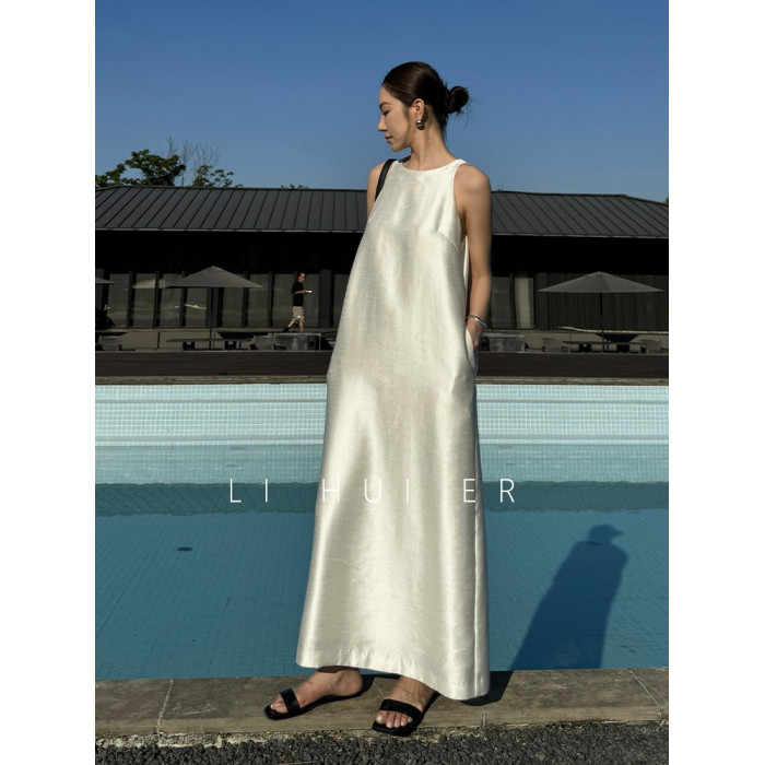 LiHuiEr李慧兒【簡霧】白色無袖連衣裙女夏法式輕奢高級感背心裙