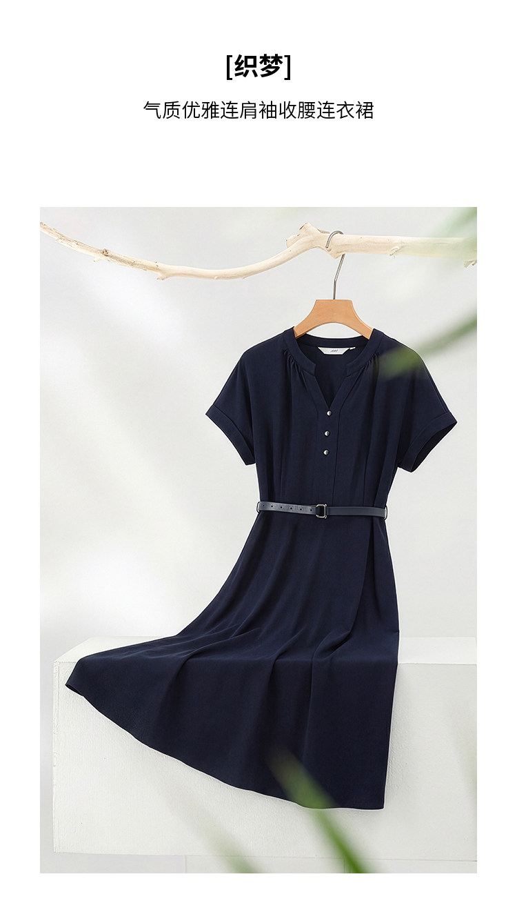 XWI訢未優雅氣質設計感連衣裙女夏季正式場合簡約收腰顯瘦襯衫裙