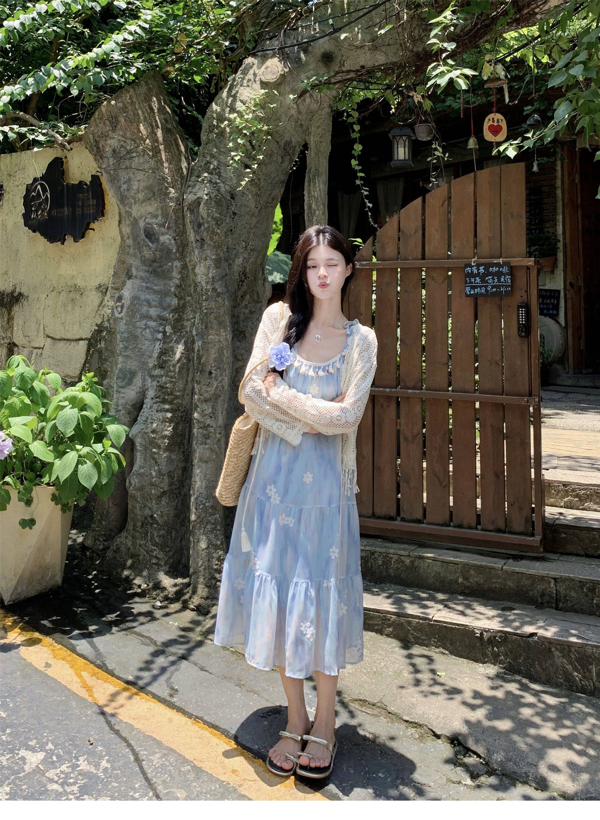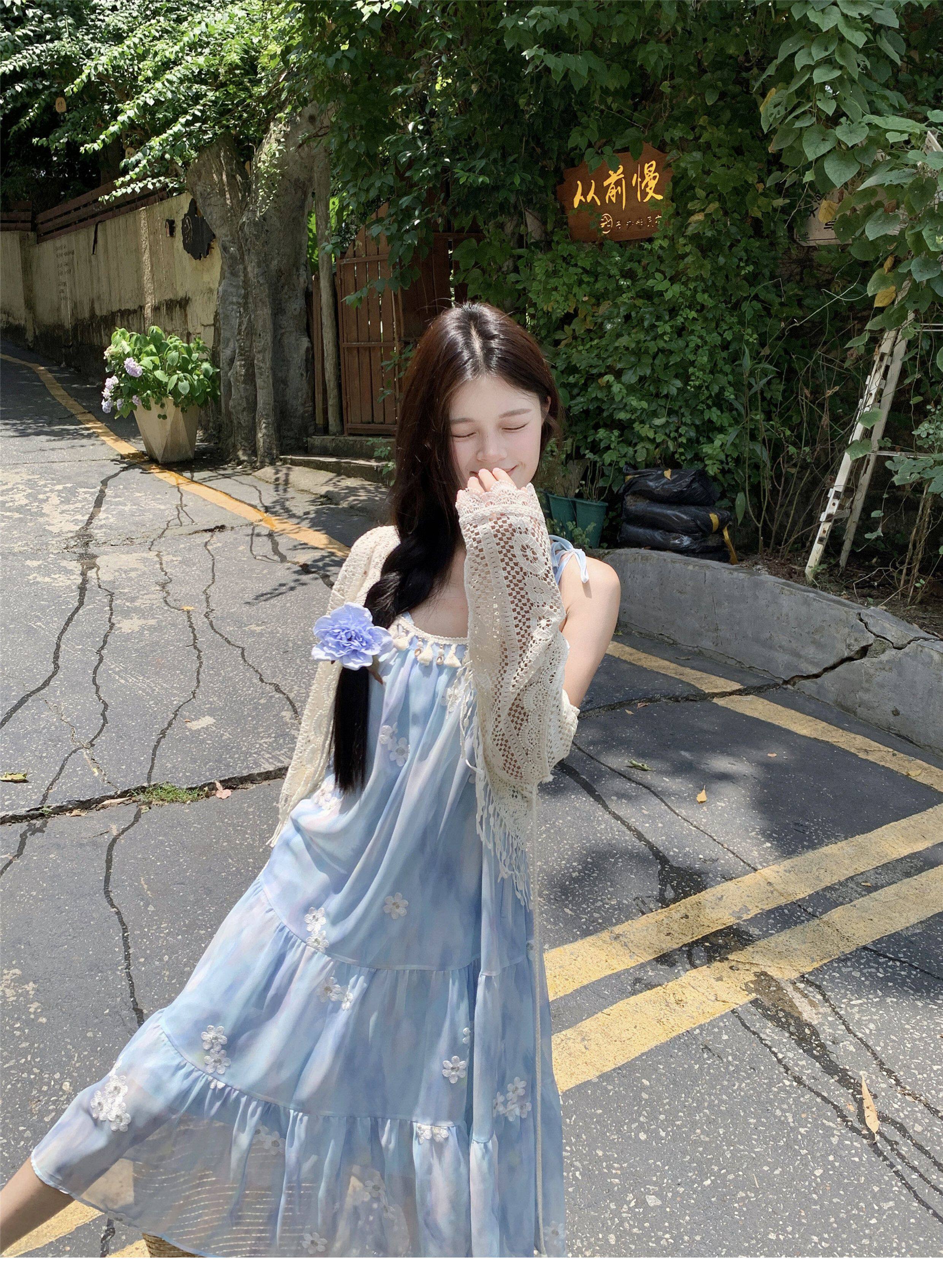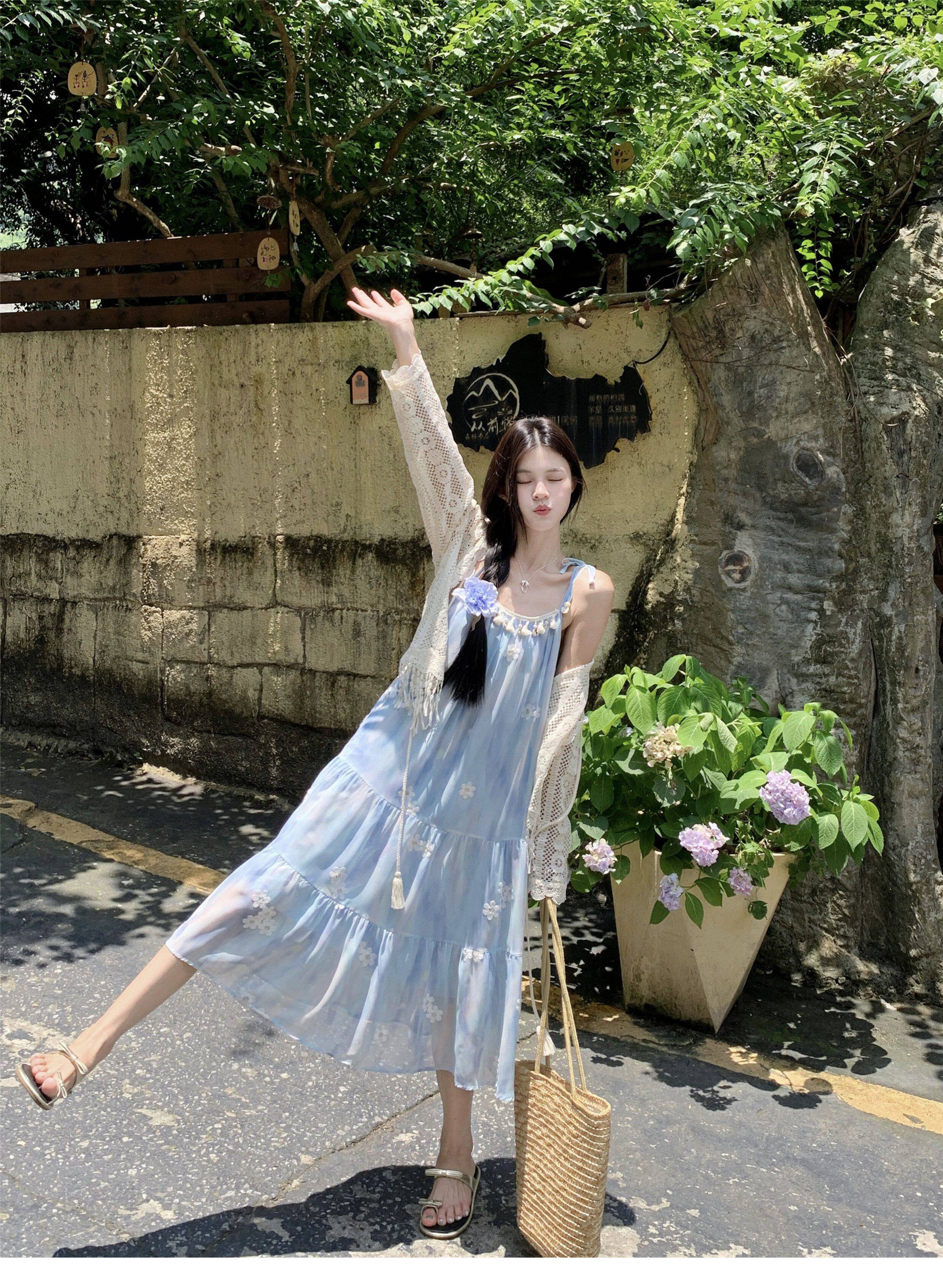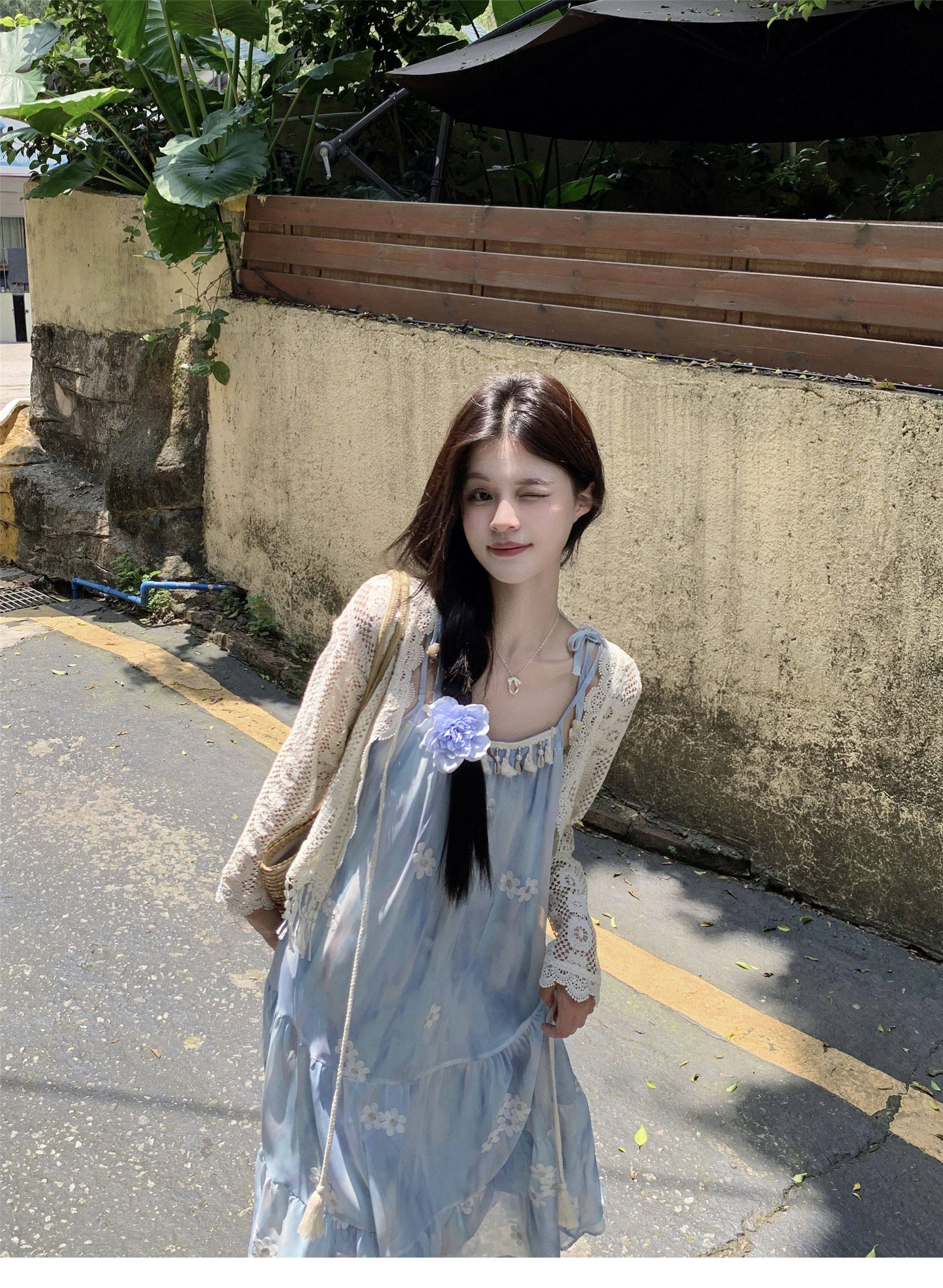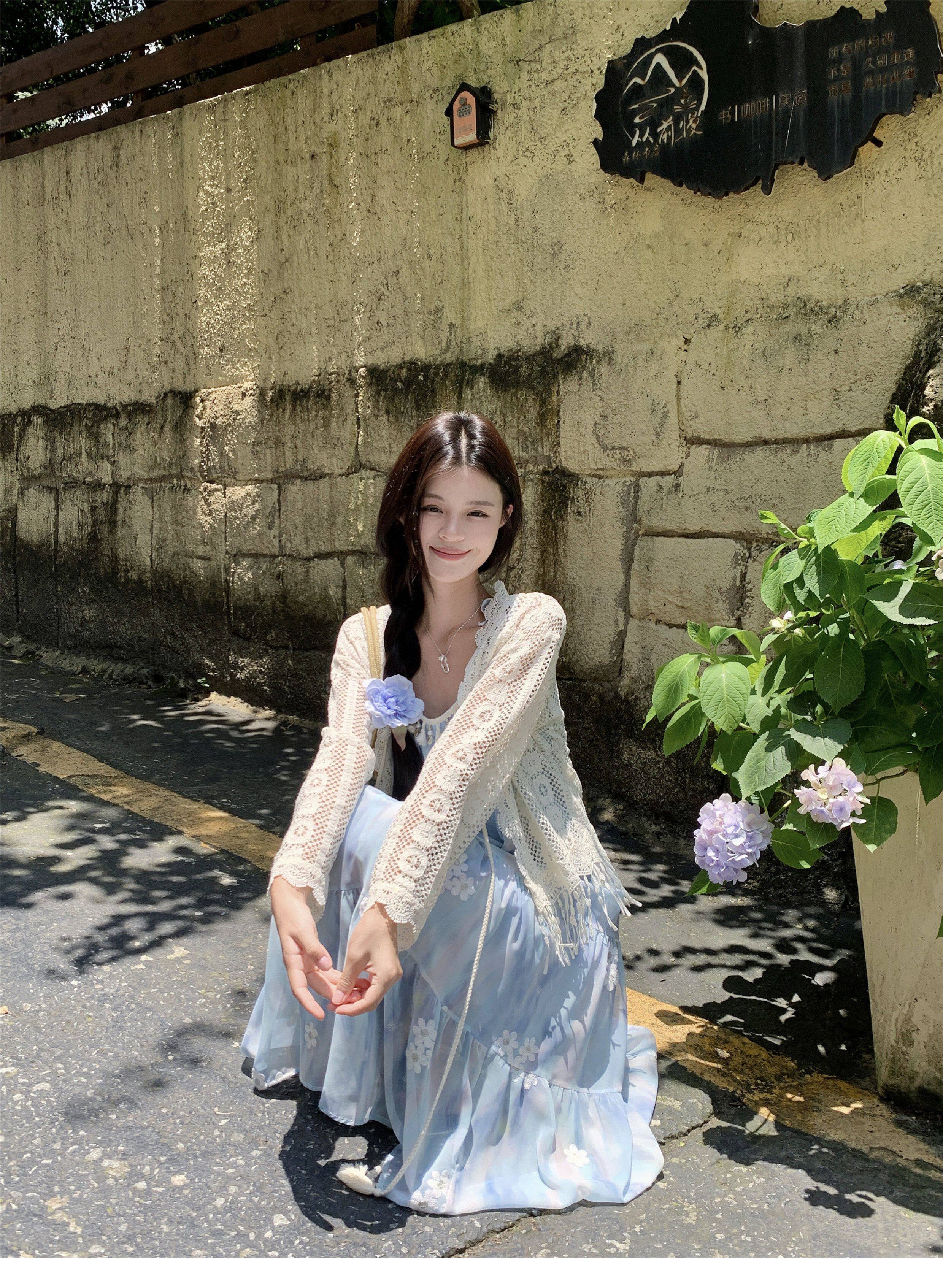今年流行漂亮套裝裙度假風吊帶連衣裙兩件套流蘇鏤空長裙吊帶裙