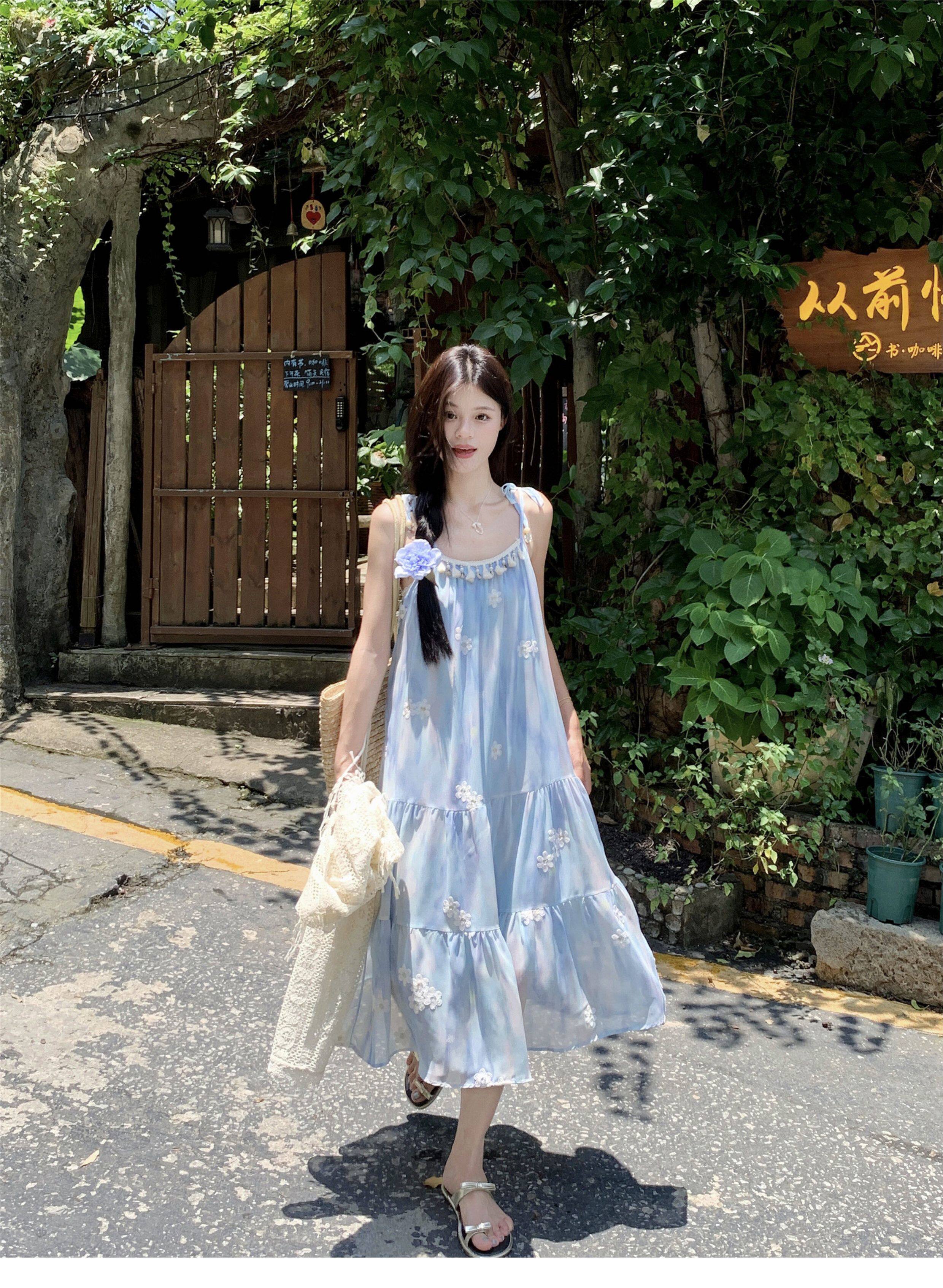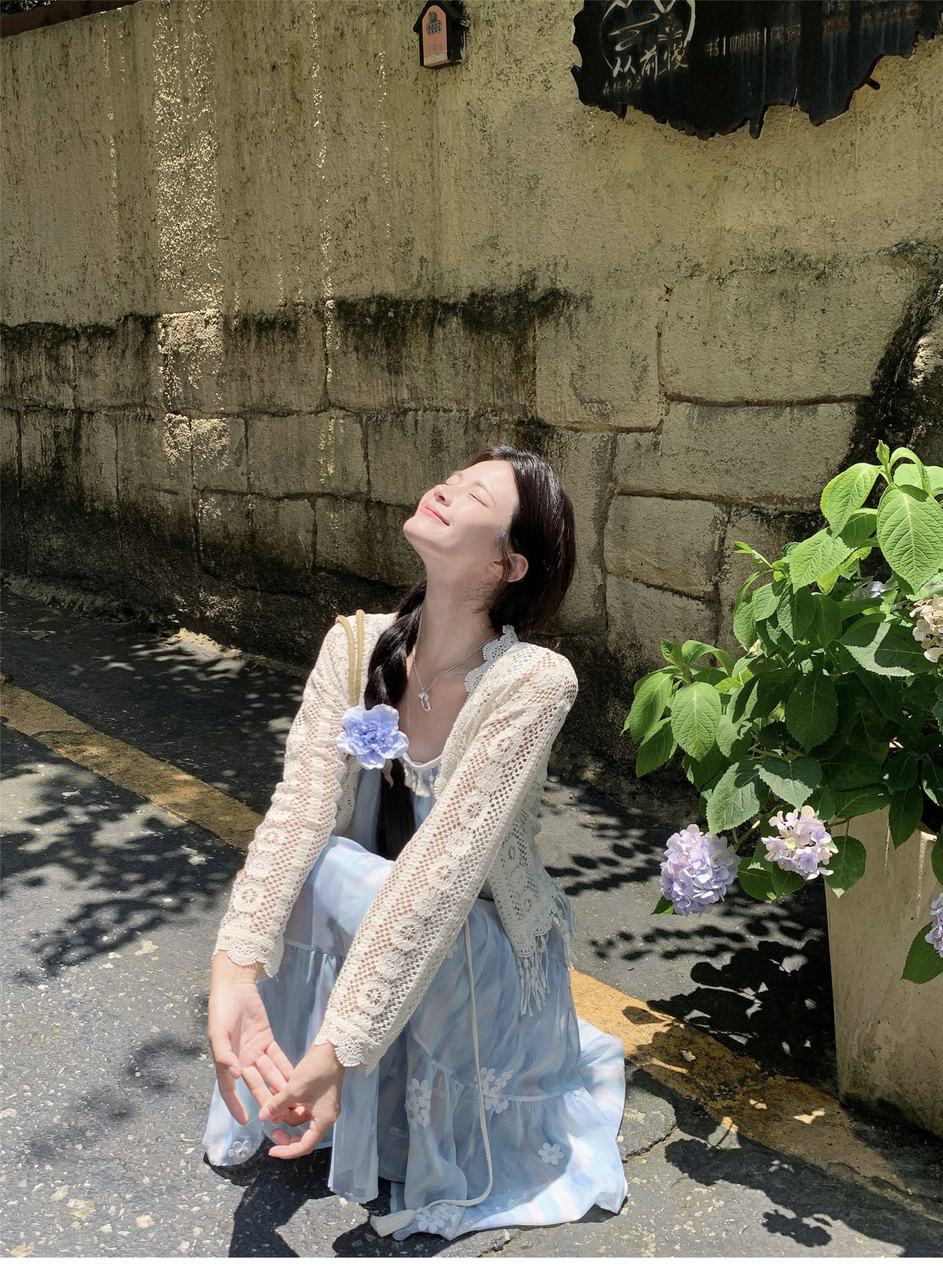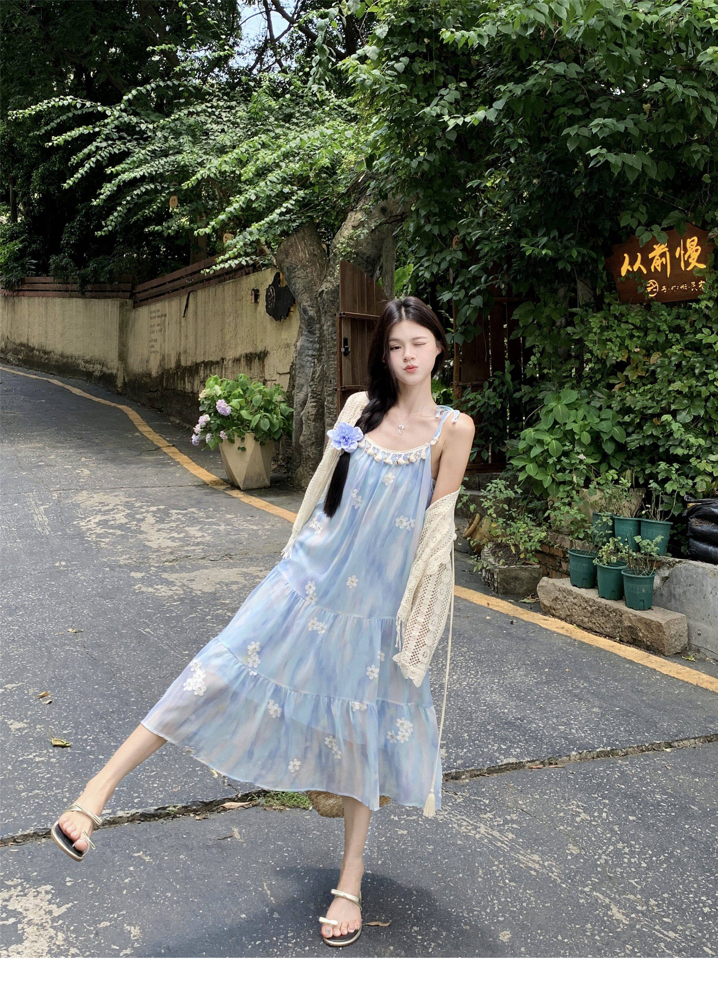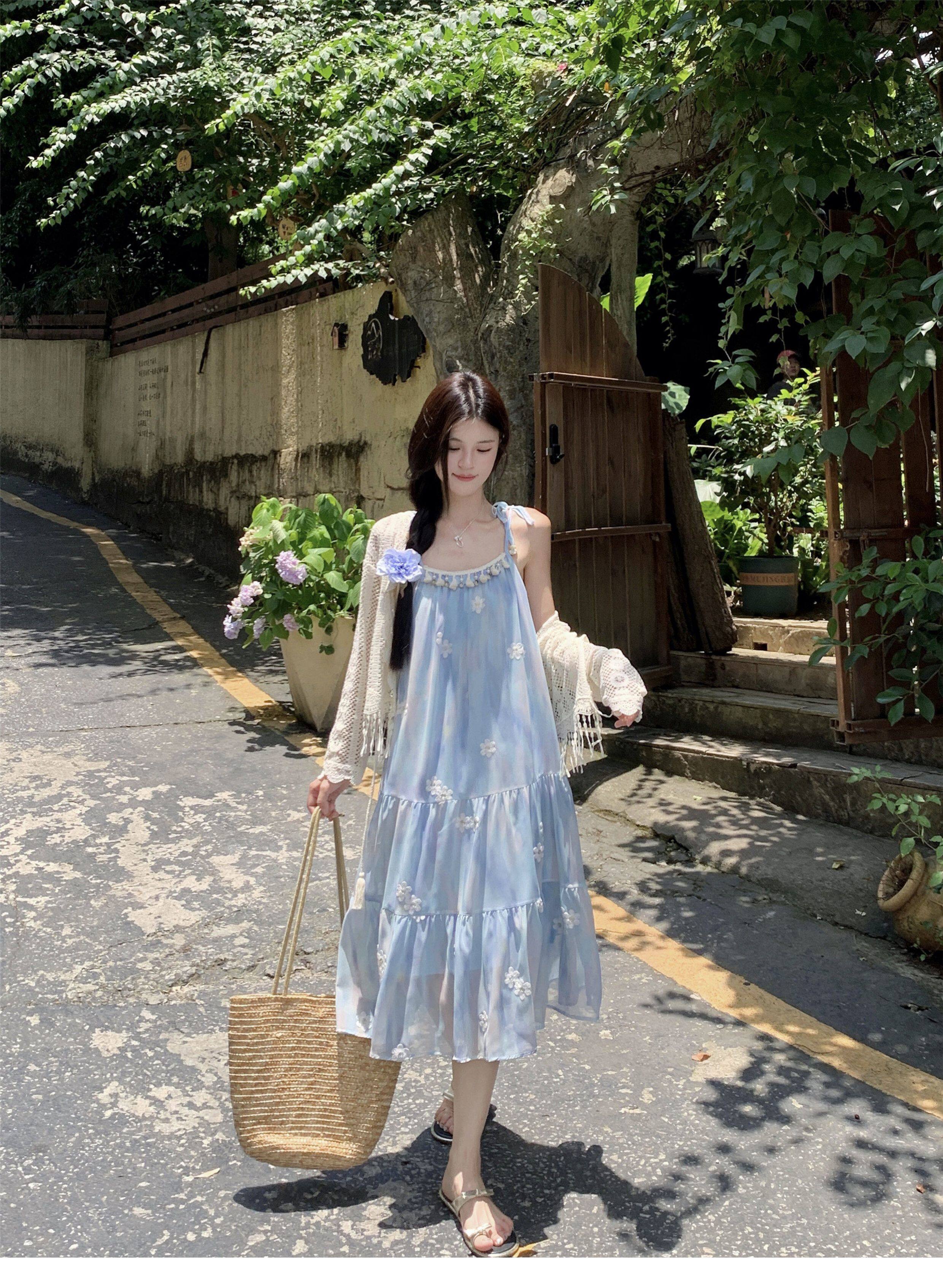 今年流行漂亮套裝裙度假風吊帶連衣裙兩件套流蘇鏤空長裙吊帶裙