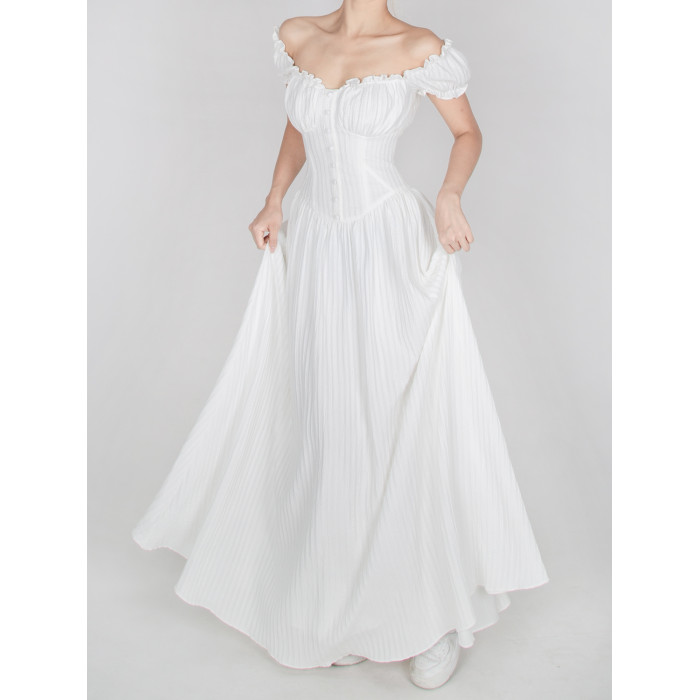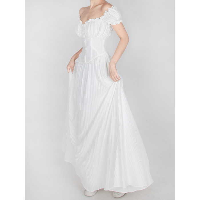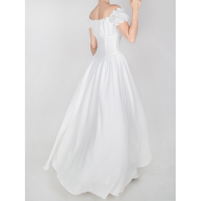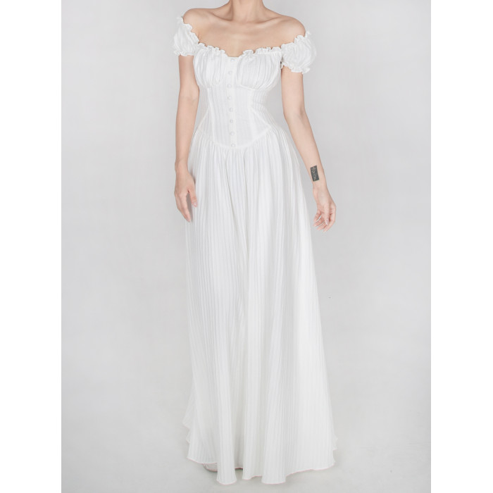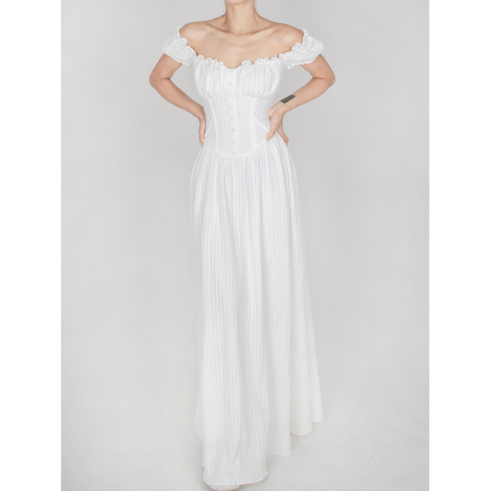 暴雜原創設計 菲萊神廟 女神白色連衣裙海邊埃及度假風一字領長裙