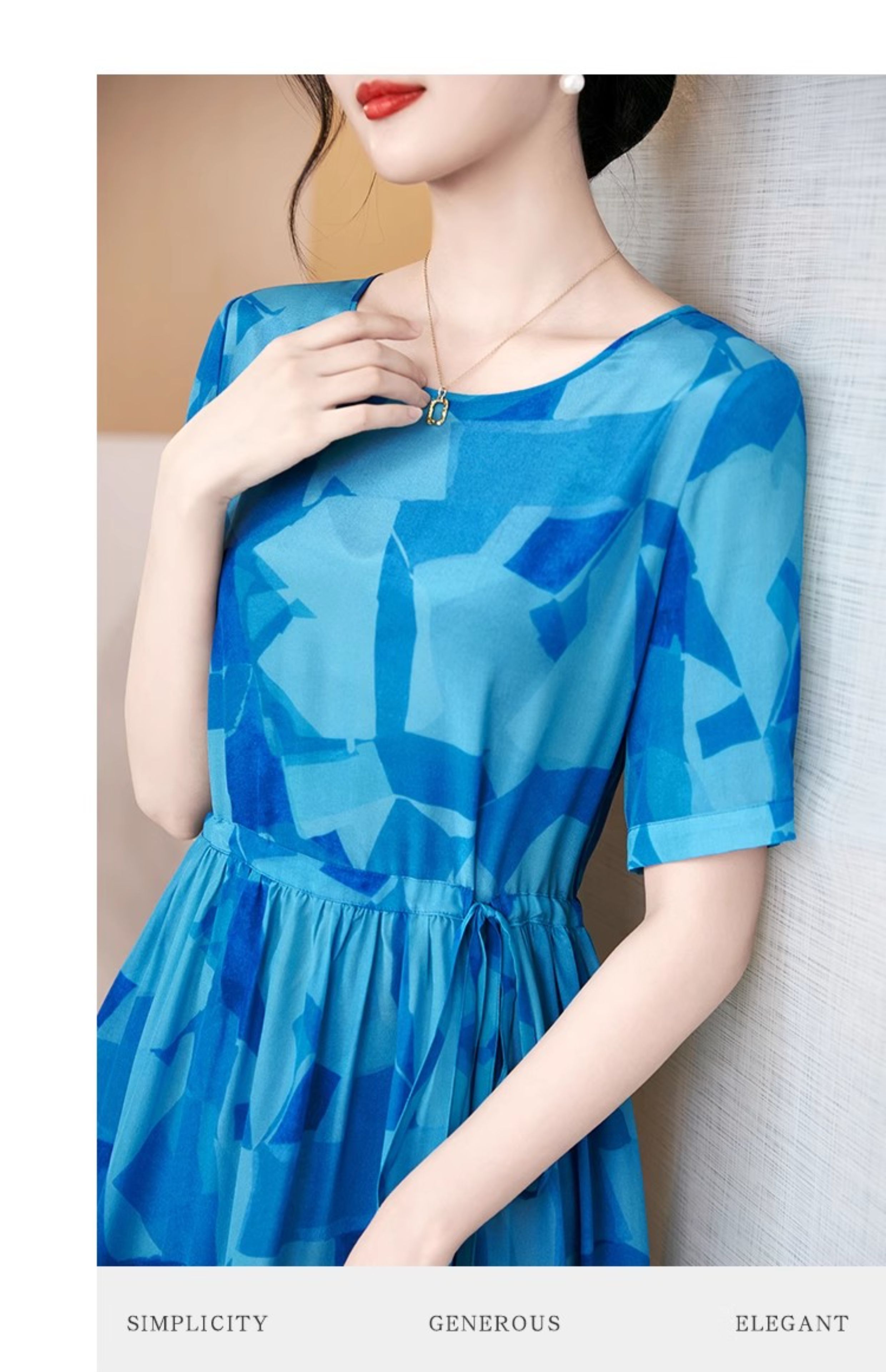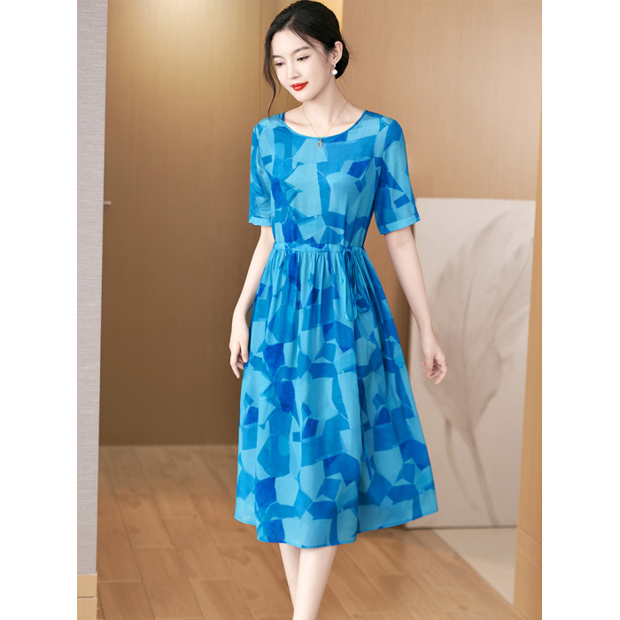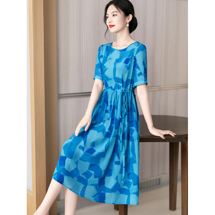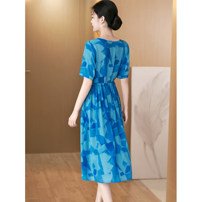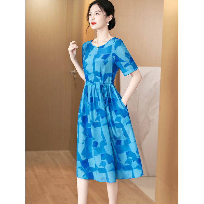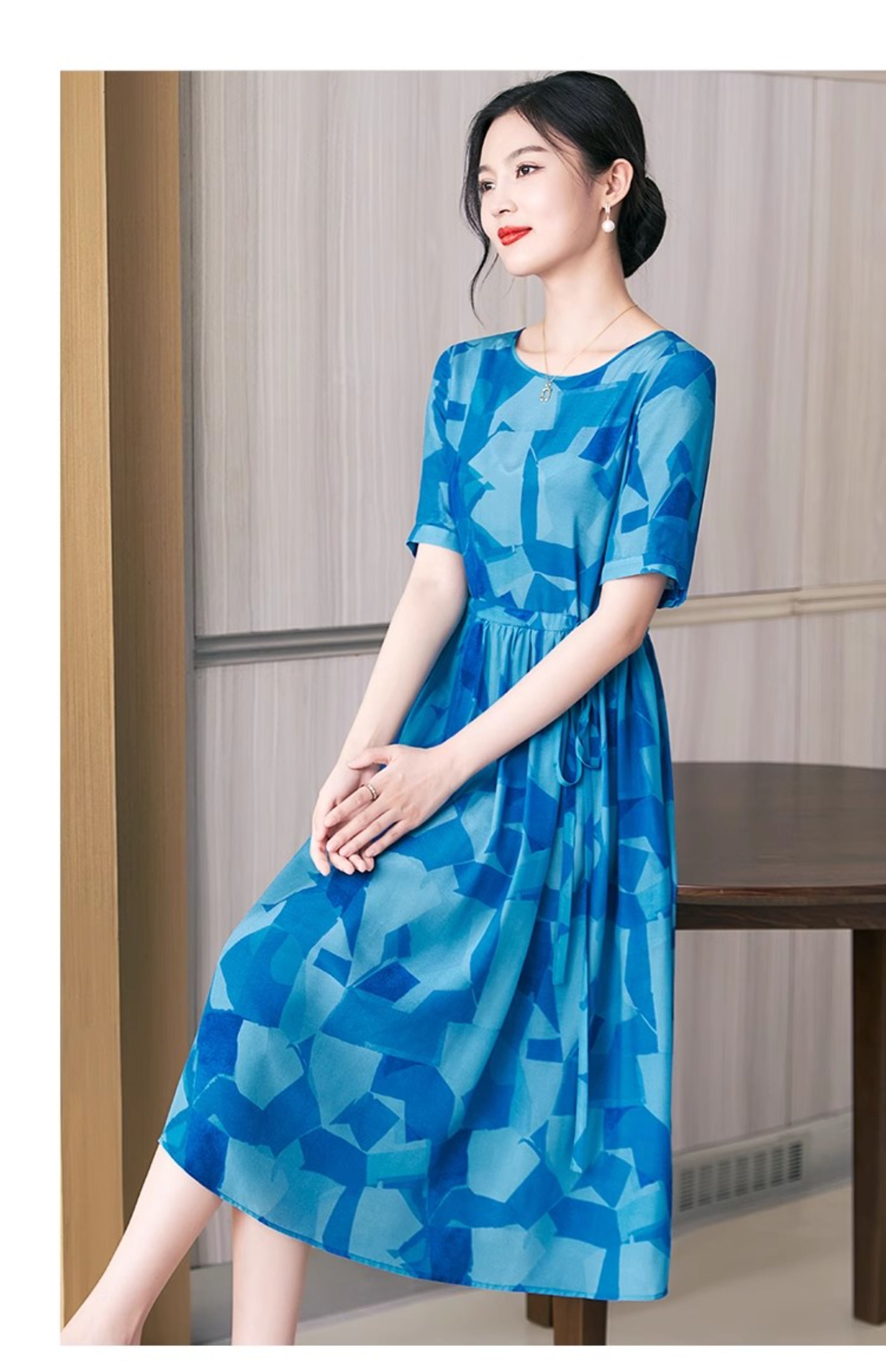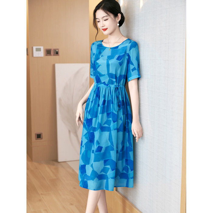真絲連衣裙女夏季2025新款連身裙法式氣質獨特別致桑蠶絲印花裙子