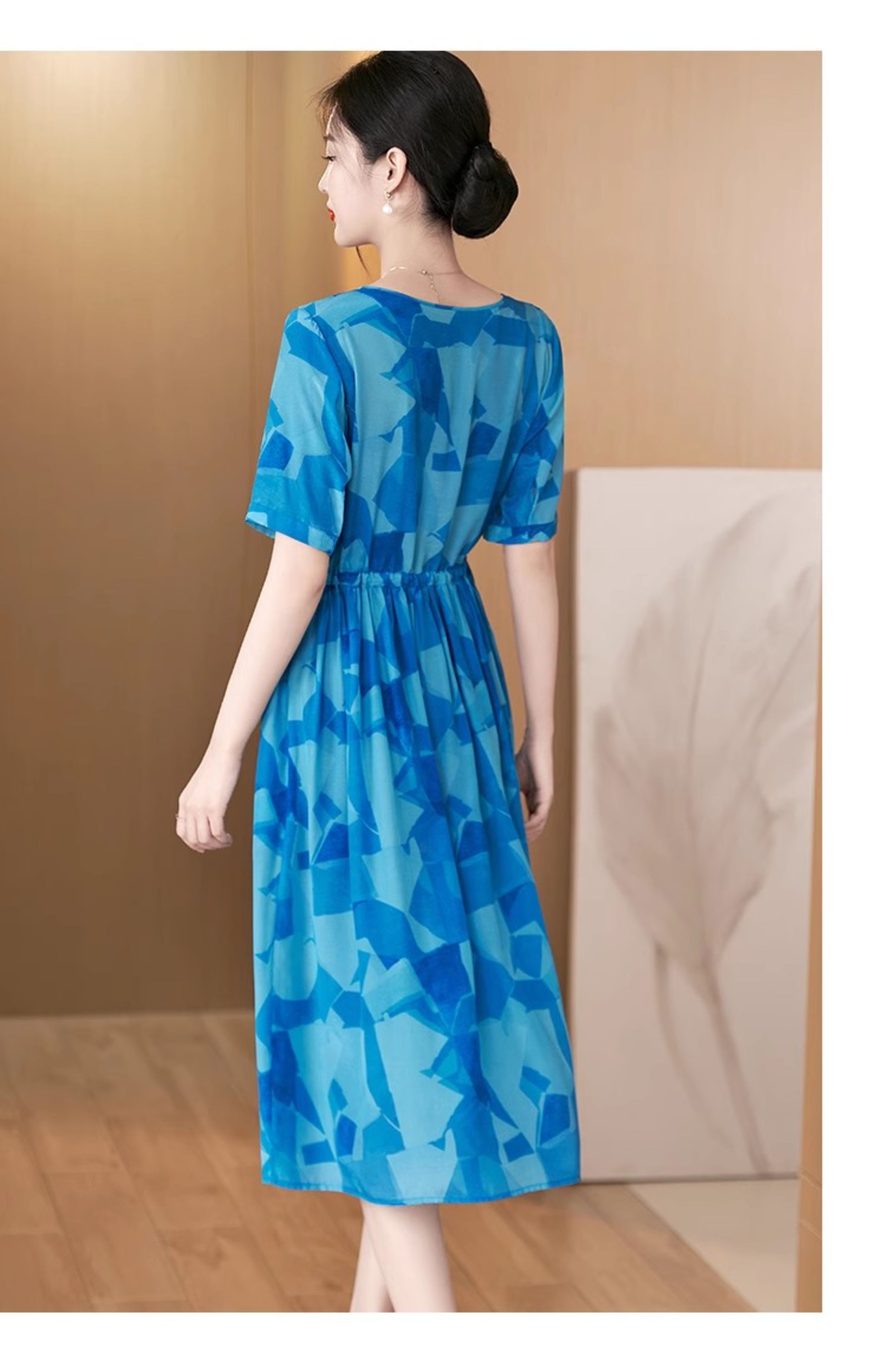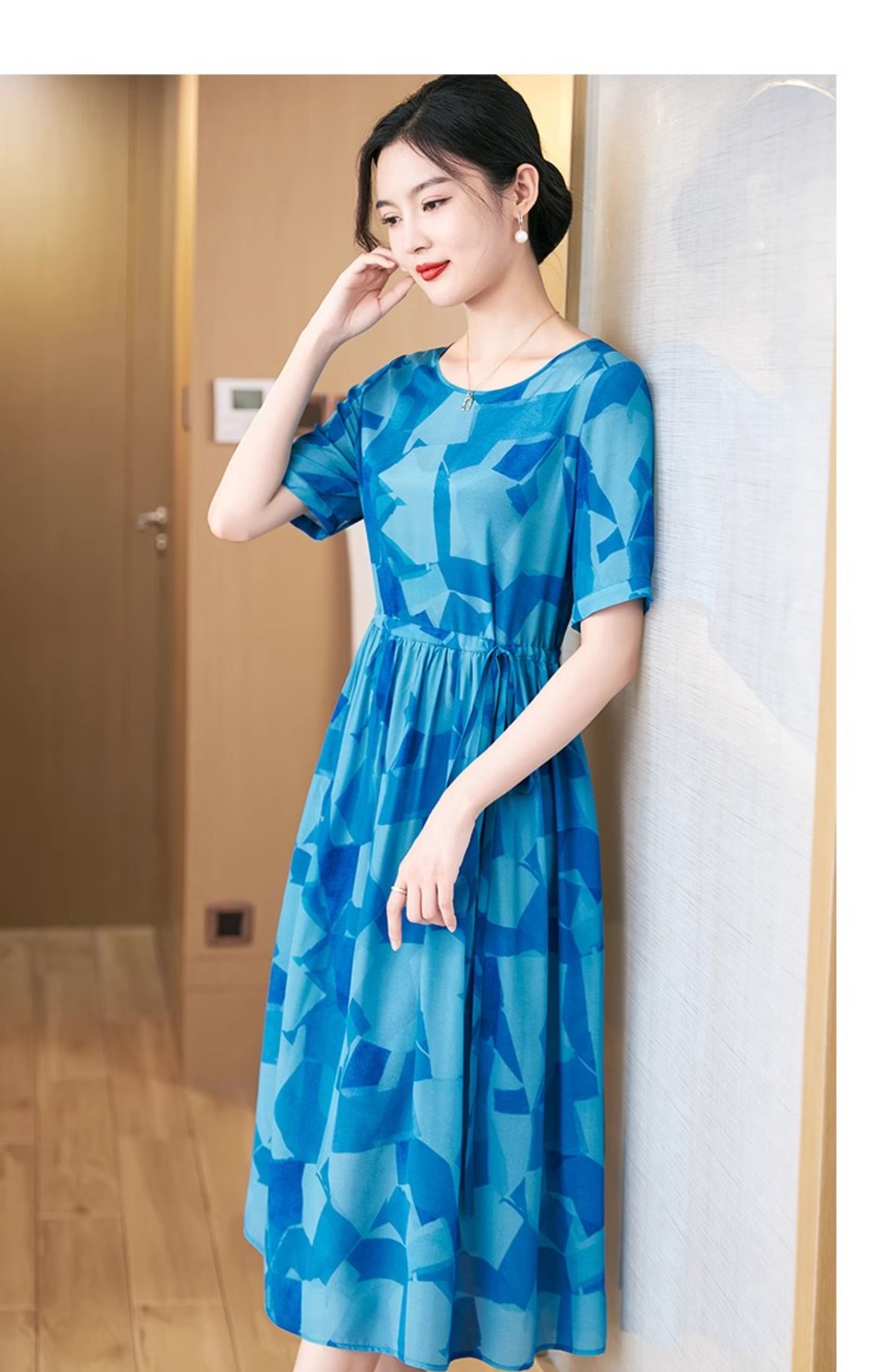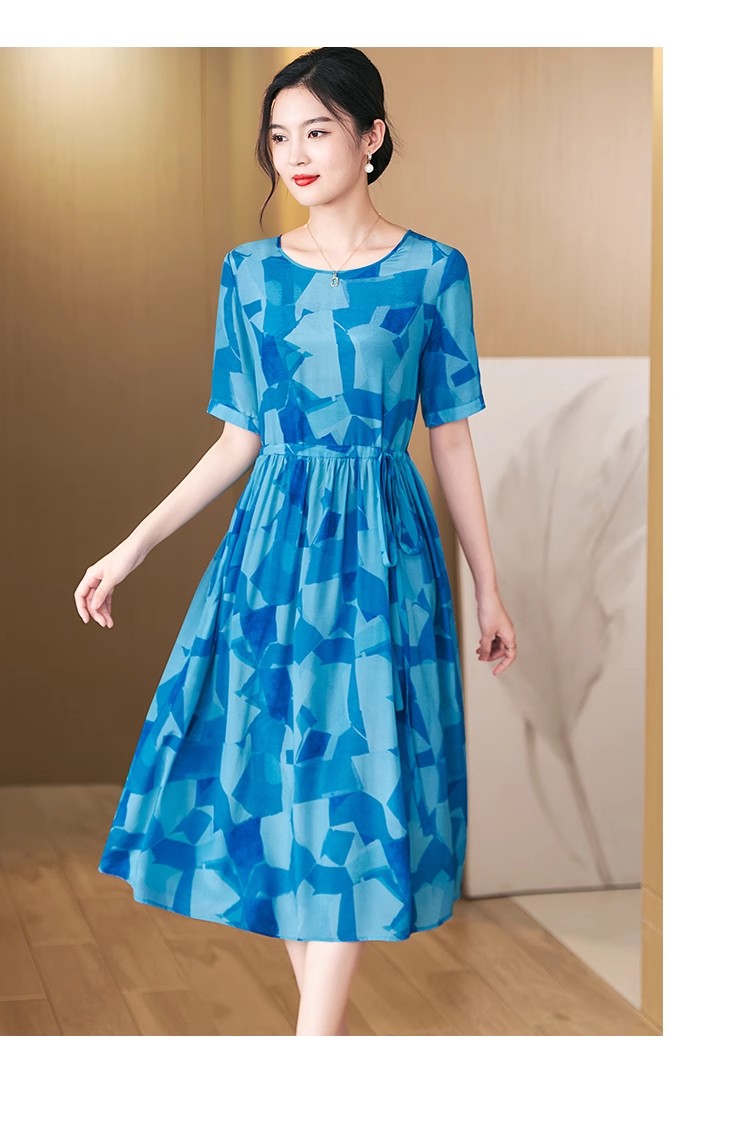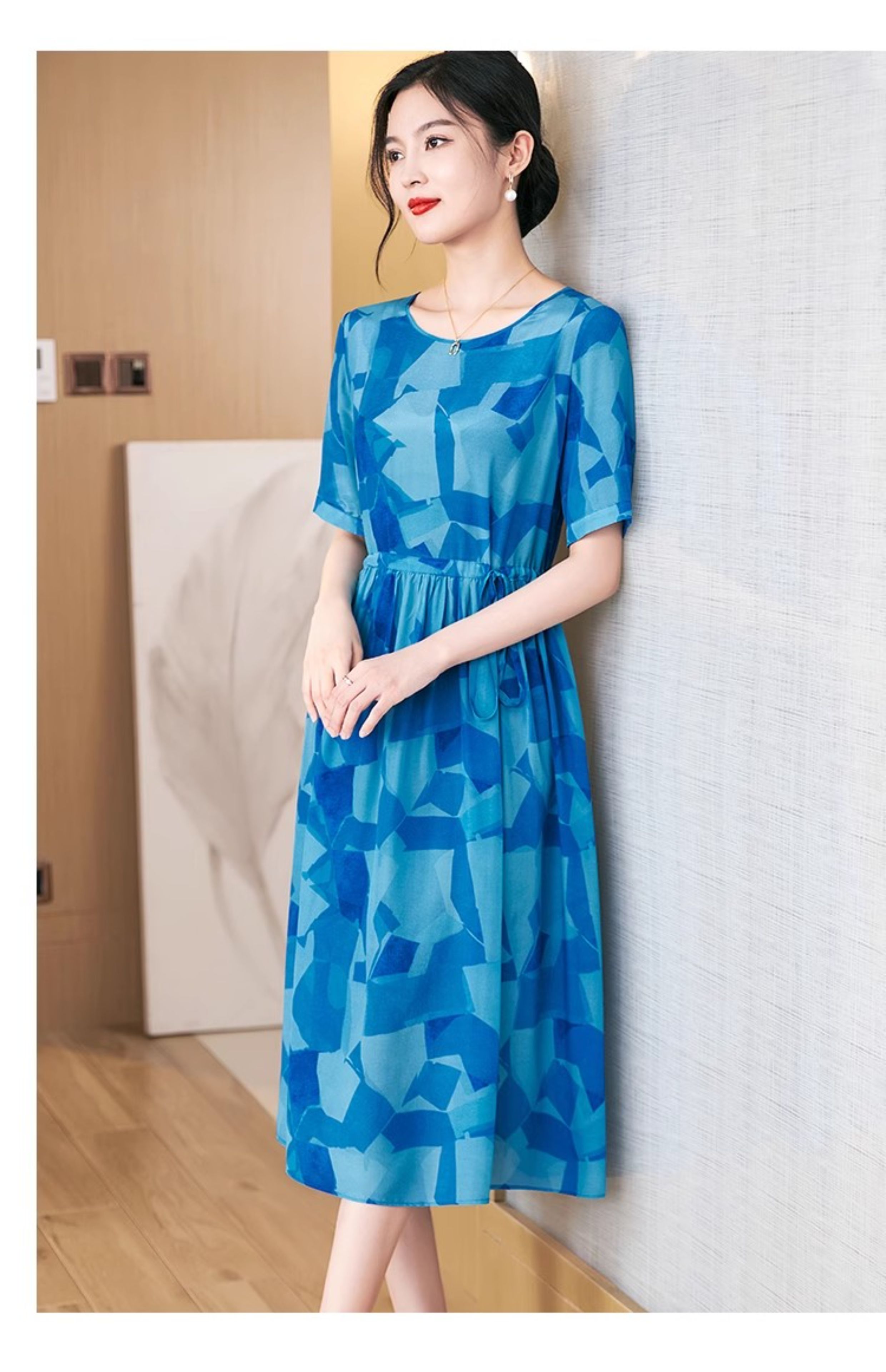 真絲連衣裙女夏季2025新款連身裙法式氣質獨特別致桑蠶絲印花裙子