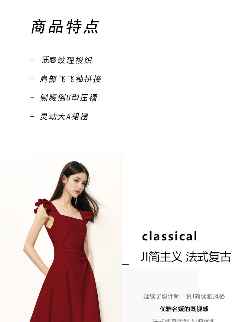 紅色小飛袖吊帶連衣裙女法式訂婚禮服敬酒掐腰裙結婚穿搭長裙春夏