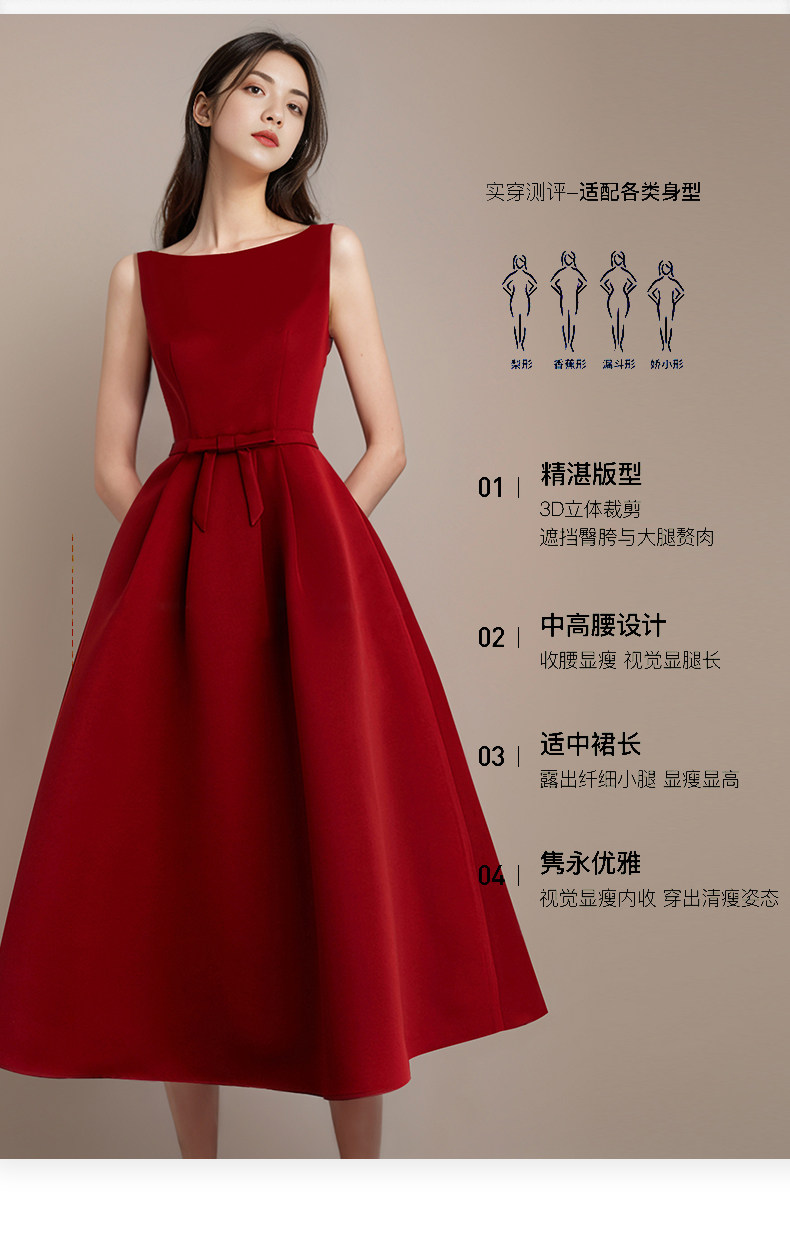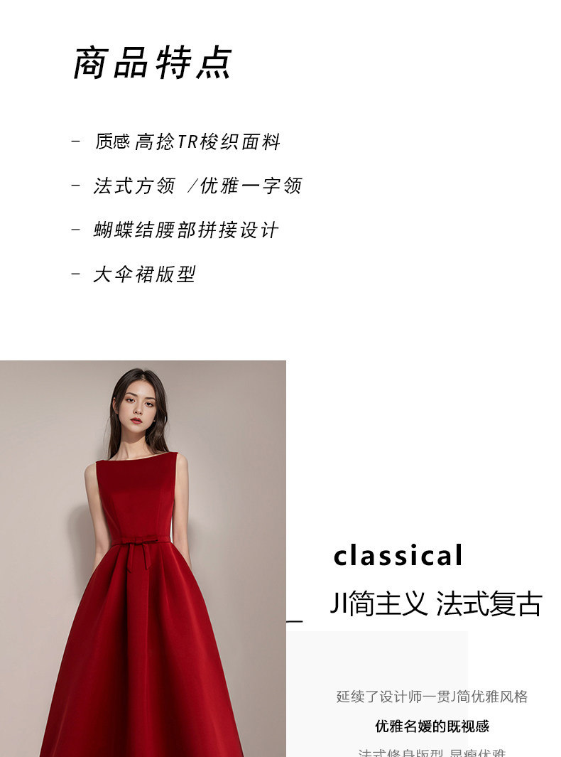 紅色連衣裙女法式訂婚敬酒禮服公主蓬蓬裙收腰氣質長裙高級感穿搭