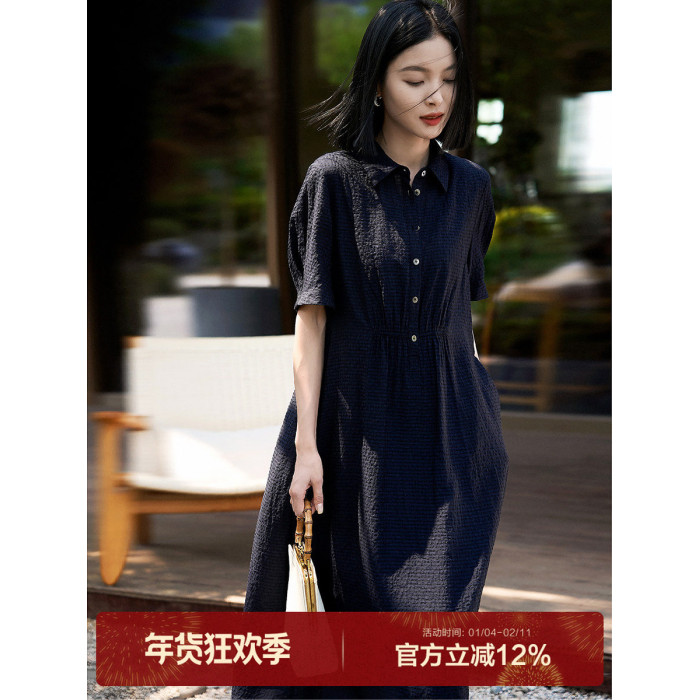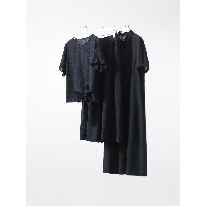丨霧藍詩牋-雲隱系列丨方格提花透氣天絲亞麻連衣裙小衫半身裙