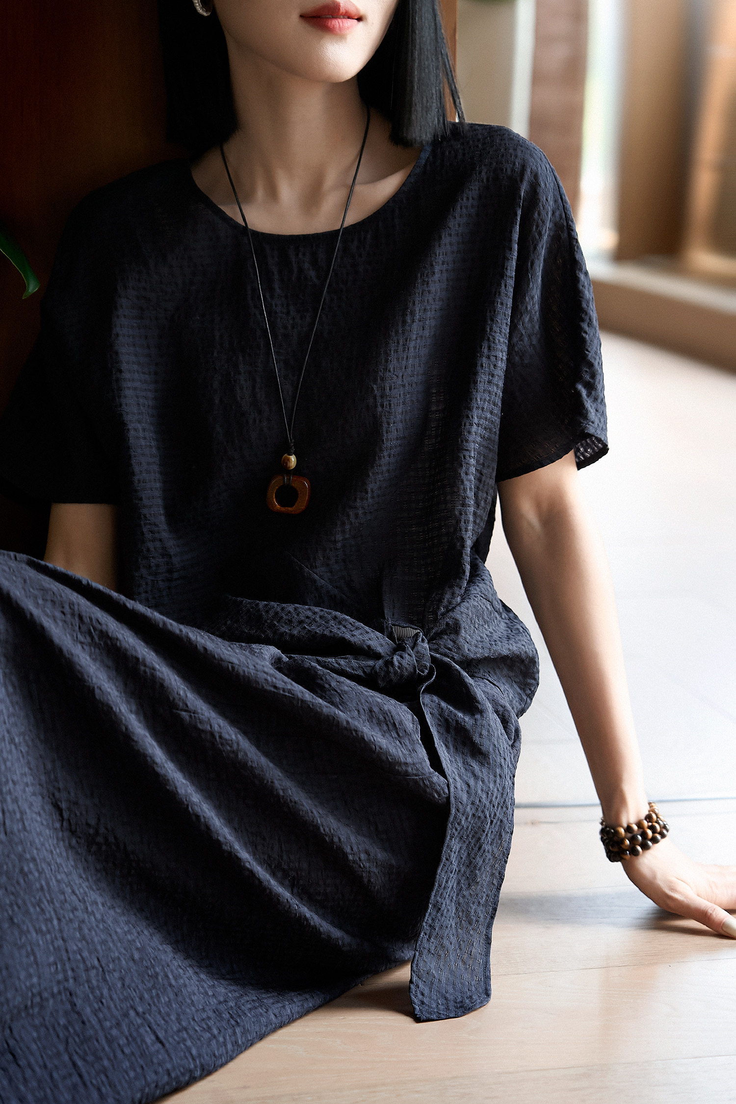 亞麻萊賽爾料的成衣飄逸舒適,上身親膚透氣