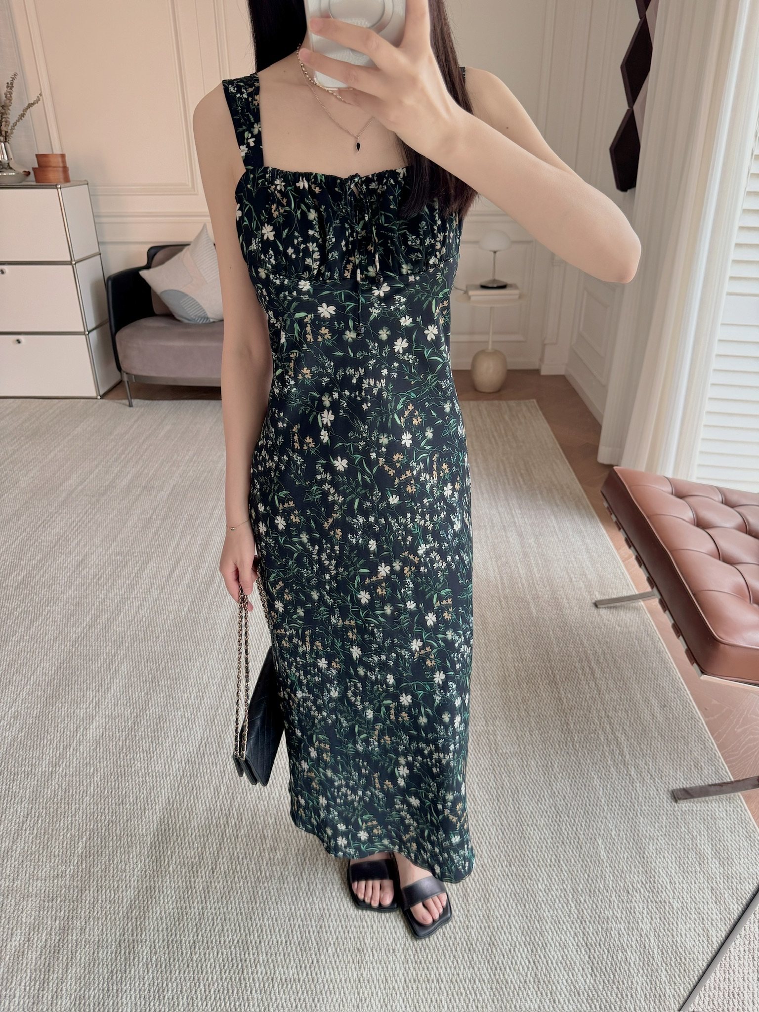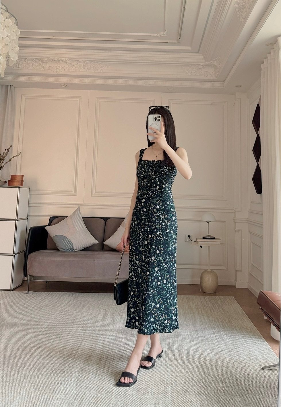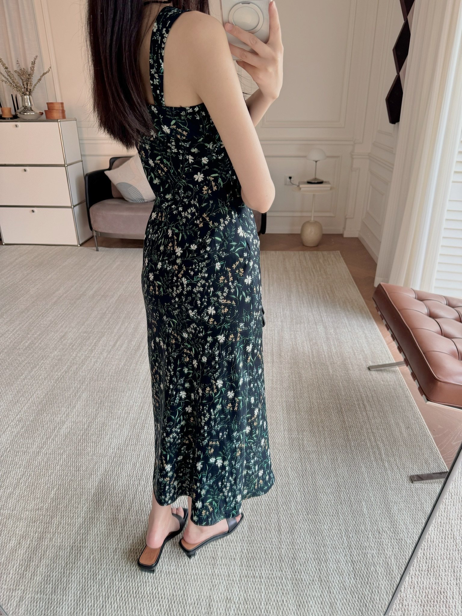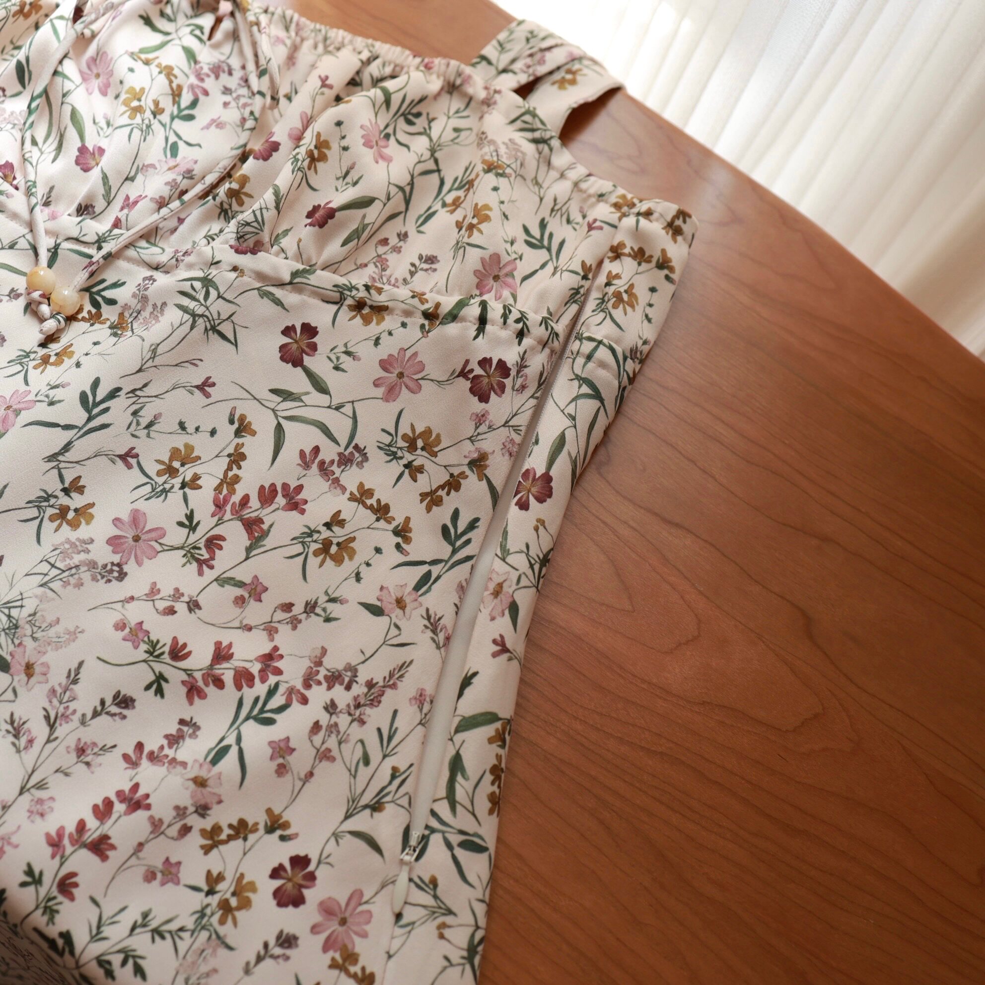 跳轉新店拍南法少女清新手繪碎花吊帶方領連衣裙+高腰A字魚尾半裙