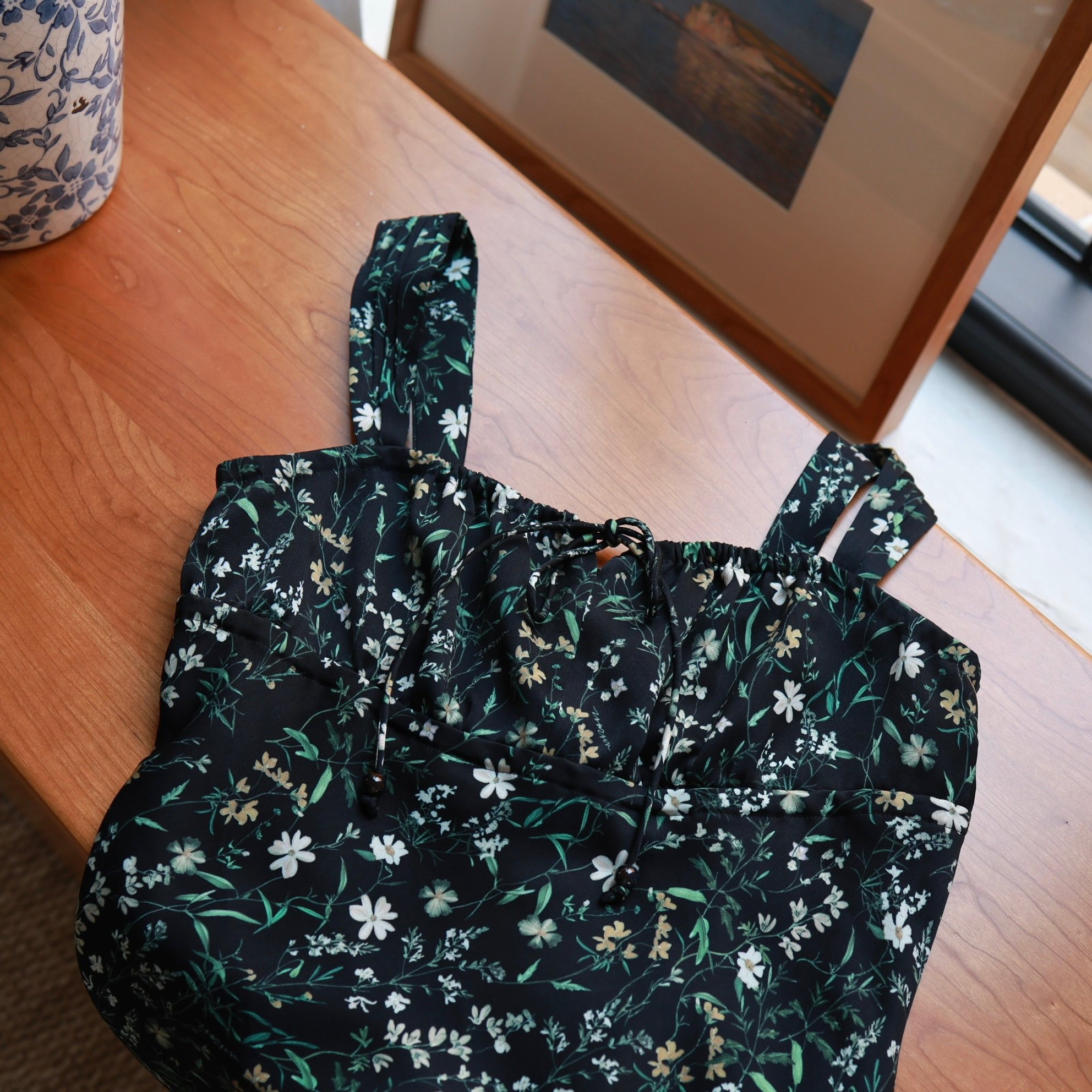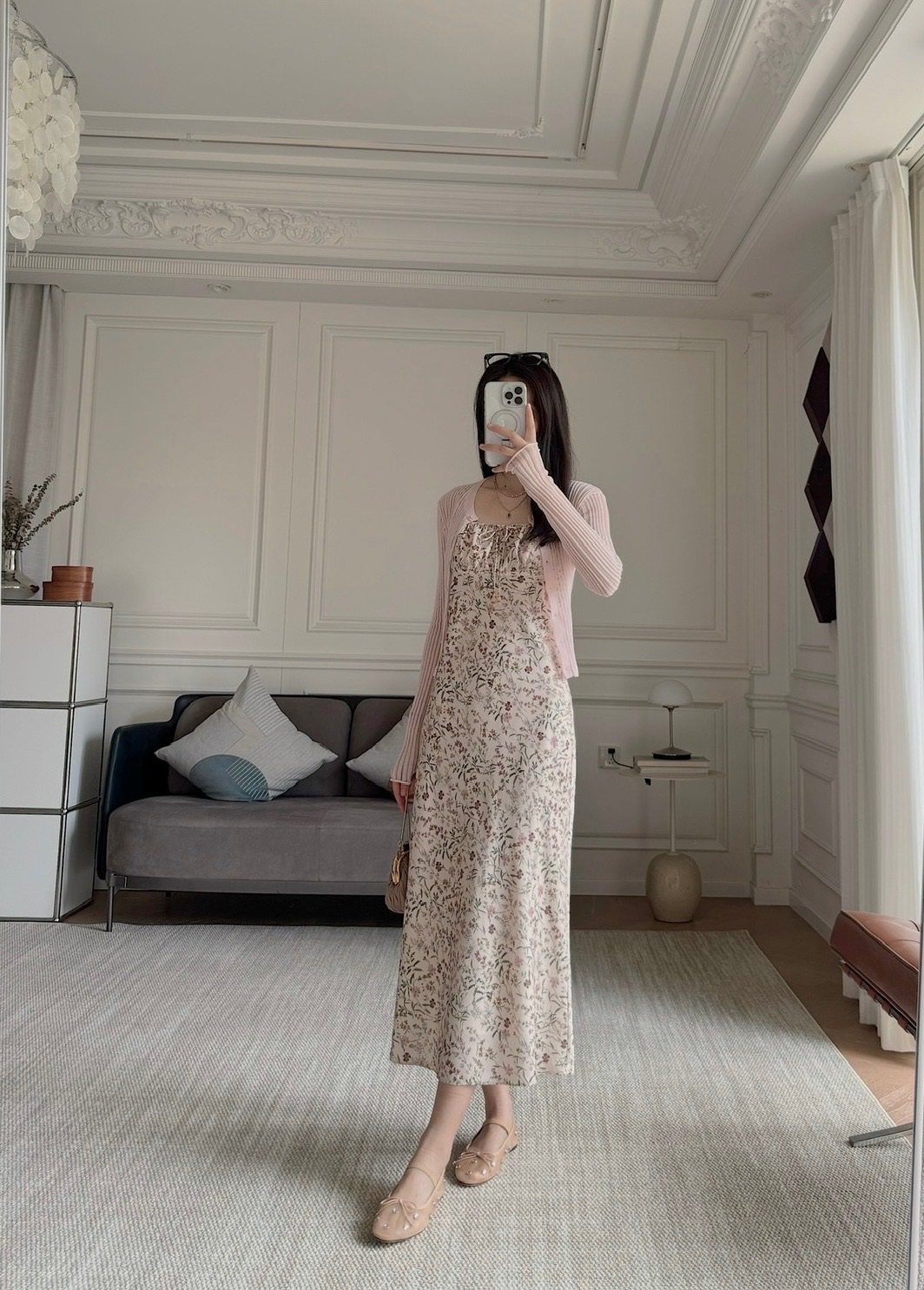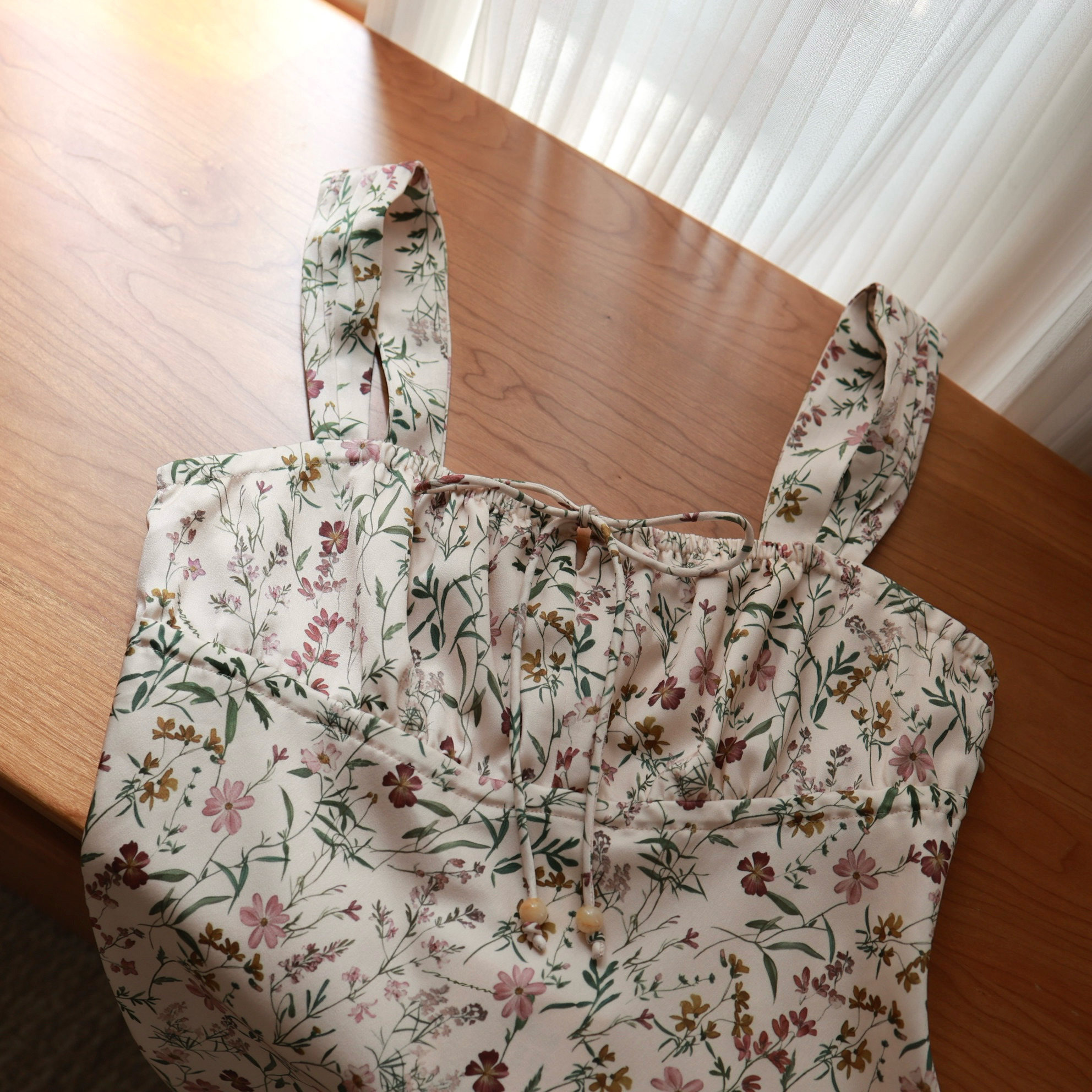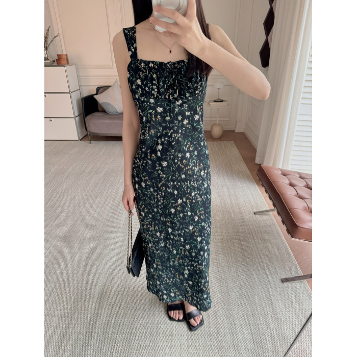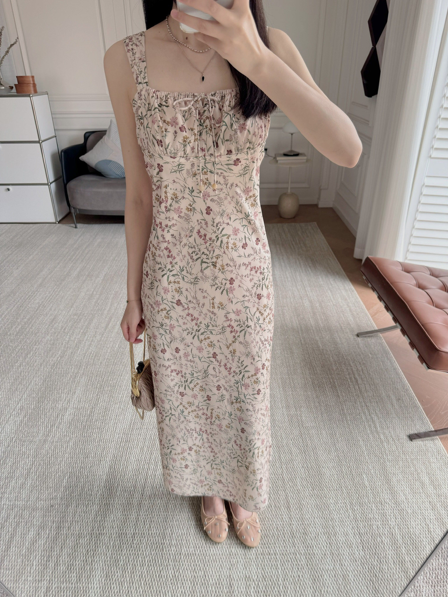 跳轉新店拍南法少女清新手繪碎花吊帶方領連衣裙+高腰A字魚尾半裙