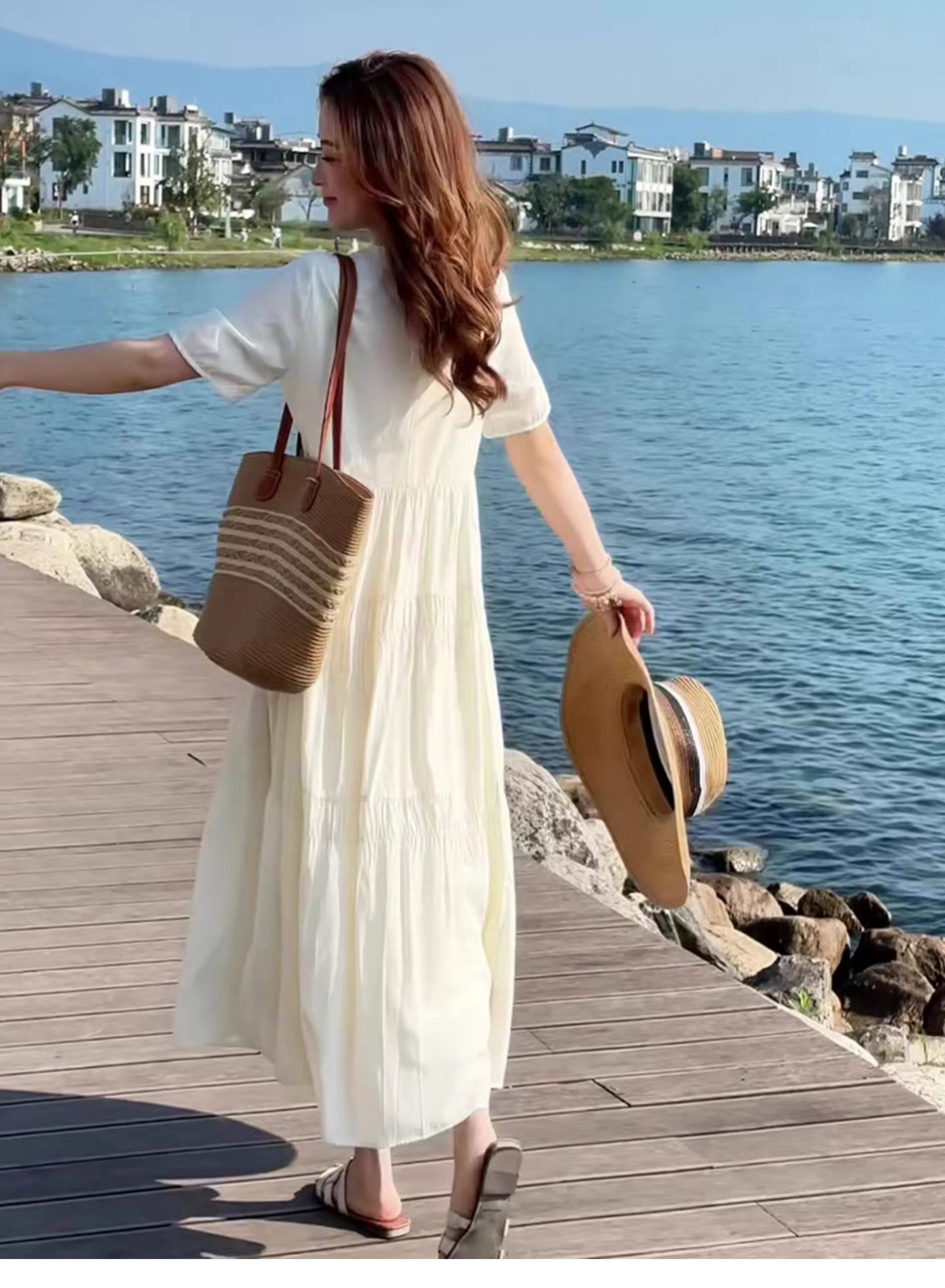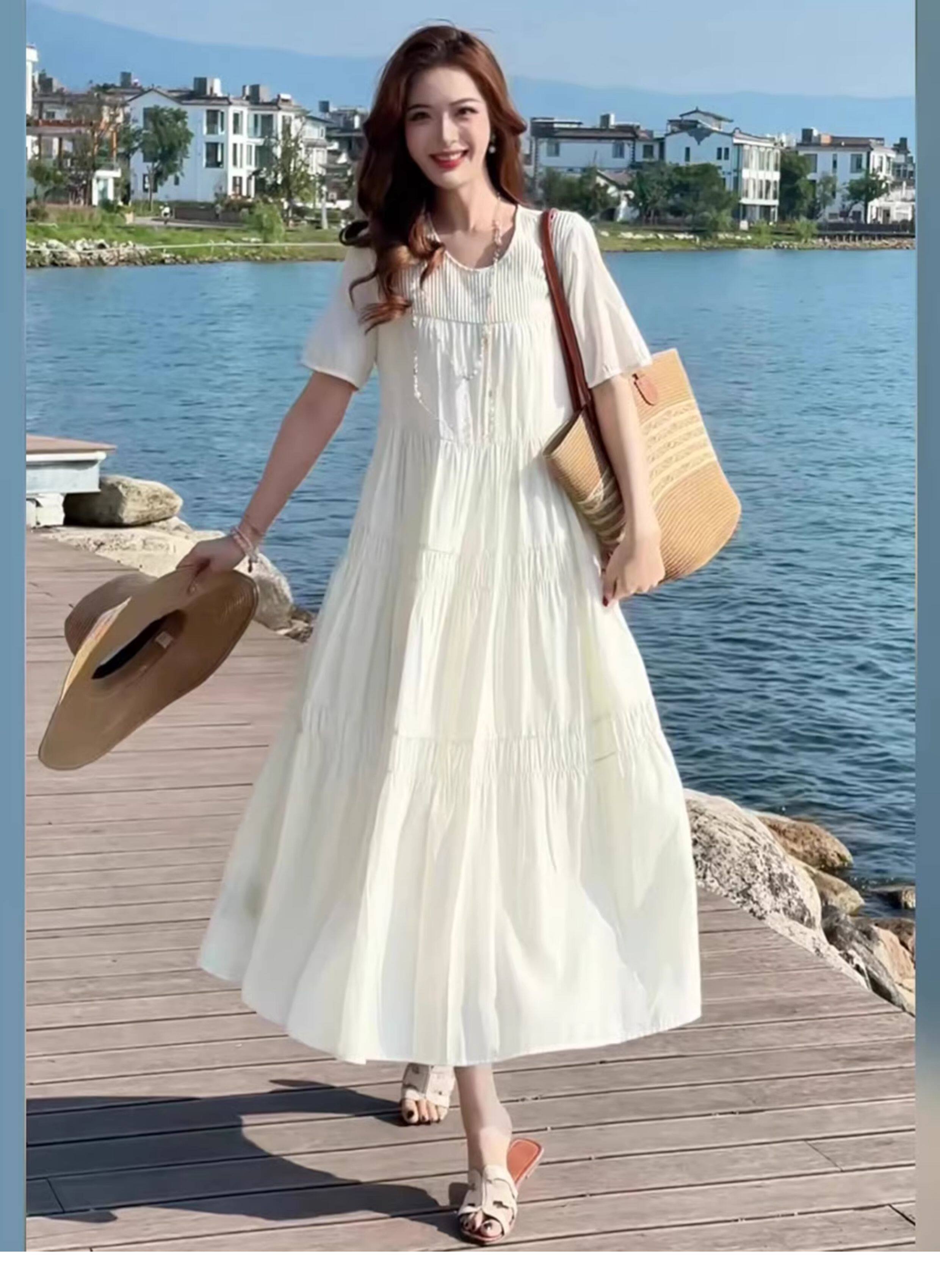 2026新款今年流行爆款夏天巨好看的法式氣質海邊度假白色連衣裙女