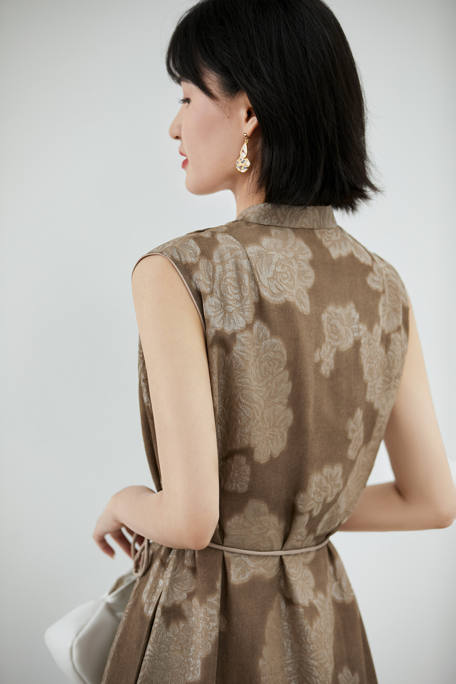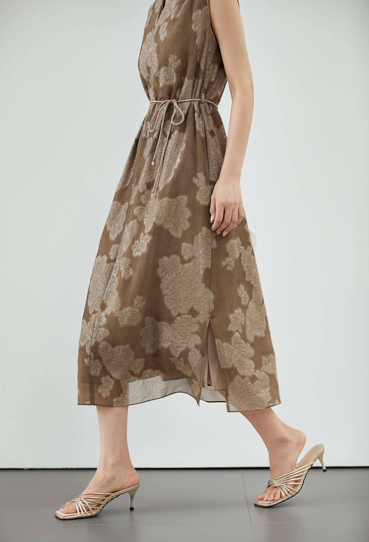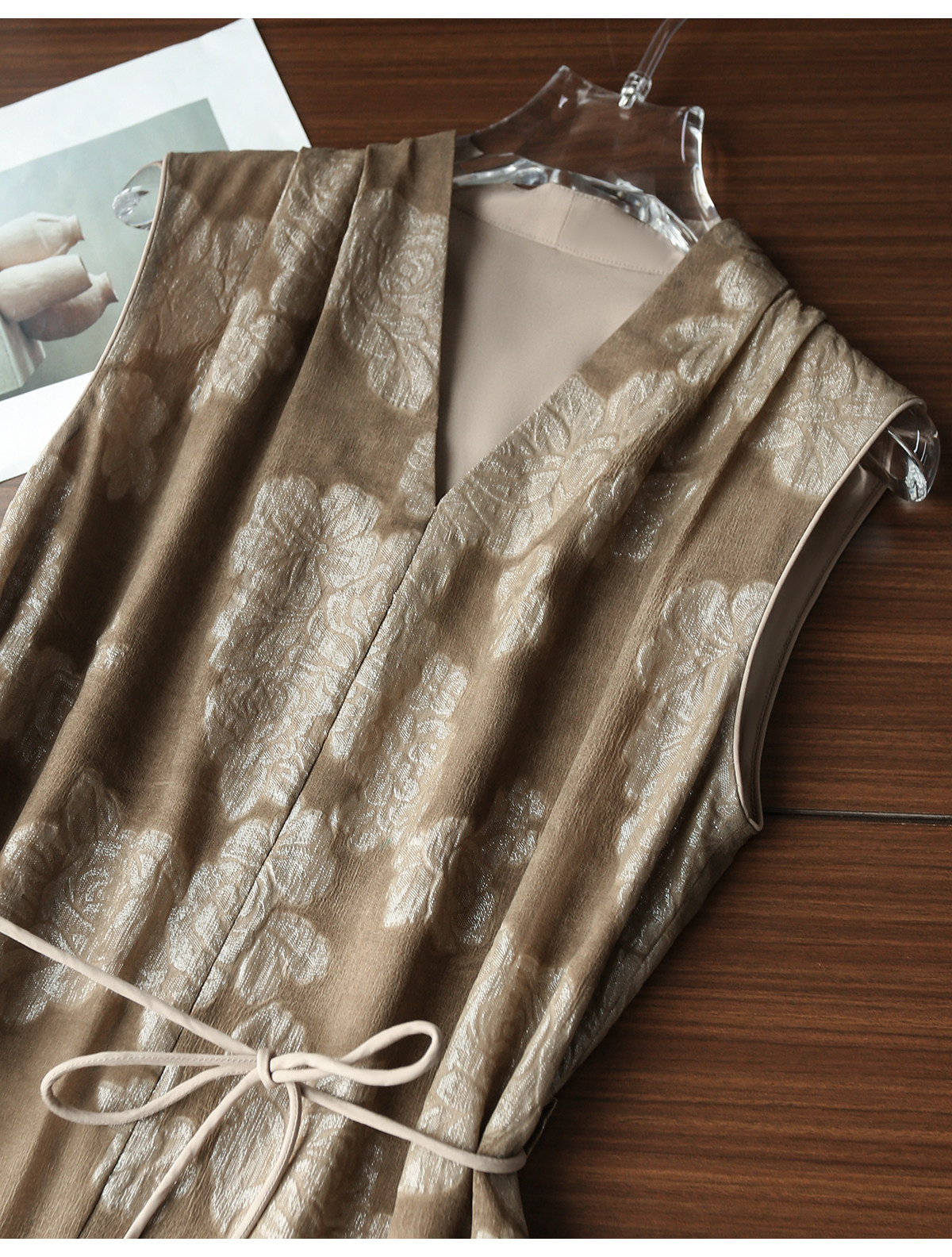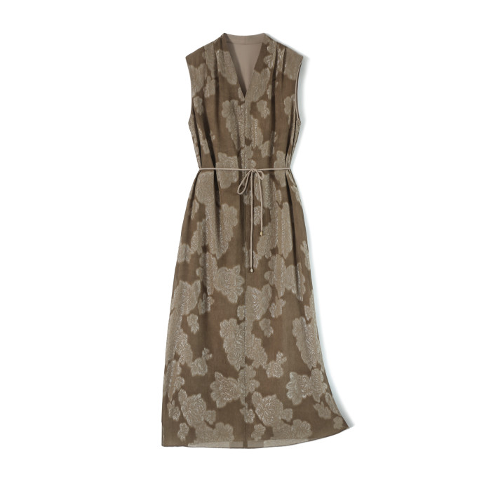 【秋香茶語 妙筆生花】真絲炒色提花連衣裙新中式顯瘦無袖裙子の