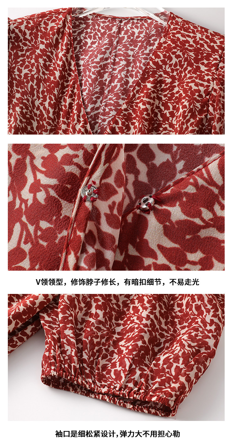 apipedream如一夢 V領荷葉邊圍裹式桑蠶絲茶歇連衣裙/午後茶敘