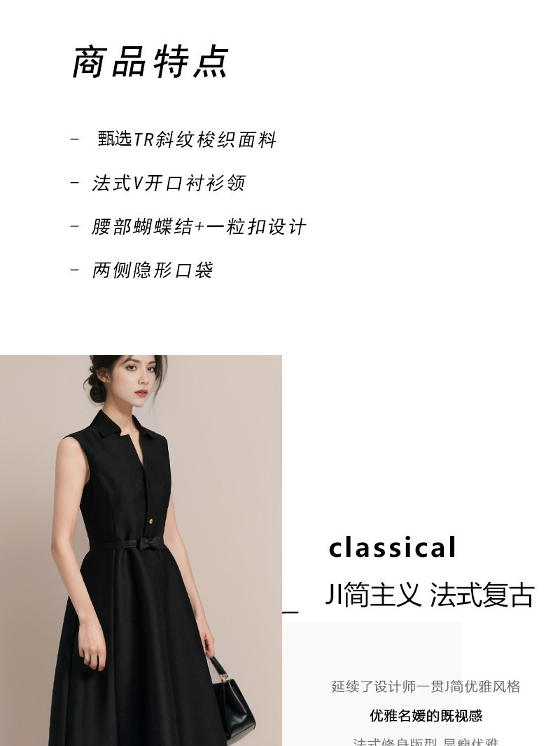 赫本風連衣裙女夏法式小黑裙禮服重要場合氣質襯衫裙高知分子長裙