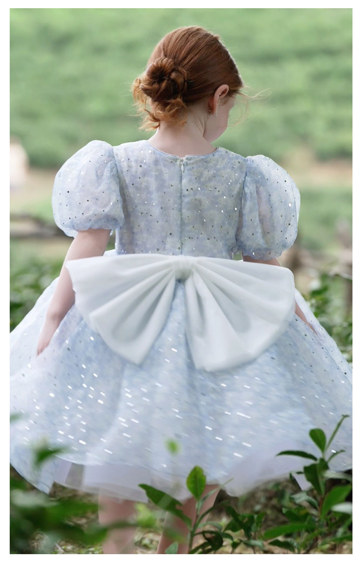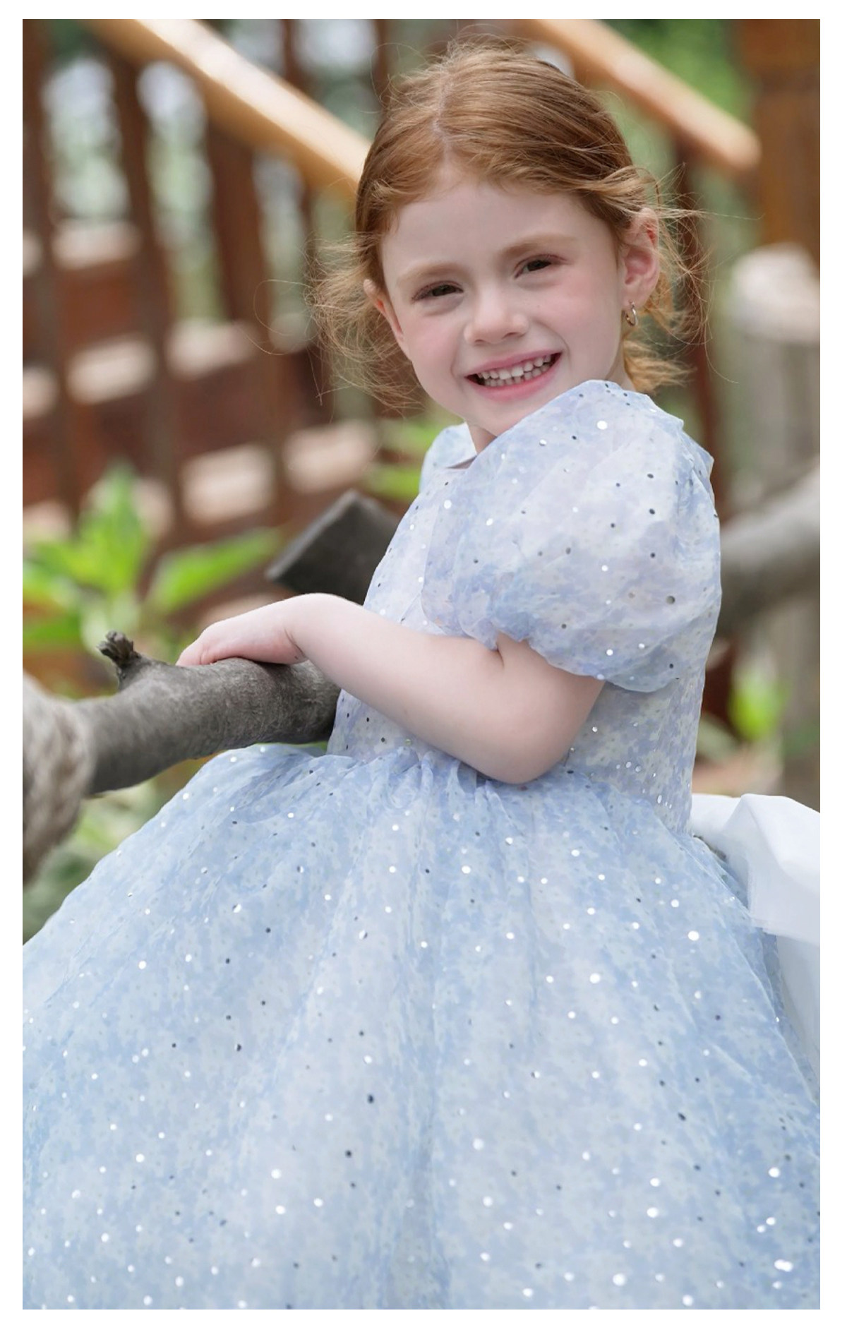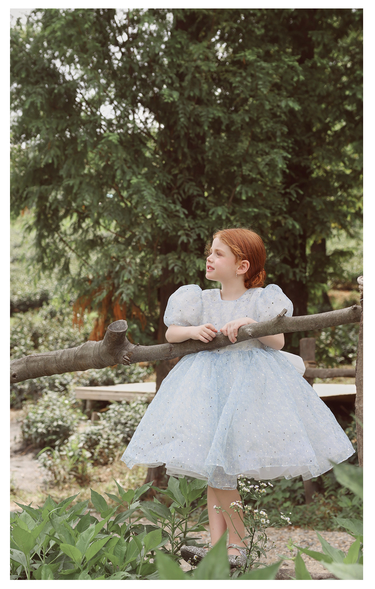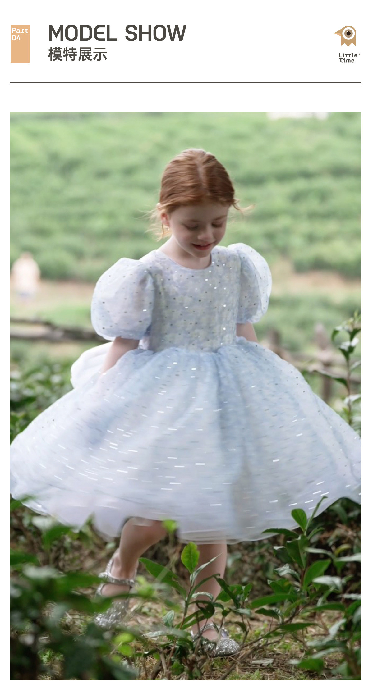 Littletime女童2025新款夏裝小女孩泡泡袖公主裙兒童碎花連衣裙