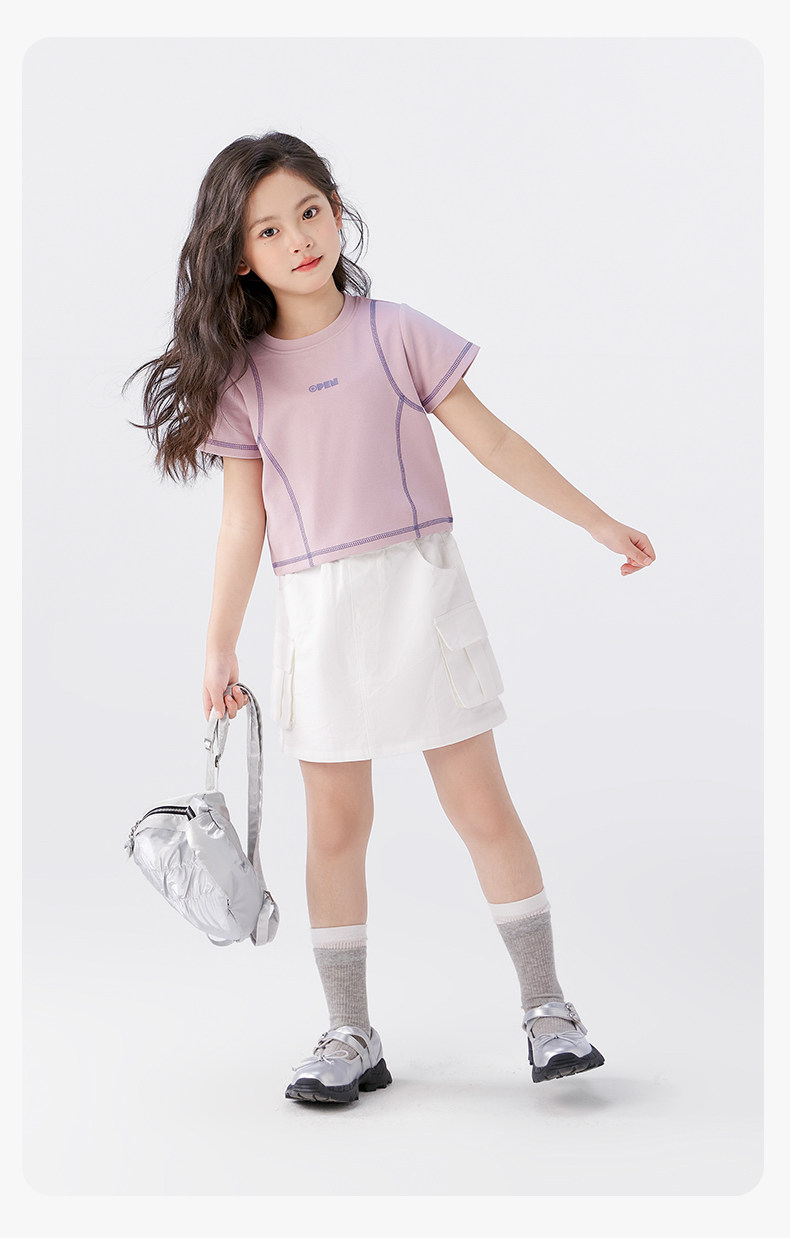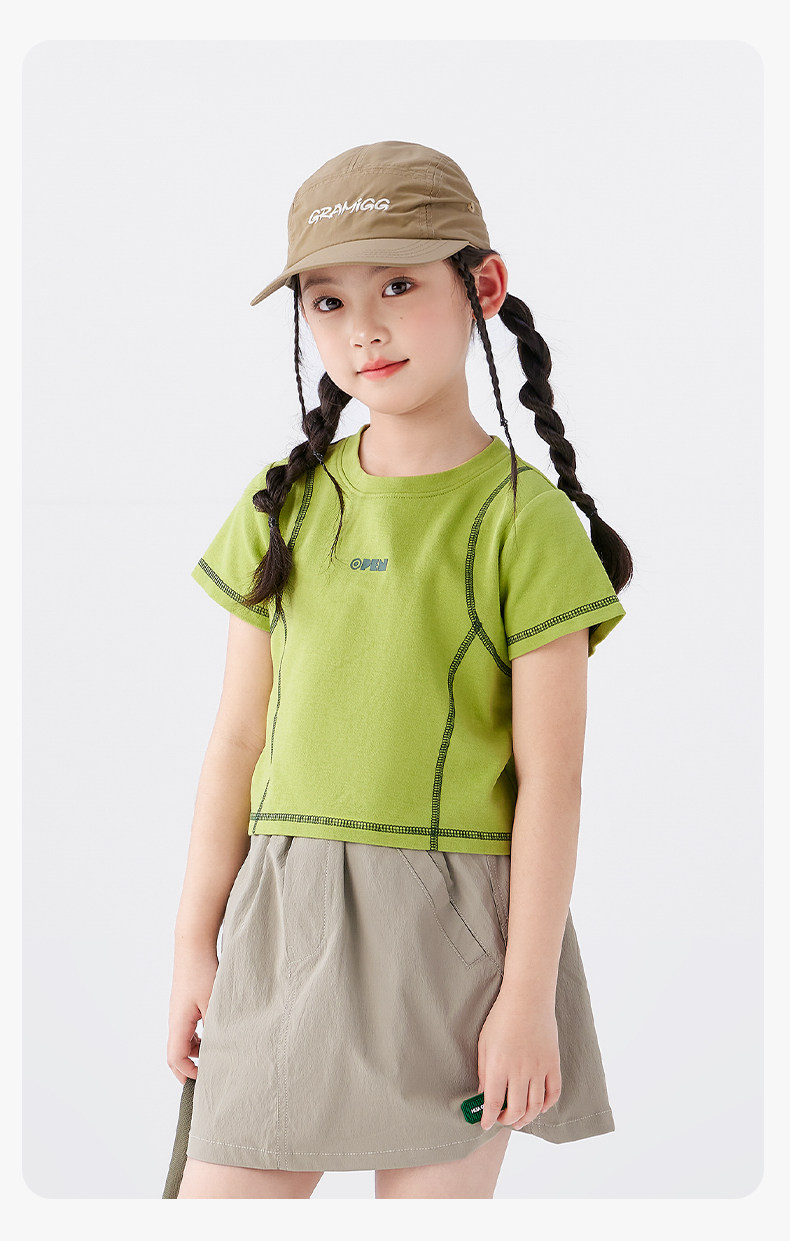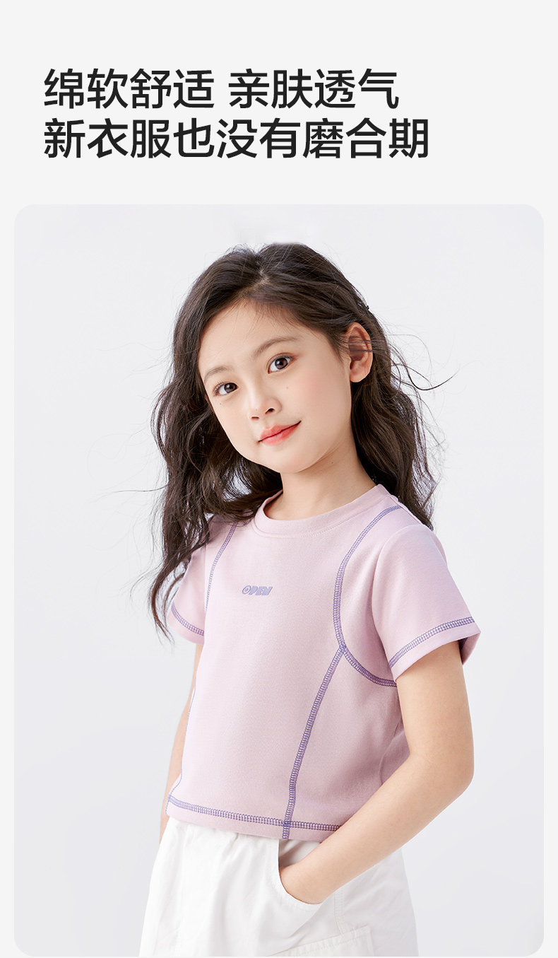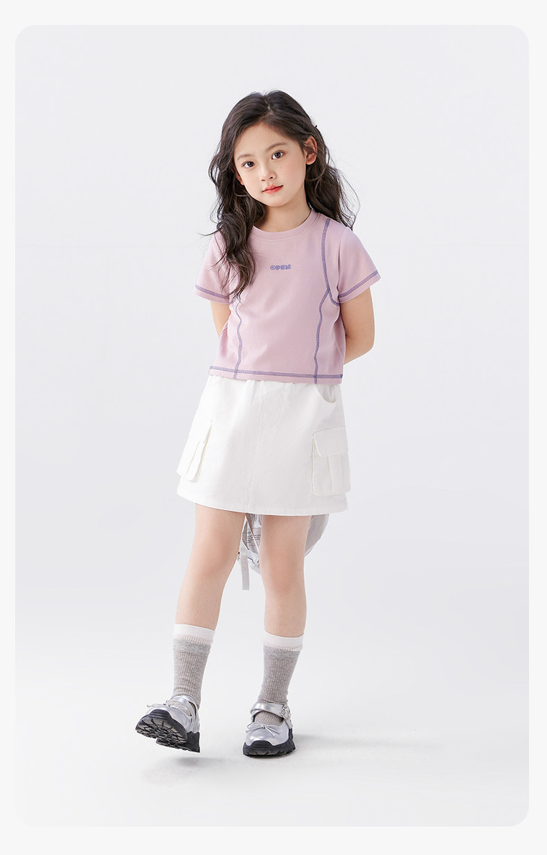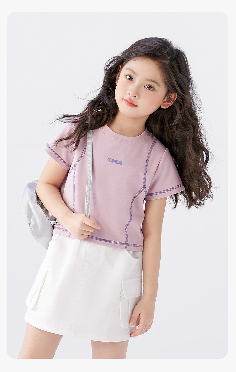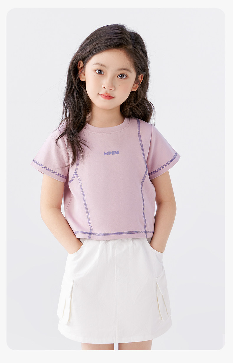 【特惠清倉】左西女童短袖T恤兒童夏季女孩洋氣短款明線半袖上衣