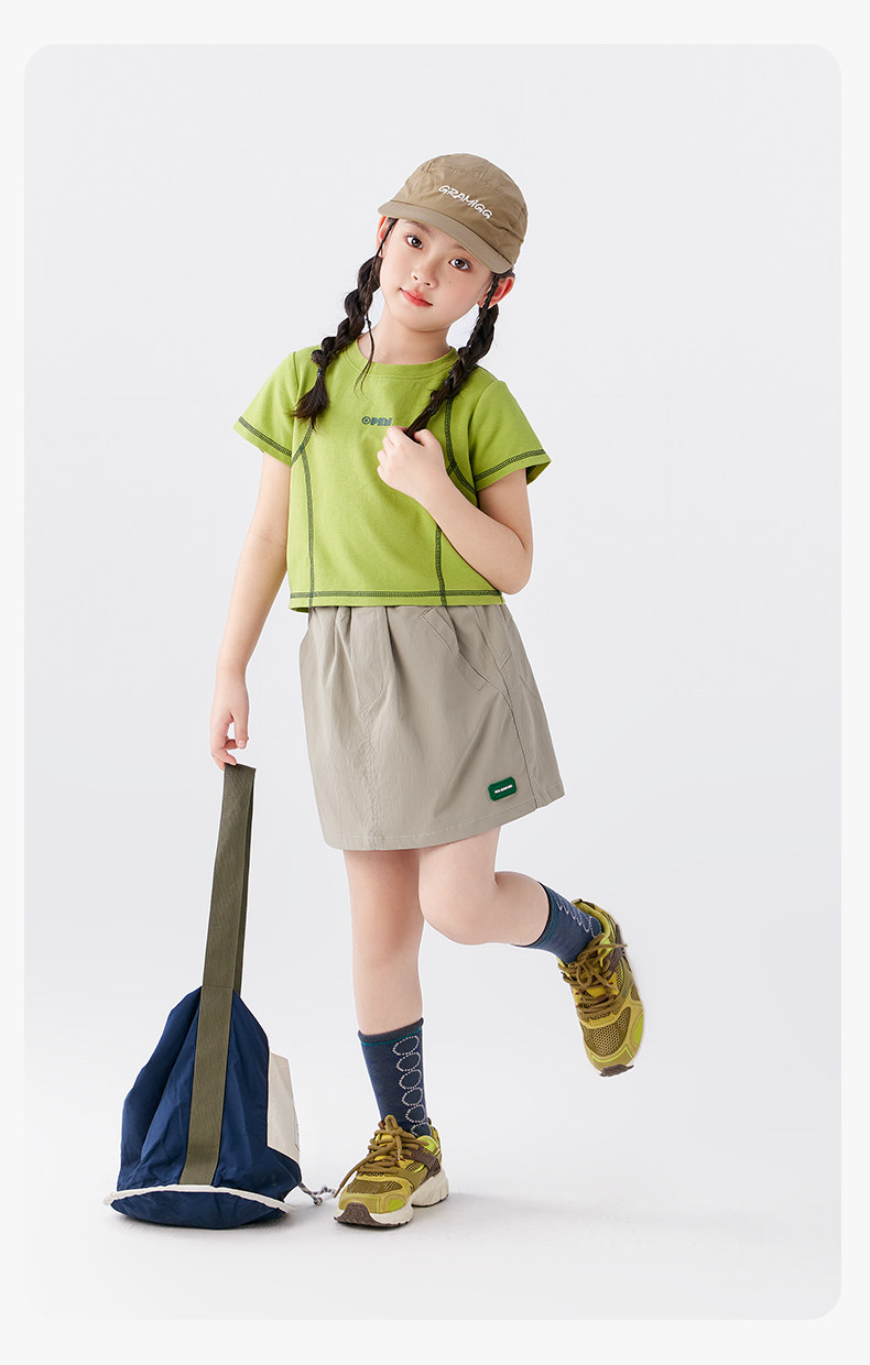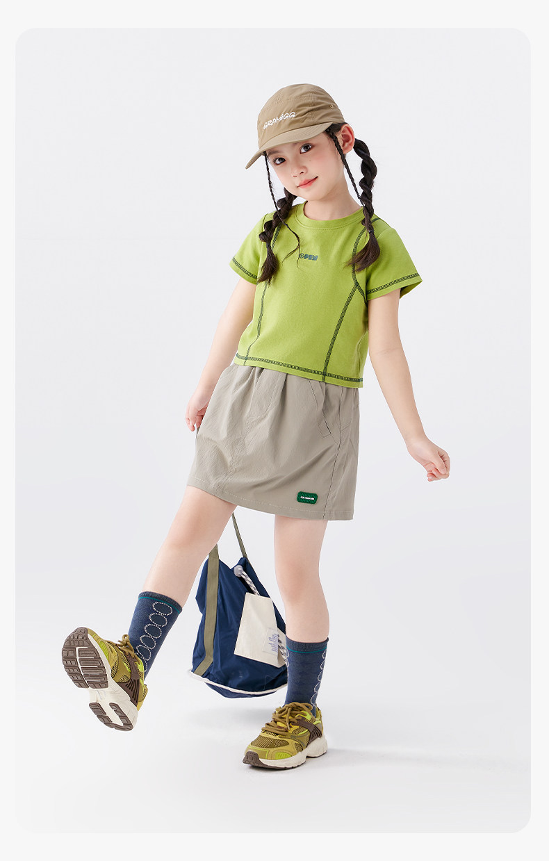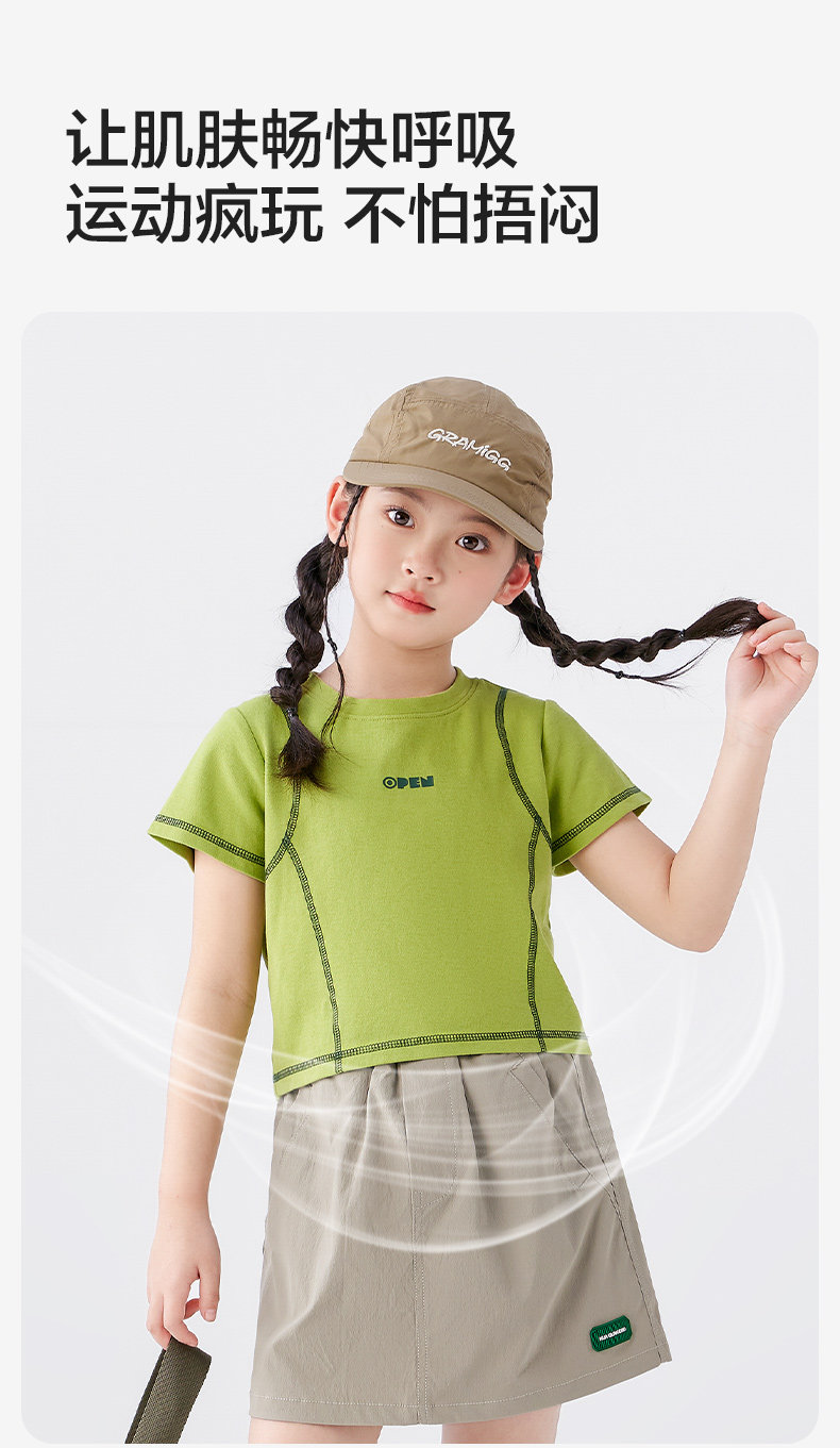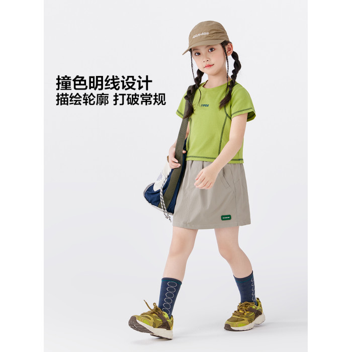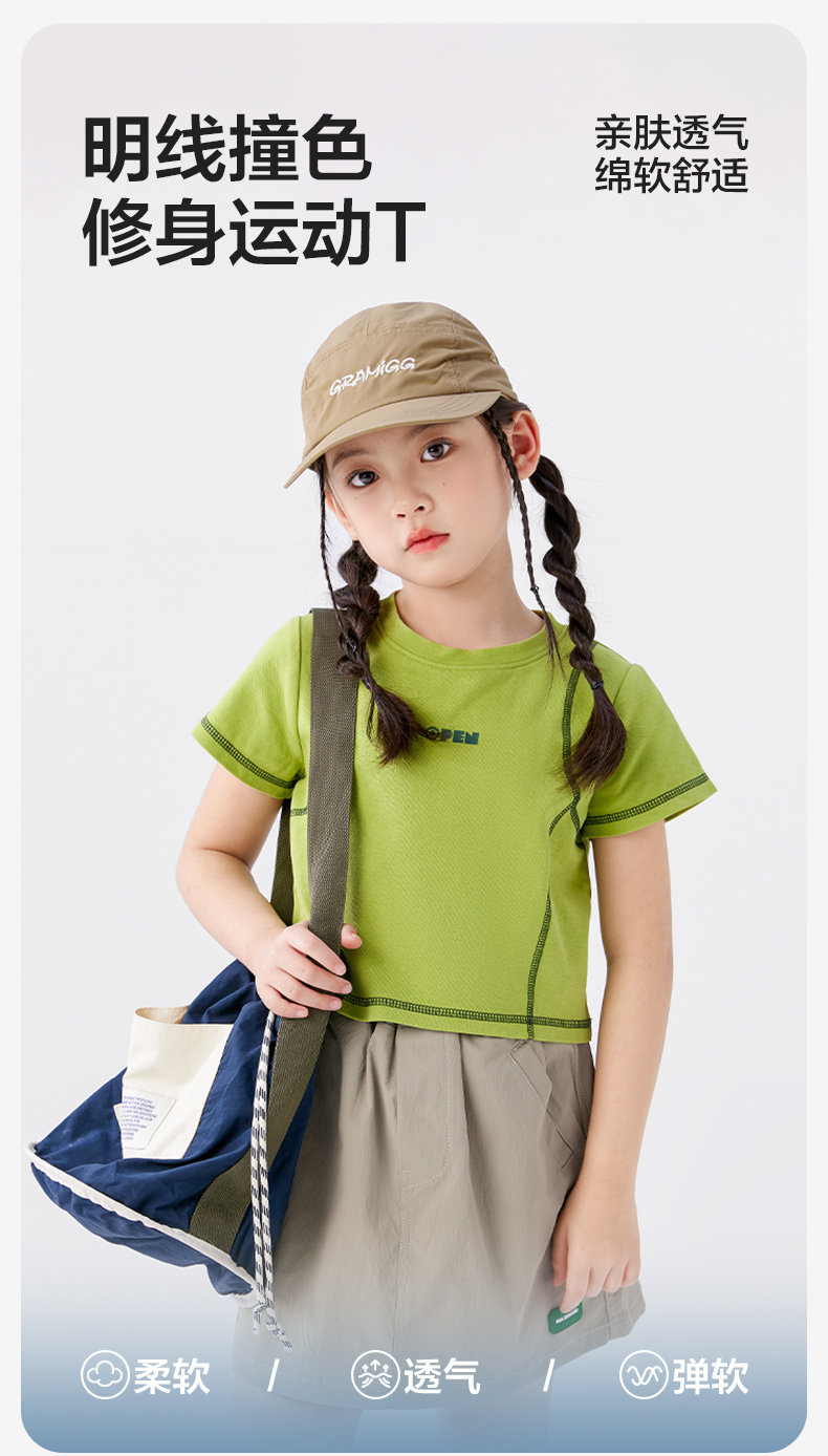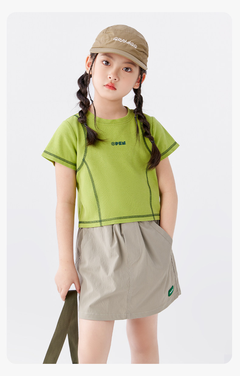 【特惠清倉】左西女童短袖T恤兒童夏季女孩洋氣短款明線半袖上衣