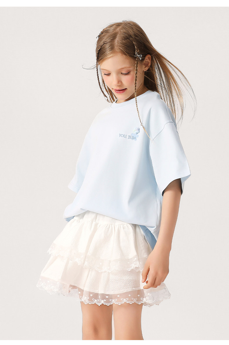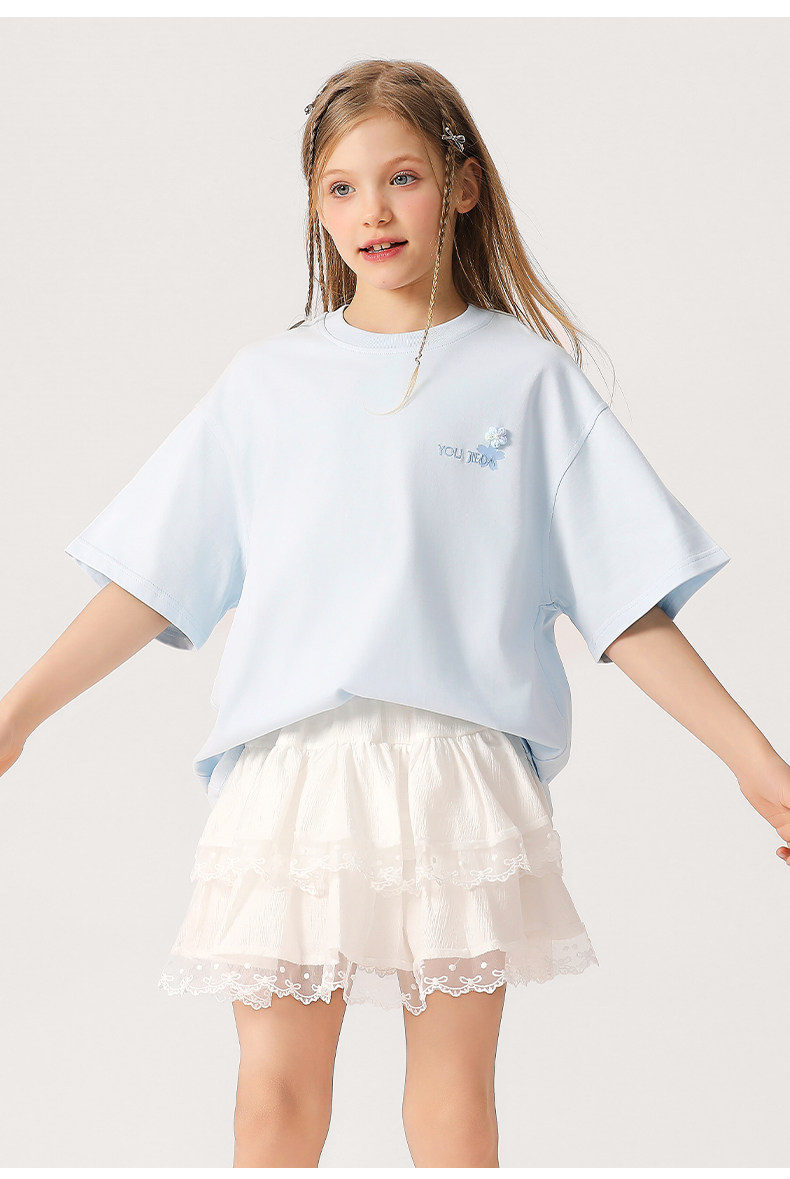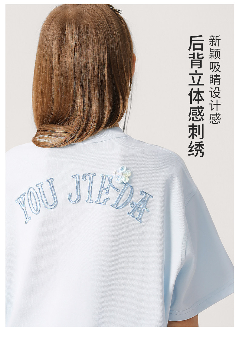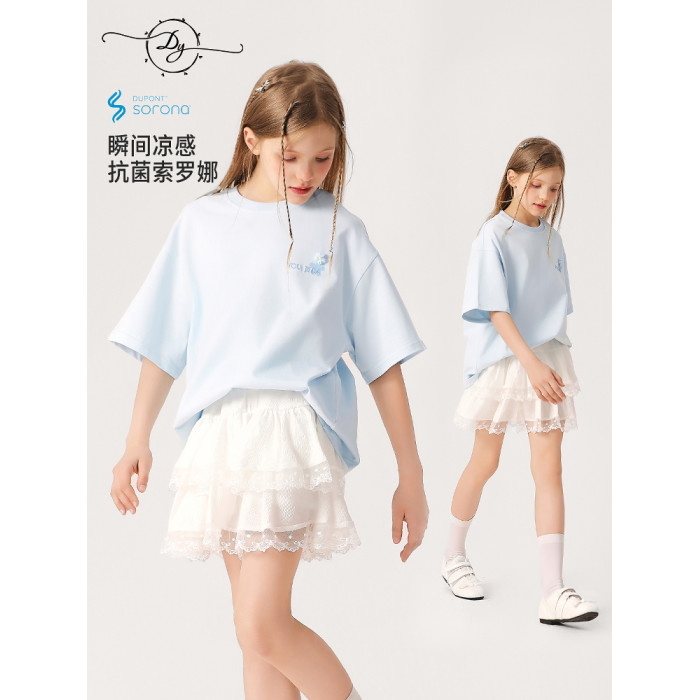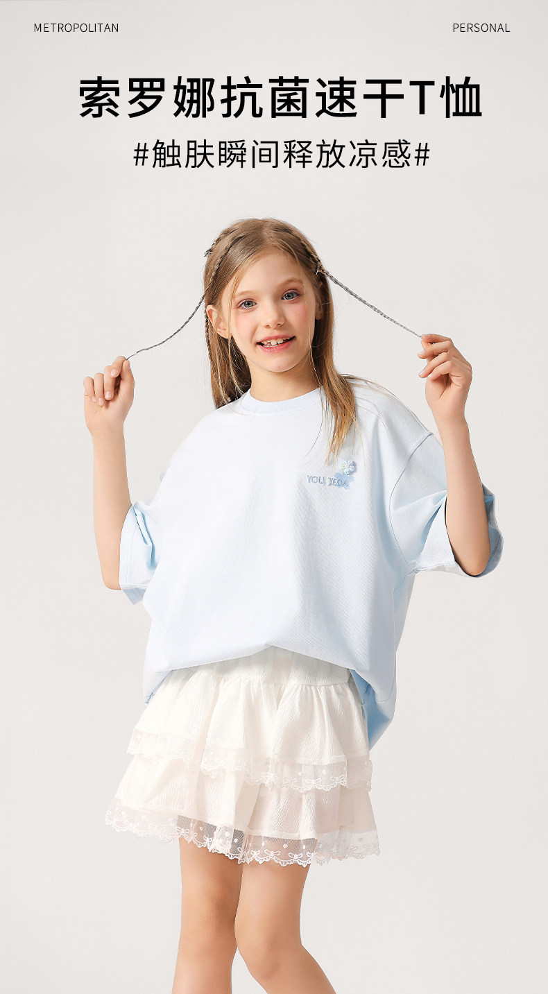 女大童抗菌速乾刺綉T恤2026新款中大童洋氣夏裝短袖透氣學生上衣