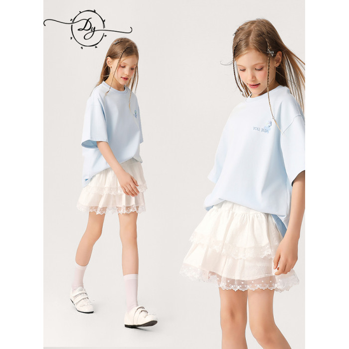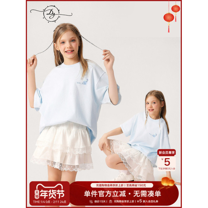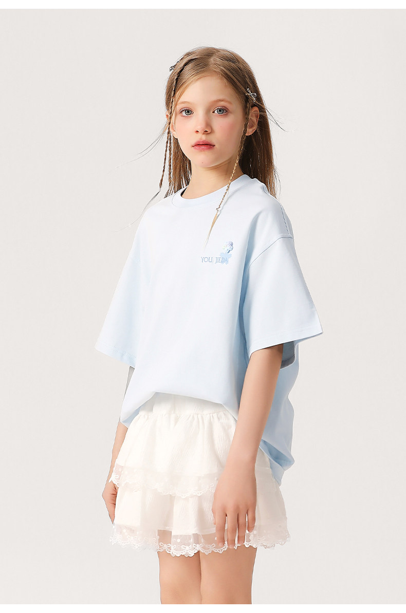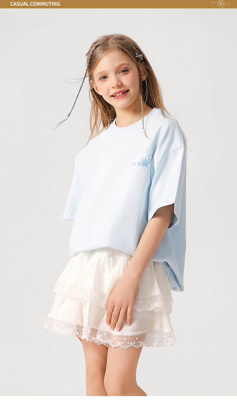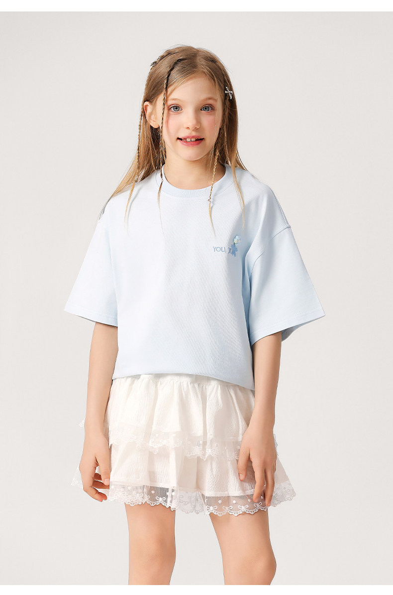 女大童抗菌速乾刺綉T恤2026新款中大童洋氣夏裝短袖透氣學生上衣