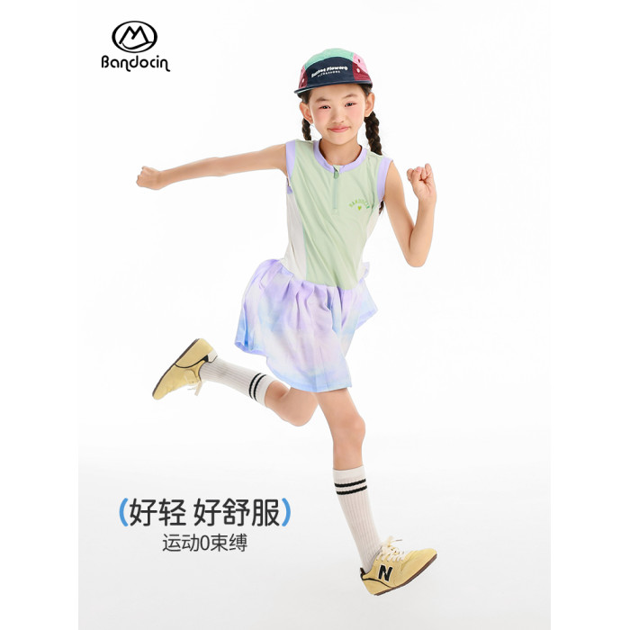 半度閒女童連衣裙夏季2025新款兒童吸溼速乾長裙夏裝女孩無袖裙子