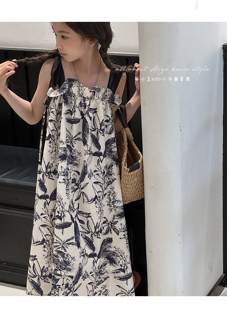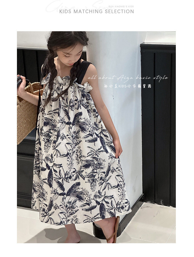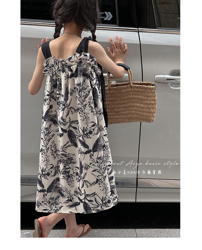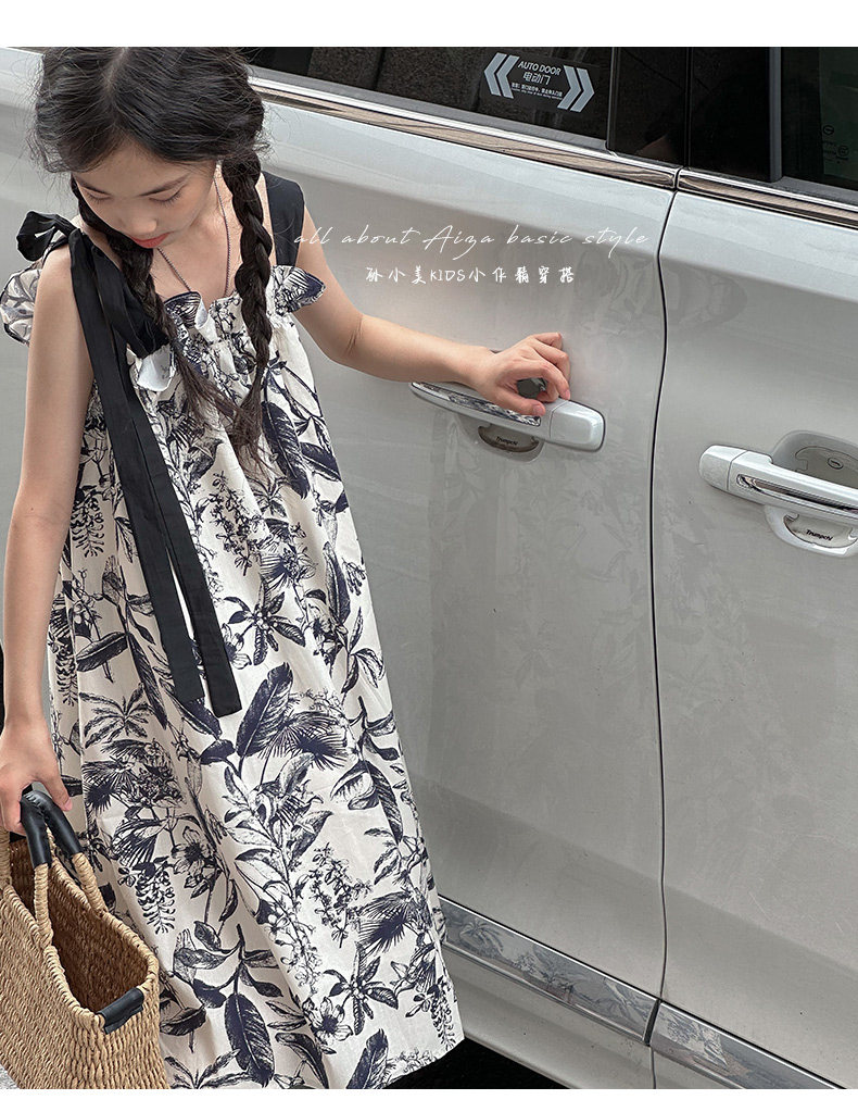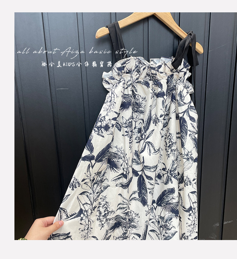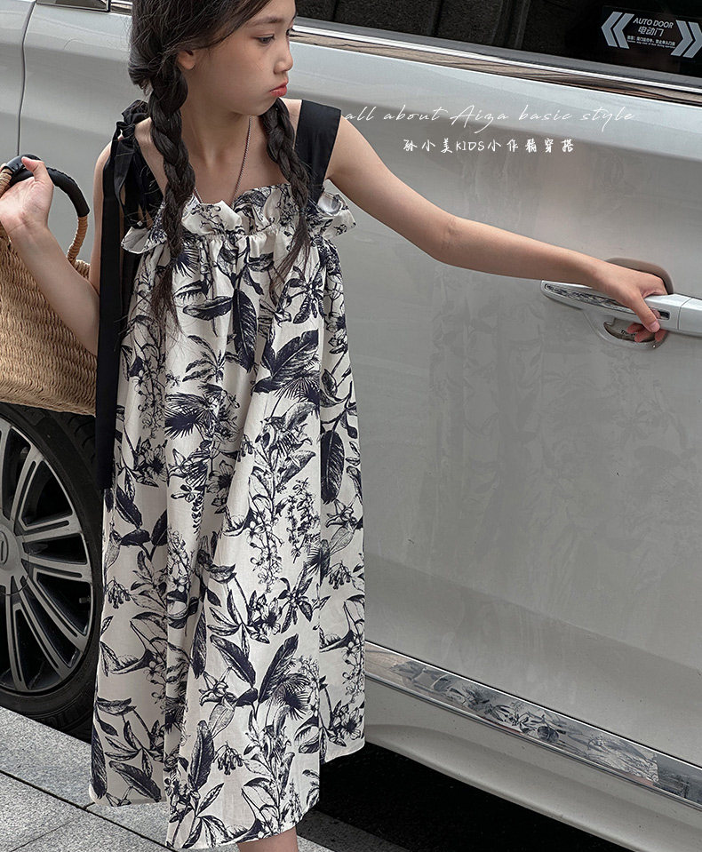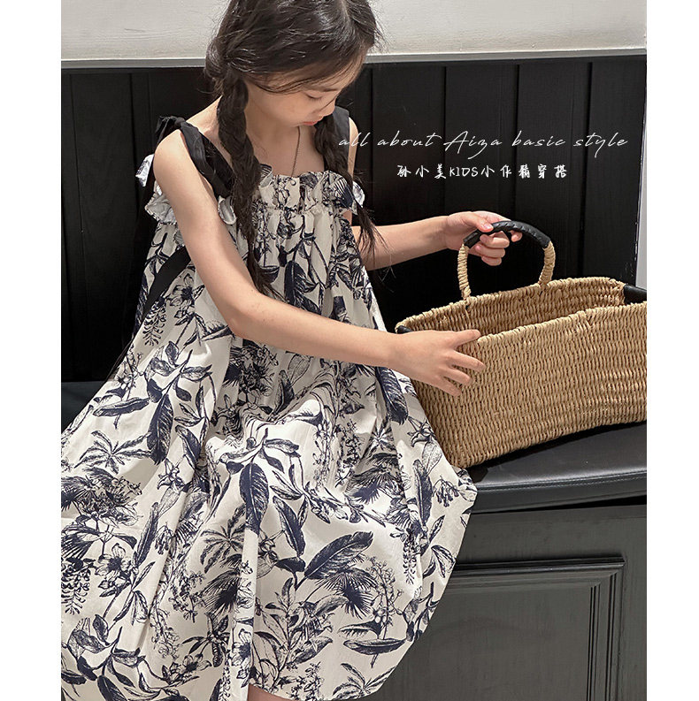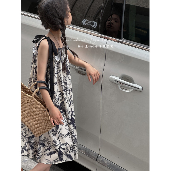 韓國童裝女童水墨畫吊帶裙兒童夏裝連衣裙2025新款無袖背心裙子薄