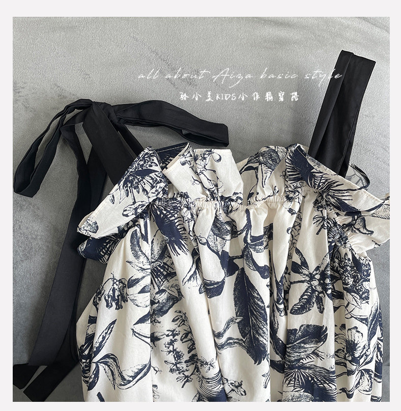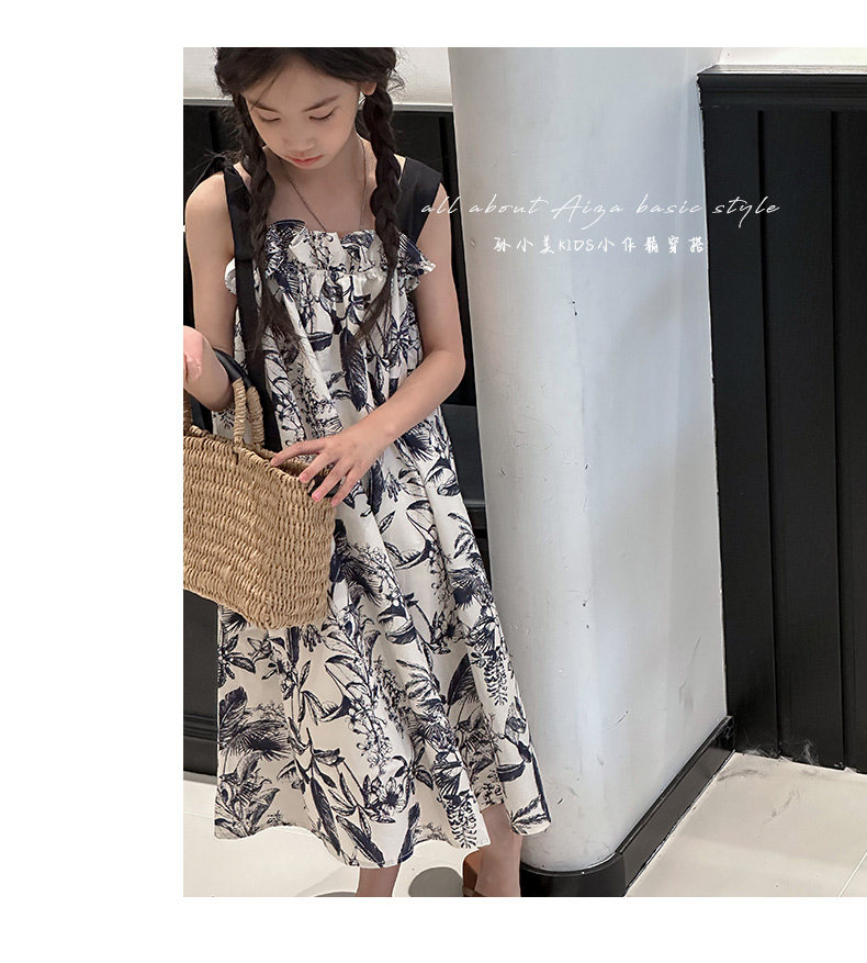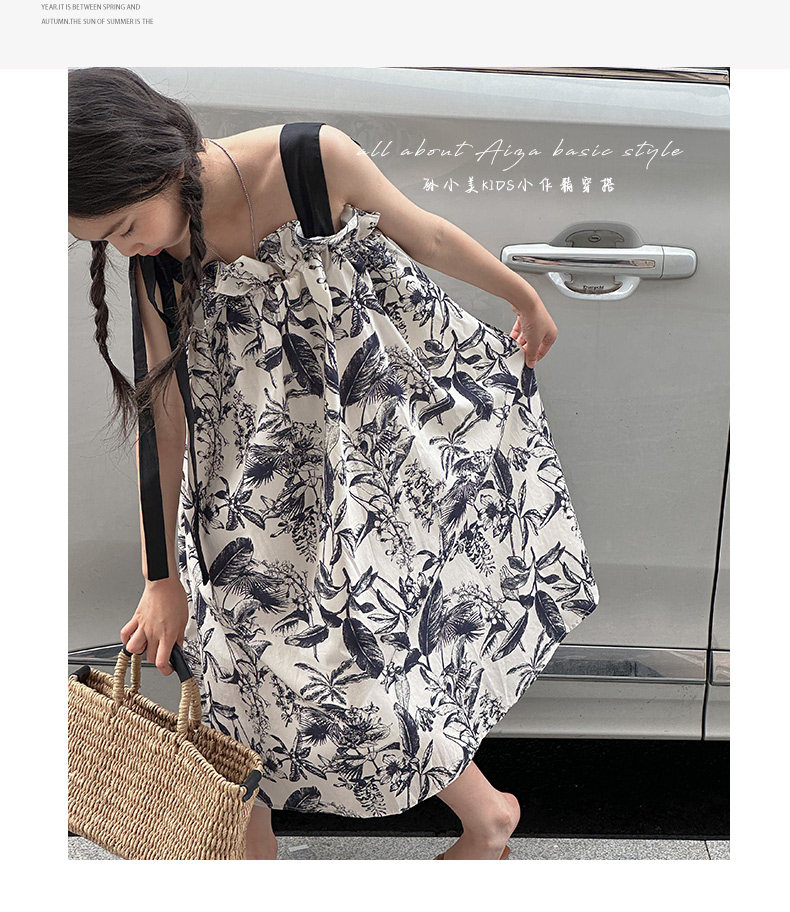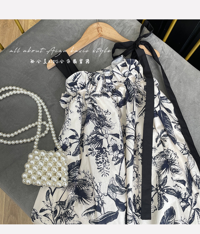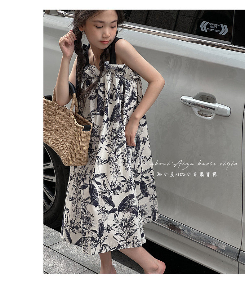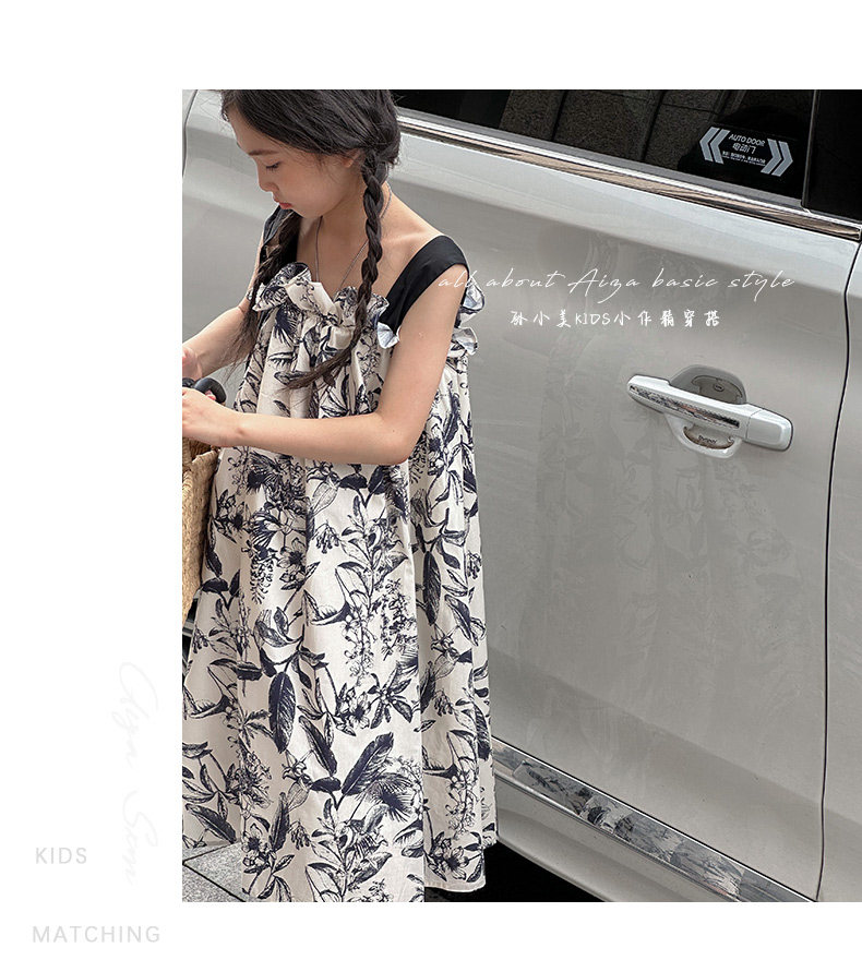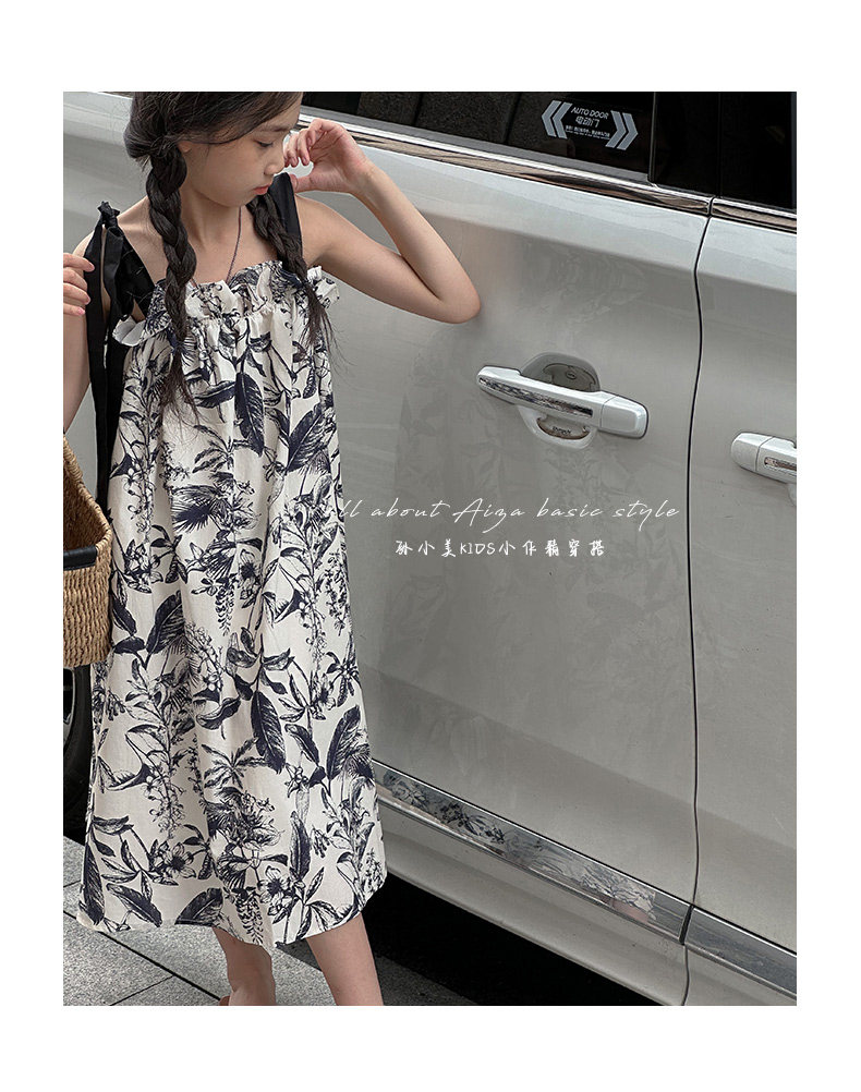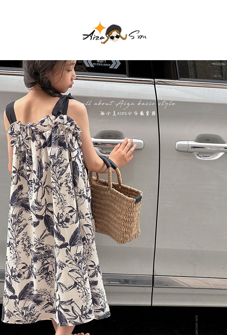 韓國童裝女童水墨畫吊帶裙兒童夏裝連衣裙2025新款無袖背心裙子薄